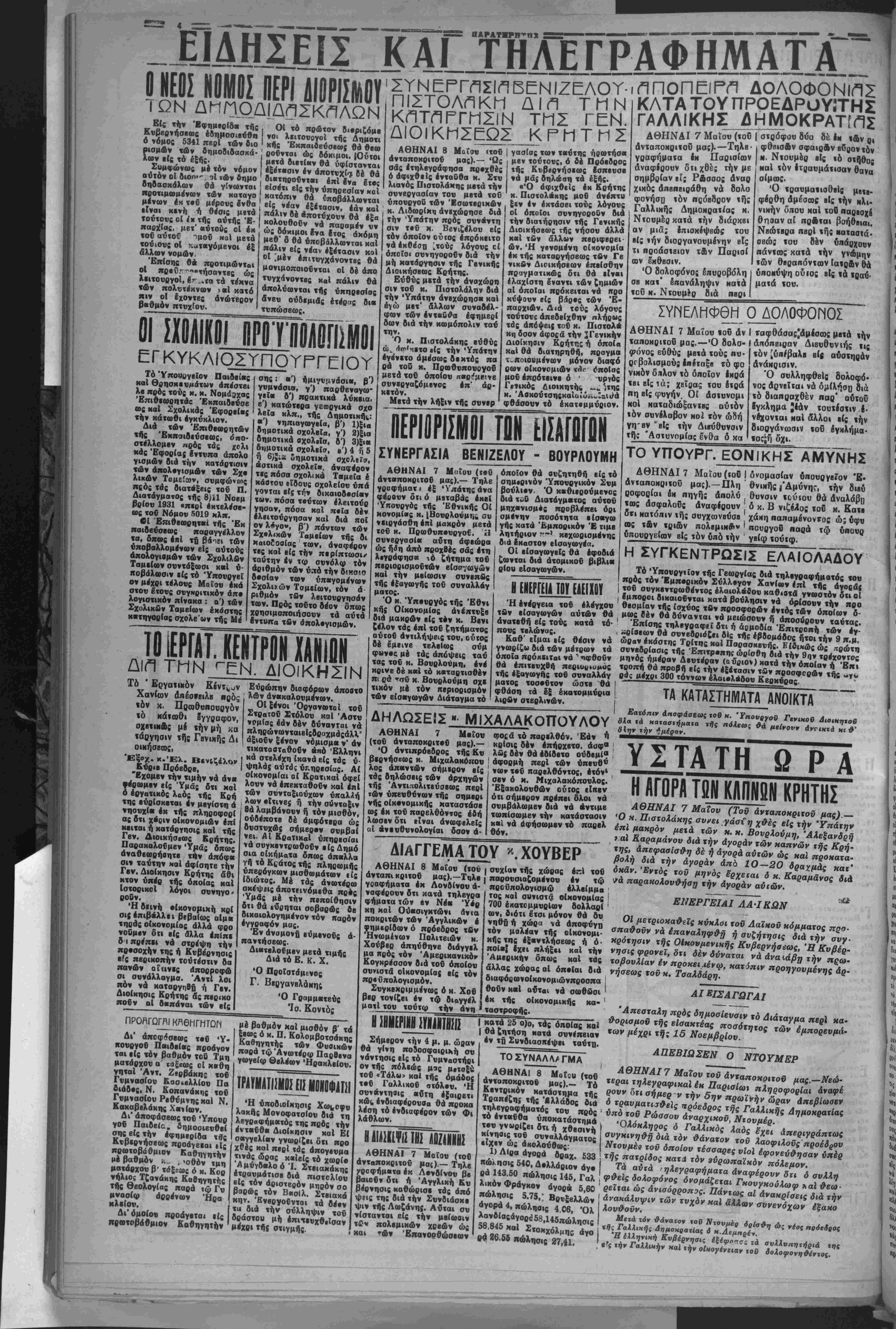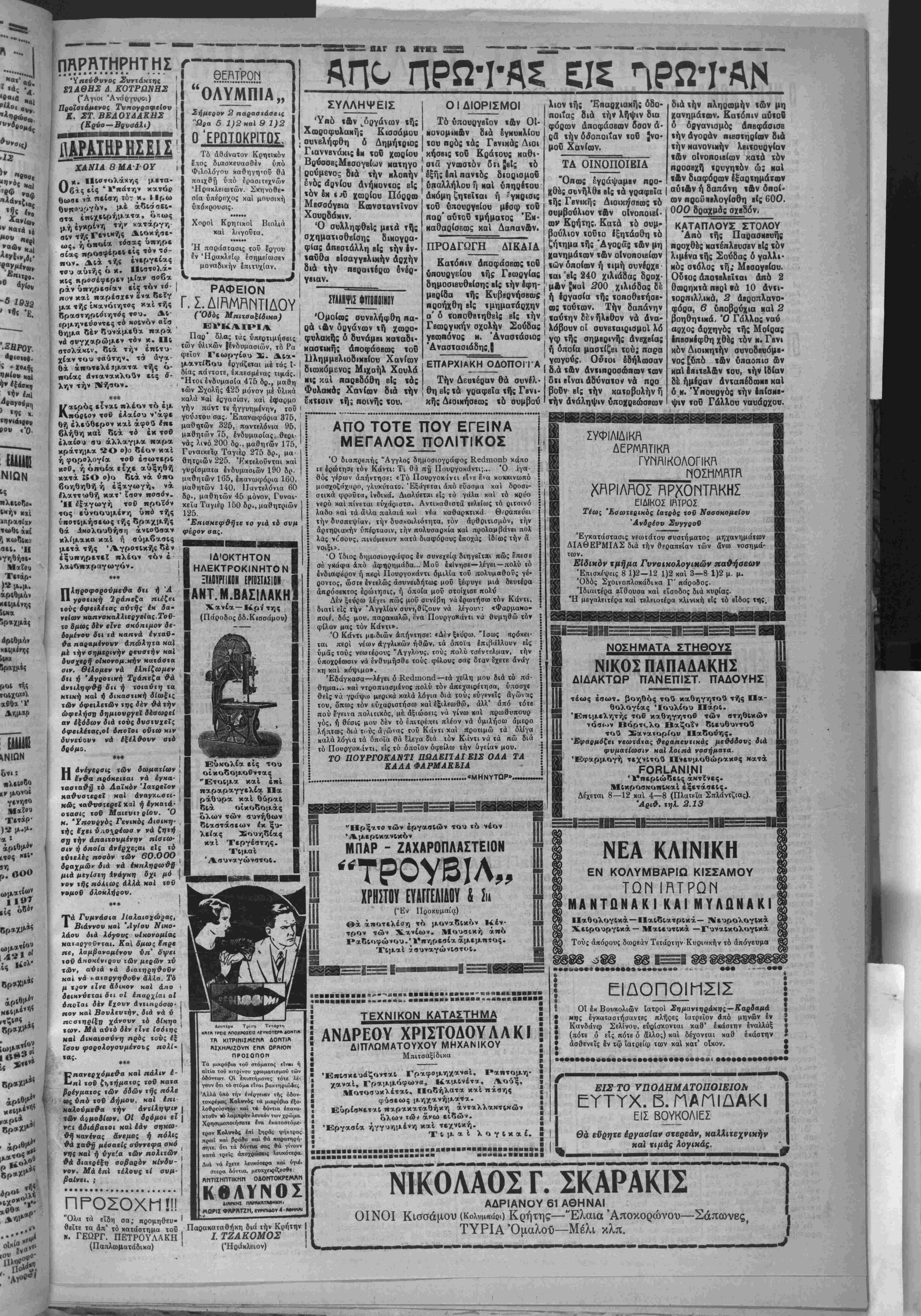 συνββρ.ασις τής 'Κ···—— -<--'-*- « · - - μηνός ημέραν Δι _ ..«._.,..-.„ .ι- υπυιαι Τ* ΚΑΤΑΣΤΗΙΜΑΤΑ ΑΝΟΙΚΤΑ ν μέ «όν περιορισμόν «ών είσβγωγών Διάταγμα τό ----- . Μβϊου (τοΰ άνταποκριτοΰ μας).— Ό άντιπρόβδρος τής Κν βιονήσεως κ. Μιχαλακόηου λος απαντών σήμερον βίς «άς βηλώσβις «ών άρχηγών τής 'Αντΐπολιτβύσβως πβρΐ των ύπενθύνων τής σημβρι νής οίκονομικής καταστάσβ ως έκ τοΰ παρελθόντος έδή λωσβν ότι είναι άνωφβλβΐς αί βνβυθυνολογίαι δσον ά- ---------παρελθόν.___ - κρίσις δέν έπήρχβτο, άσφ° λώί βέν θά έδΐδβτο οΰδβμί" άφορμή πβρί «ών νπβνθ* νων τβΰ παρβλθόντος, έτόν*· σεν ό μ. Μιχαλακόπουλος. Εξακολουθών ούίος εΐηβν ότι σήμβρον πρέπβι δλοι νά συμβάλωμεν διά νά «ντιμε «ωπίσωμεν «ήν κατάστασιν ΥΣΤΑΤΗ Ω Ρ Α η ηηιιηηπηι κρητηΓ" ΑΘΗΝΑΙ 7 Μ ΑΘΗΝΑΙ 7 Μαΐου Πλ ΔΙΑΓΓΕΜΑ ΤΟΥ *. ΧΟΥΒΕΡ Δι άποφ^σβως τοΰ «Υ- κονργοΰ Παιββίβς προάγον «αι είς «όν βαθμόν τοδ Τμη μα«οοχου α Γοξβως οί καθη νη«α1 Αντ. Ζβρβάκιις τοβ Γνμνασίου Κασ.βλλίου Πά Οιάβος, Ν. Κοπανάκτις τοΰ ΓυμνασίονΡβθύμνηςκαΙ Ν. Κακαββλάκης Χ«,ίων. Δι αποφάσεως το€ «Υπουρ αποφάσε ς «ου Υπουρ «ΊΜοσιβνθβί β τής 1 μέ βαθμόν καί μισθόν β' τα ξβως ό κ. Π. Κολομβοτσάκης Καθηγητάς των Φυσιχών πσρά τφ Ανωτέρω Παρθενα γωγείφ Θελέων 'Ηρακλείου. ._τ.>νν. ν·. »»><· ιΐ|Λκγρα φηματα των βν Νέα Ύέρ κη καί Ούασιγκτώνι άν τα ποκριτών «ών Αγγλικών έ φημερίδων ό πρόεδοος τβν Ηνωμένον Πολιτειών κ. Χούββο άπηύθηνε βιάγγελ μα πρός τόν Αμερικανικόν Κογκρέσσον βιά τοΰ οποίον συνιστά οίκονομίας βίς τόν προϋπολογισμόν. Συγκβκριμμένως ό ν. Χοΰ ββρ «ονίζβι έν τφ βΐαγγέλ ματΐ τού τούτφ «ήν ά^τη ..(ννι>νπν|ΐνμιν βΛΛβιμμα