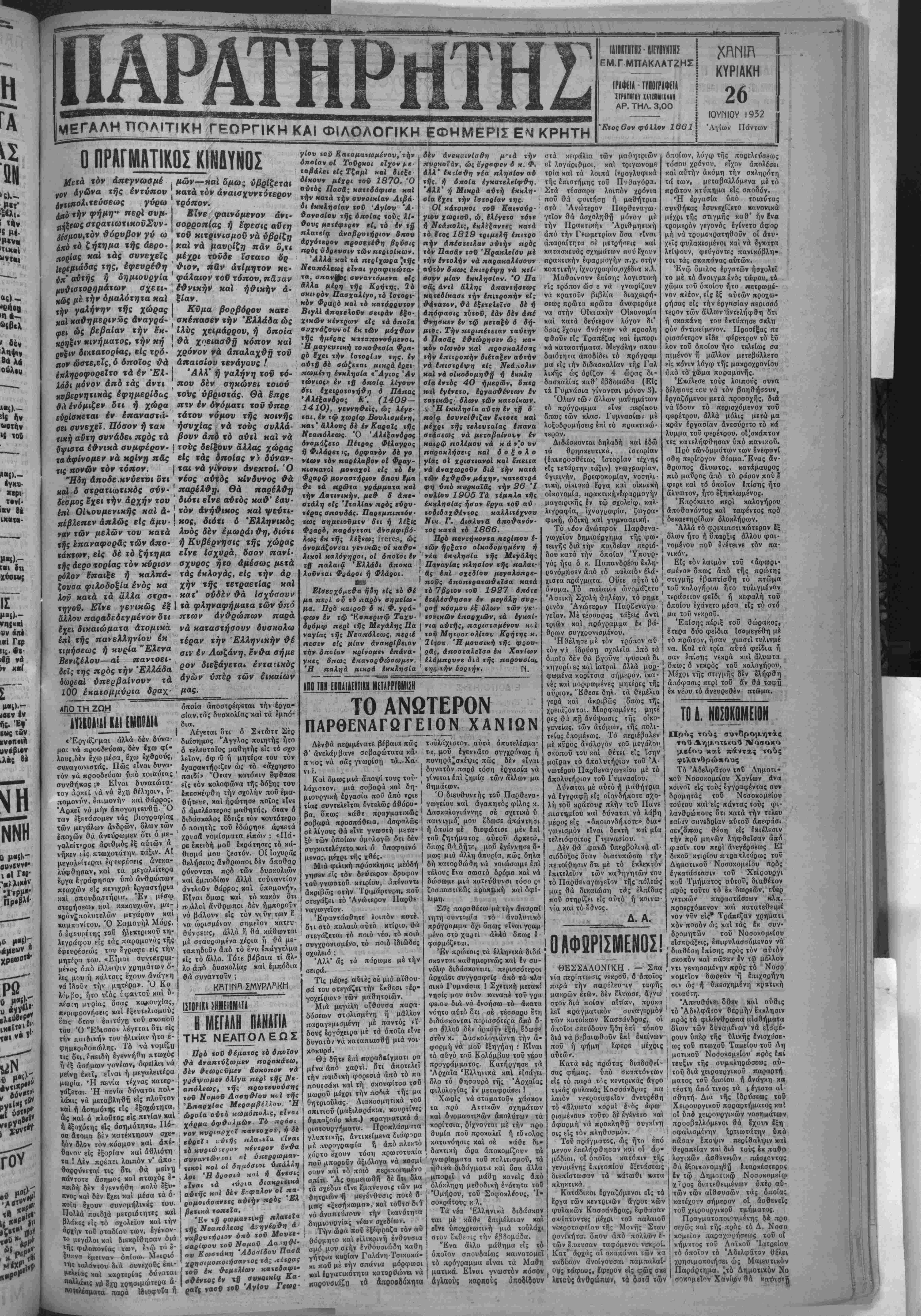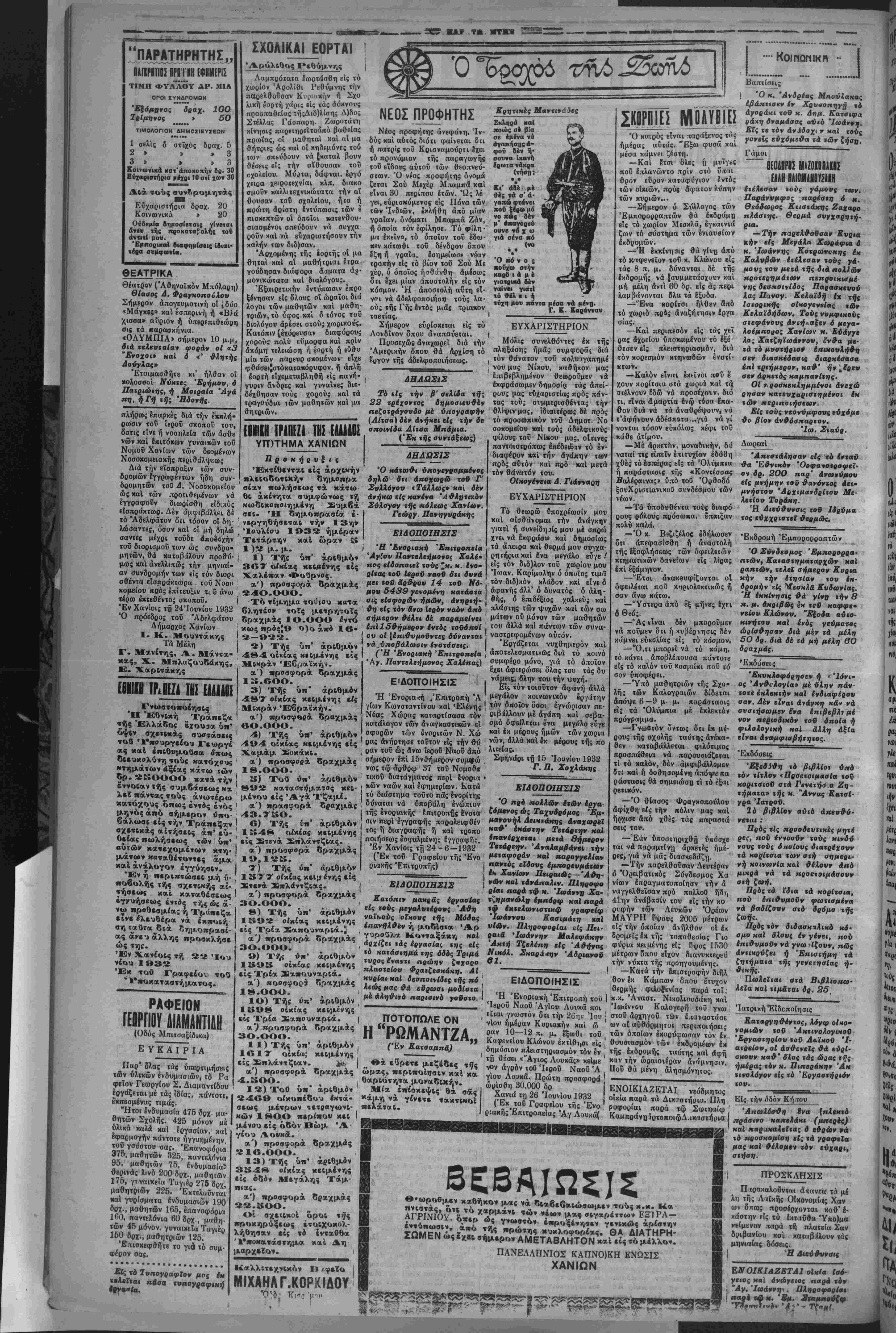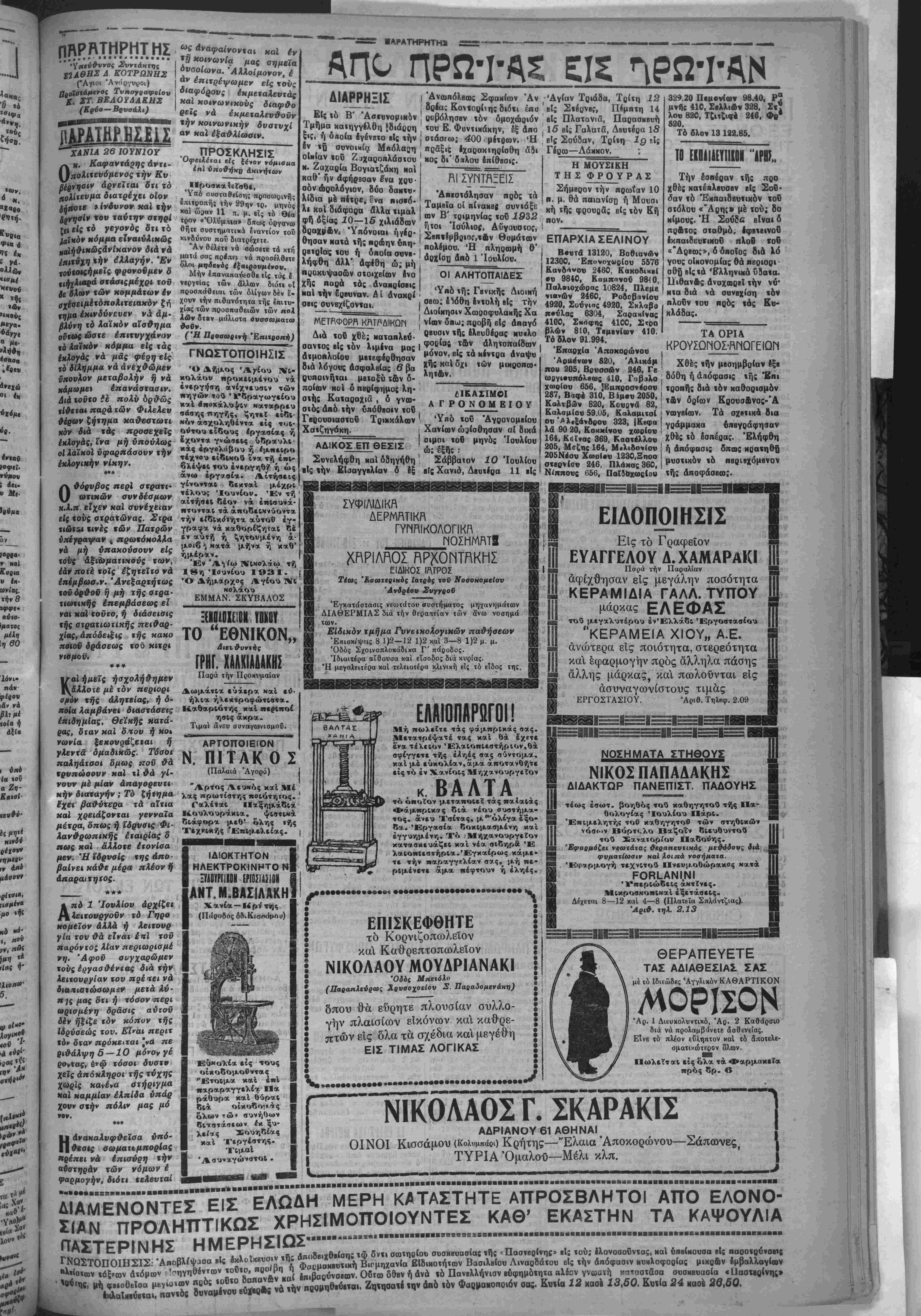 δών τού χαί ηχόρΜβι την βπβφαοιν τής ηρωτ·βαθμ<ου <· πιτρ·πϋς περί άπελ«σε«ς. Είς την συνταχθείσαν άπέφοαιν άναφέρ·ται δτι ιΐ πρ*ι Τββάθμιος έκιτρβπή, διατάξασα την απέλασιν τό έΐτροξΐ Ι διέτι ύηϋρχβν τ·τΐ στ«ιχεϊ« δίχαιολβγβθντε» τβύτην. Ι Έφ' δαβν δμως μβταγενεοτέρνς ή Δικαΐοβύνη άπήλλα ξεν τού; συλληφθέντβς δια την κΐλησιν λέγω . ίλλεΙψεΜί 1 στοιχείον, ή δευτιρ·βάθμι·ς έπιτροπή, φρονκϊ ότι δέν ουντοέχβυν πλέον *1 ηρ«υπβθέοΐι$ έκΐΐνοιέκί τή βίσει των οποίων ή πρωτεβάθμιος διέταξκ την αηέλβοιν, Η ΠΛΗΡΩΙΥΙΗ ΤΩΝ Δ'ΚΑΙΟΥΧΩΝ ΠΡΟΣΦΥΓΩΝ ΑΘΗΝΑΙ 25 Ίβυνίου τού άνταποχριτοΰ μας.—Έντός των ήμβρών θά άρχίσε ή πληροομή των δικαιούχων :<0θσφύγων τοΰ Β' φύλλου τοΰ συμπληρωματικοθ μυ· τρώου βποσταλέντων των παοορομάτων βίς τήνΈθνι ξιώσβις. Εάν χάθβ κράτος προτβίνυ Ιδικόν τού σχέδιον, δχιΐ χβί ή Ελλάς τό σχέδιον της, τό οποίον, δμως, δέν δύνανται ν' ανακοινώση βίς τόν τύπον πρίν ανακοινώ¬ ση είς την Διάσκεψιν. Αναφορικώς μέ τό ζήτη μα τής έπβκτάσβως τοθ σχι βίου πβρί ποροβουνοβ(ου οίκονομικής όμοσπονδίος, ύ πόρχουν σχέδια συζητούμε να ζοοηοώς, άλλά μέχρι τής στιγμής οί σνζητήσβις ούται ίίνβ άχαδημβϊκϋί. Ή Ελλάς άνβμένβι την τβλιχήν συζή τησιν. Έφ' βοον πρόκΐιτοι περί συνασπισμοΰ τβν βιτο παραγωγήν χωρών, δέν δι χαιούμεθα νά ζητήσωμβν δπως μετάσχοομβν τούτου, εάν, δμοος, βΐσέλθουν είς τόν συνασπιβμόν αυτόν καί καπνοπαοαγωγικά κράτη, δπως ή Βανλγαρία, τόιε θά 9ι·κσιχήανμ·ν θέσιν. , κήν Τοάπβζαν. Ι Κατά τάς υπαρχούσας πλη ι ροφορίας, ή πληρωμή των ' δικαιούχων τής «ατηγορίας ! ταύτης βίς τος επαρχίας δέν θά βραδύνη πέβ«ν τοΰ τρέ¬ χοντος μηνό;. ΑΙΥΒΟΑΕΙ^ΕΪΪΑί&ΗΑΟΙΕΙΣ Μάς ανακοινούται άομοδί ως ή έκδΐκασις των ύπολει φθεισών δηλώσεων πσρά τής-' δβυτβοοβαθμίου επι τροπής θά πραγματοποιηθή μίχρι των μέσω ν τοδ ποοσβ χοΰς Αύγβύστου όπότε λή γεΐ τό έΌγον τής έπιτροπής. ΙΑ ΕΠΙΗΙ1ΚΑ ΗΗΤΡΩΑ Είς τό υπουργείον τής Προ νοίας ήοχισεν άπό προχϋές ό χβταοτισμός των έπορχια κων μητρώων άπό τα συνερ γεΐα τοΰ γεν. μητρώου. Ή δλη έργασΐα τ Α ν 43 μη τρώων ύπολογίζβταΐ δτι θβ τελβιώοη ταχέως. "Οσον άφοςά διά τού; δικκιούχσυς έχβίνους. των οποίων οί φά κβλλοιδέν ιΐνβ τακτοποιημέ νοι άκόμη απεφασίσθη δπως άνασταλή ή πληρωμή μέχρι τής τακτθετοιήσβώς των- ΠΟΤΕ ΒΑ ΠΡΟΚΗΡΥΧΒΟΥΝ ΑΙ ΕΚΛΟΓΑΙ /ΘΗΝΑΙ 25 Ίουνίβυ (Τοδ βνταπβχριτοΰ μα$).- Ό κ. Βενιζέλος θά άνβχνρηοη δι» Μπανιόλ μκτα την πλήρη άποκατάατοισιν τής ύγΐΐας τής κυρ(·( τού, η ·»··■ ■ύρίσκβτοι είς τό στάδιον τής «ν·ρρώσε»ς ήδη. ΠΟΤΕ ΣΥΜΕΡ,ΚΕΤηΐ Η ΒΟΥΛΗ | ΛΦΗΝΑΙ 25 ΊουνΙβυ (Τβΰ άνταπο^ριτοθ μβ{).— , Αί εργασίαι των ν·μο8ετιχβν αωμάτων θά έπαν·ληφθ·Ον ηιρί τβ μέαα Ιουλίου μ·1 θά δΐαρκ4βουν περί τ* ιΐκβοκη- ' μερον, δέν πρόκβιται δέν ν« πνρακνλυΒοΰν όπωσδήηβτ· Ι άπό την ■κσυσίαν τοδ χ. Βκιζέλ«υ καθέοον έν τώ μιτα ξύ 8ά ίχη έπβνέλΡη ό κ. Μιχ«λακ·πβυλβς ίστι$ όά έχα , την ηροεδρίαν τί.; ΚυβερνήοεΜς. ΕΙΣ ΤΙ θη ΗΣ,ΧΟΛΗΘΗ ΑΦΗΝΑ1 25 Ίουν.ου (Τοθ αντβπβχριτβθ μ«()«— Κ«8ώ; προβλέπεται ή Βο»λή 8ά ασχοληθή χυρίως μέ την ' ψήφισιν τβΰ πρεθΐτβλβγισμβΰ καί των κ·ιν«νΐΜβν άαφα- λΐσενν μεθ' δ θά διακόψη τάς έργααίας της. Η ΠΡΟΚΗΡΥΞΙΣ ΤΟΝ ΕΚΛΟΓιϊΝ ι ΑΘΗΝΑΙ 25 Ίουνΐευ (Τοδ βνταπβχριτοδ μ«ί).— , Ό κ. Βενιζέλβςύπολογίζετβιδη θά έπβνέλθη έκ Μπα- I νιβλ τ· πρβτον δεκαήμερον τοδ Αύγουστον. Ευθύς δέ με τα την επάνοδον τού θά πρβχηρυχνβ&ν οί εκλογαί. Φαί νιταιμβλιατα άποφκοισμένος ν« «ναλίβη τίτΐ ·ύρ«τί· την πβριοδείβν διά ν« έχθέσα τό Κνββρνητικόν §ργ·ν «α Τ» την λήξασα ν τιτρ«8τί«