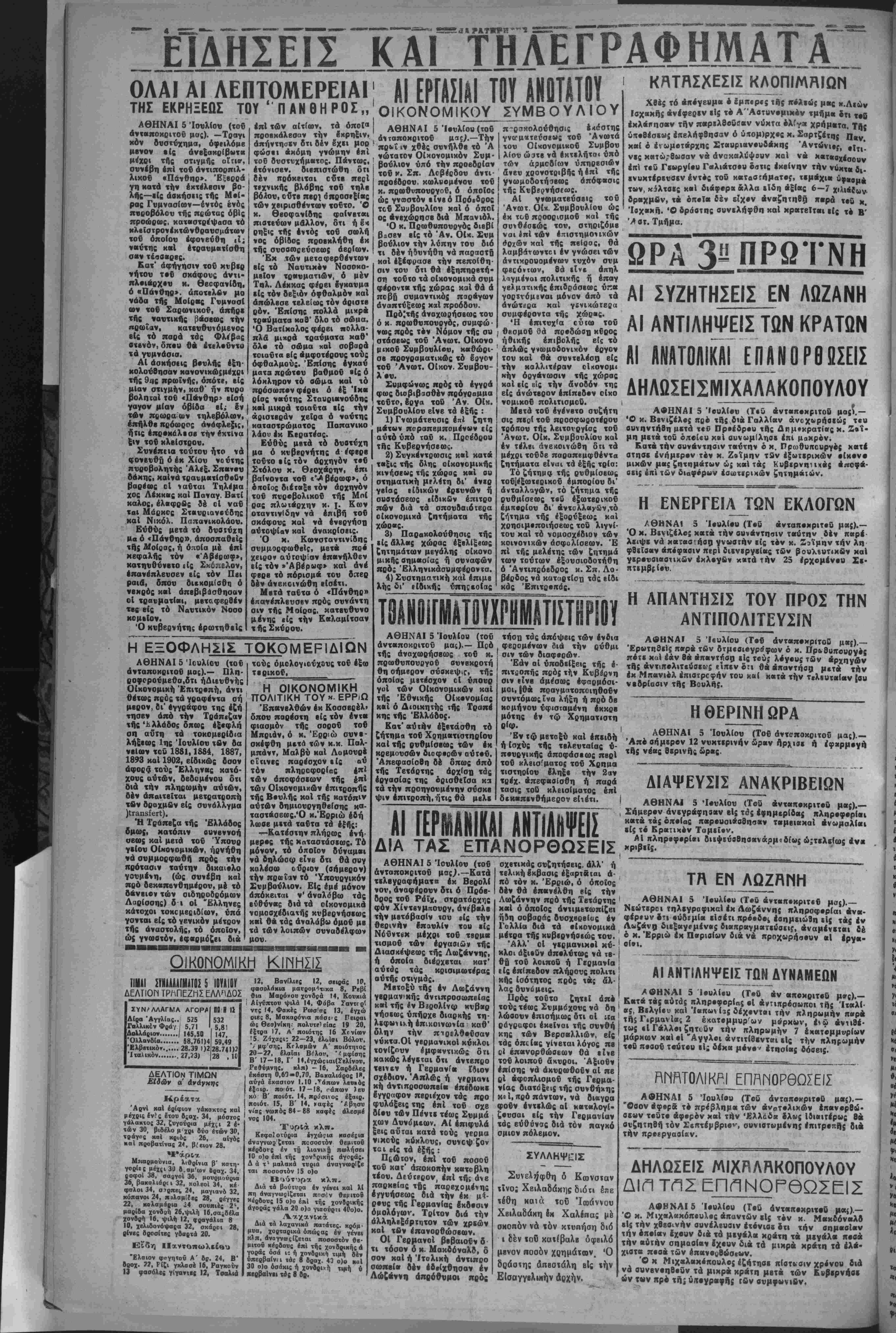 Νίώτεροι τηλεγραφικαί έκ Λωζάννης πληροφορίαι 4να-