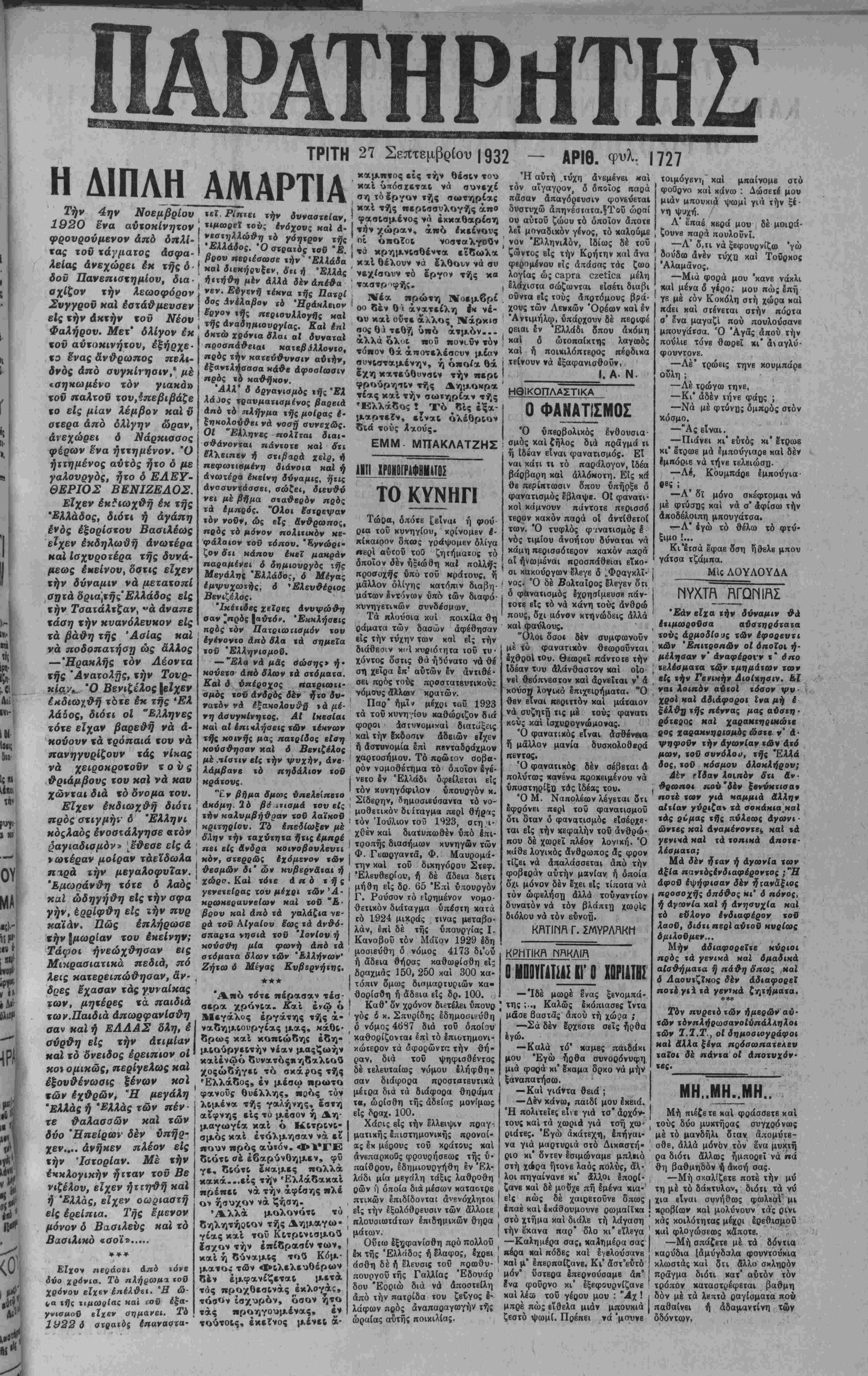 ΤΡΙΤΗ 27 Σεπτέμβριον 1932 — ΑΡΙΘ.