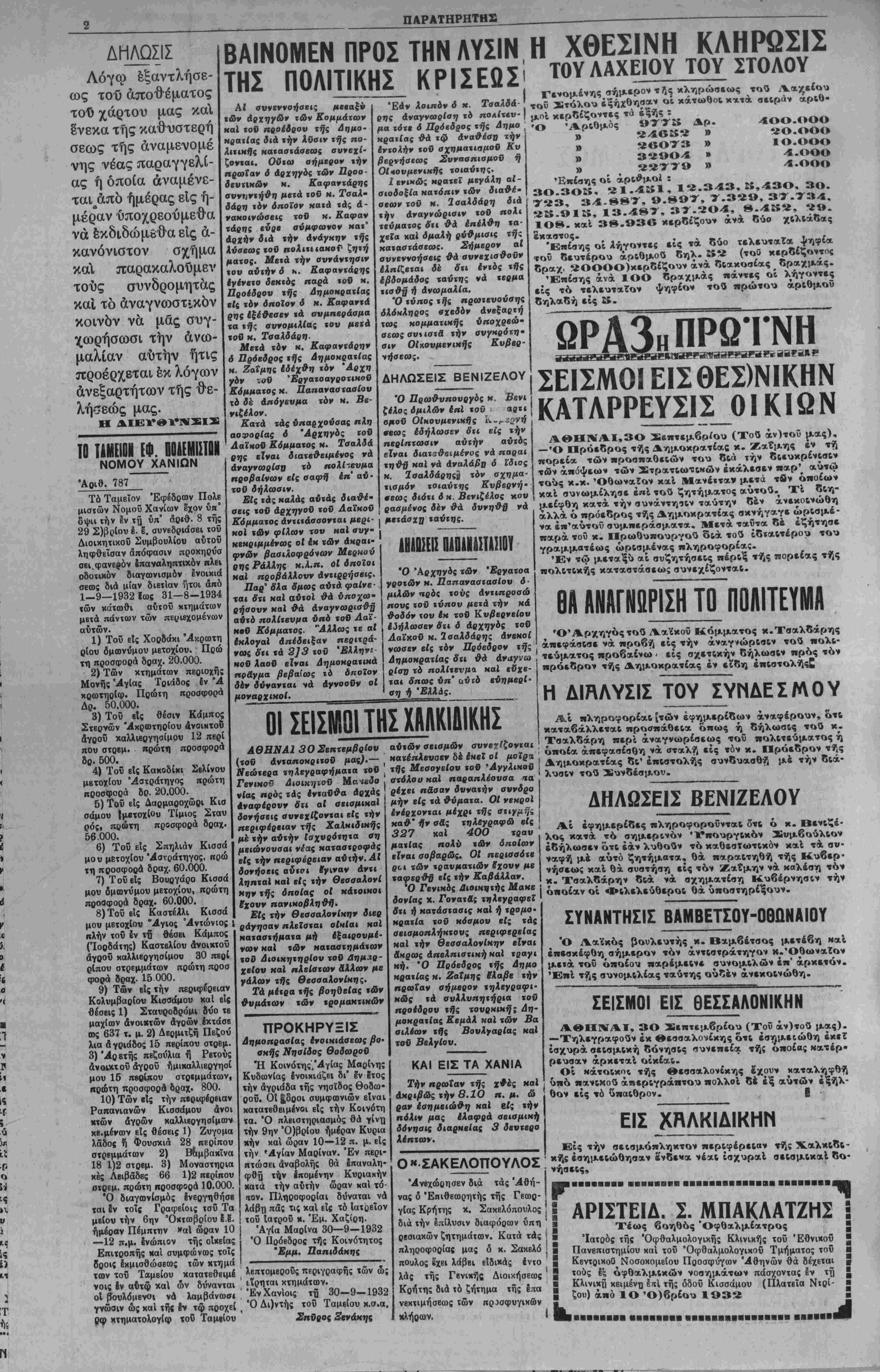 Έν Χανίοις τή 30—9—1932