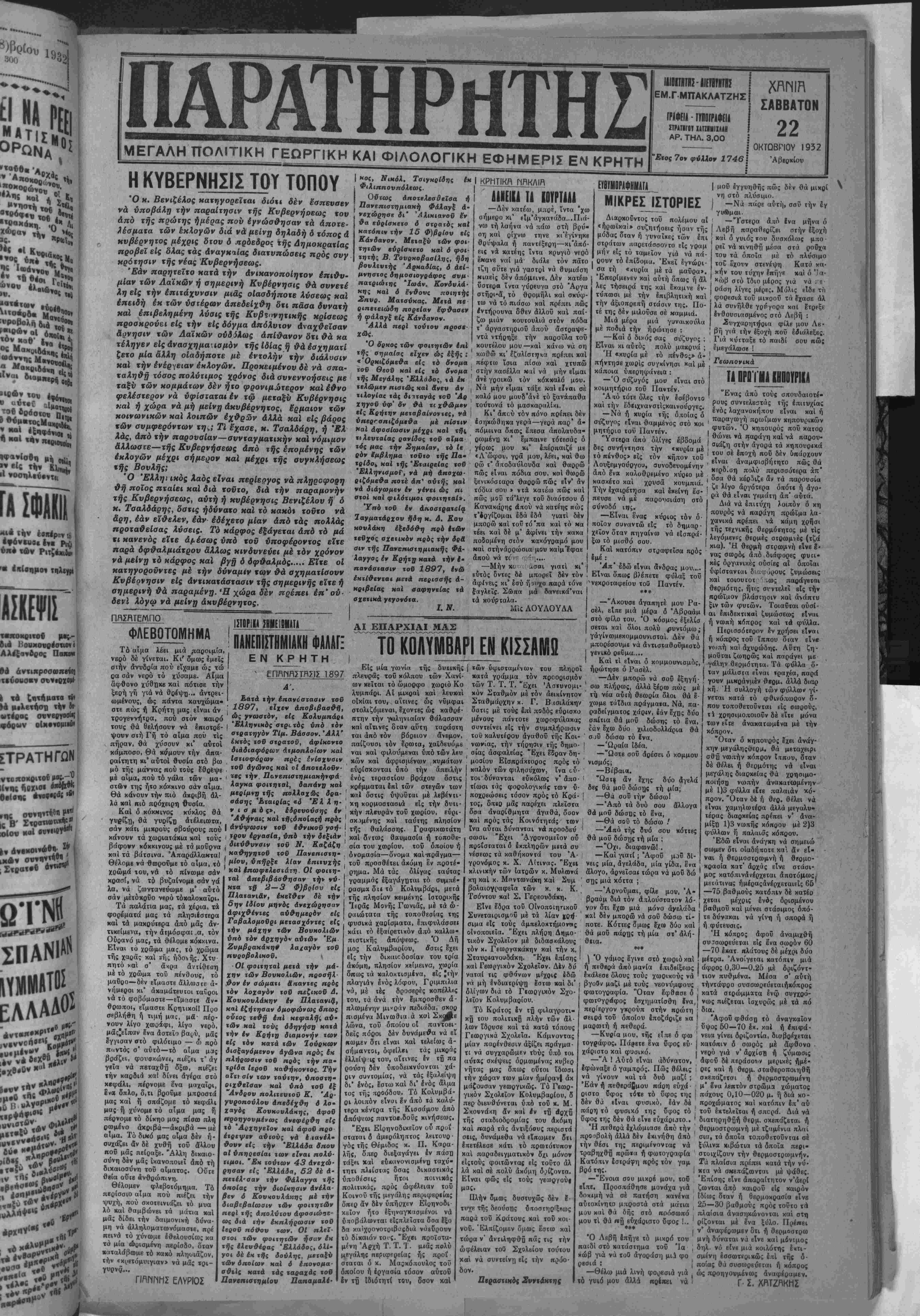ΜΕΓΑΛΗ ΠΟΛΙΤΙΚΗ ΓΕΟΡΓΙΚΗ ΚΑΙ ΦΙΛΟΛΟΠΚΗ ΕΦΗΜΕΡΙΣ ΕΝ ΚΡΗΤΗ