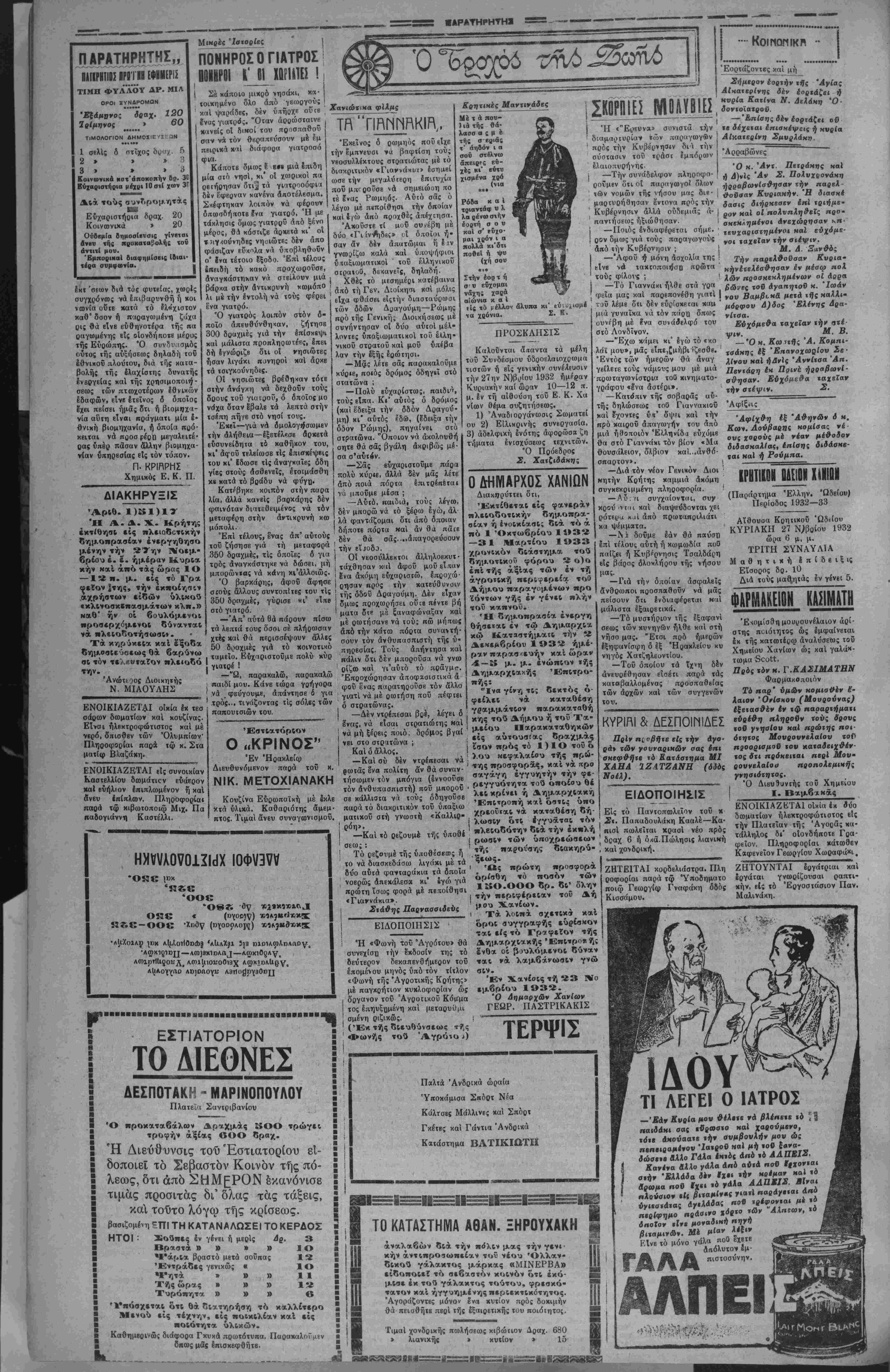 —'Η Κυβέονηαι; βυνΐρχ·μ<νη έντός των ήμβρβν 8ά βπσφαθίαη τβ βνώΐστβν βριον τοϋ μιοθσϋ τδν δημασίων ύπαλλήλων. Διά τβΰ μέτρου βύτοΰ ή Κυβέρνησις προβλ! ηΐι διενέργειαν πολλών οίκονομιών. —Σήμερον ηρόκίΐτβι νά όρκιαθοΰν «ρθεισδν ίλων των άντιδρίσβων ό κ. Άγγελόπουλσς ώς υπουργ^ϊ των €ίκ·νομικών κα( ό κ. Καχζουροικης βουλβυτής Χανίων ώς Γενικβς Διοικητής Κρήτης. Ό κ. Κοτζουρβχης θά κ>
