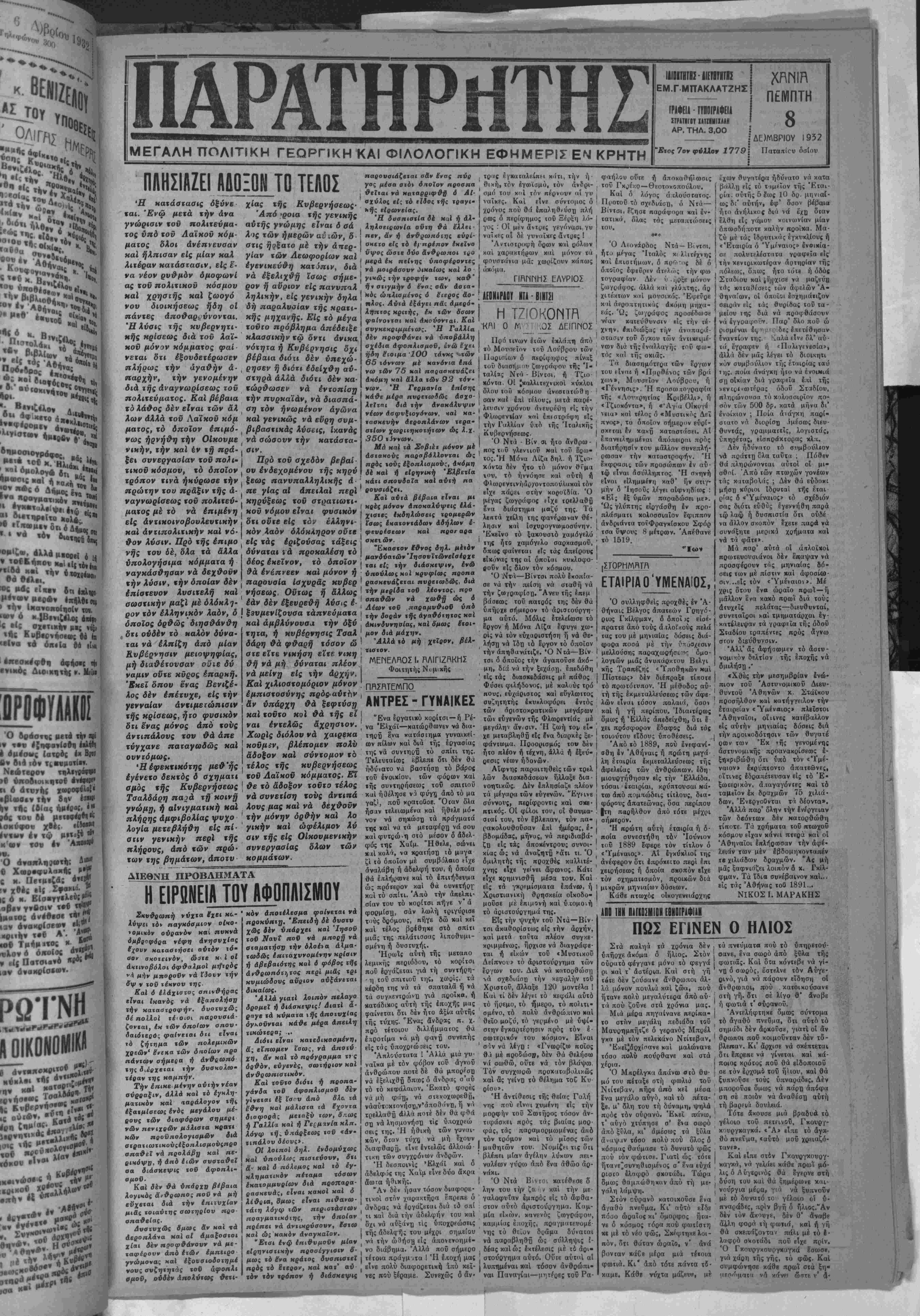 ΜΕΓΑΛΗ ΠΟΛ1ΤΙΚΗ ΓΕΟΡΠΚΗΚΑΙ ΦΙΛΟΛΟΠΚΗ ΕΦΗΜΕΡΙΣ Ε** ΚΡΗΤΗ