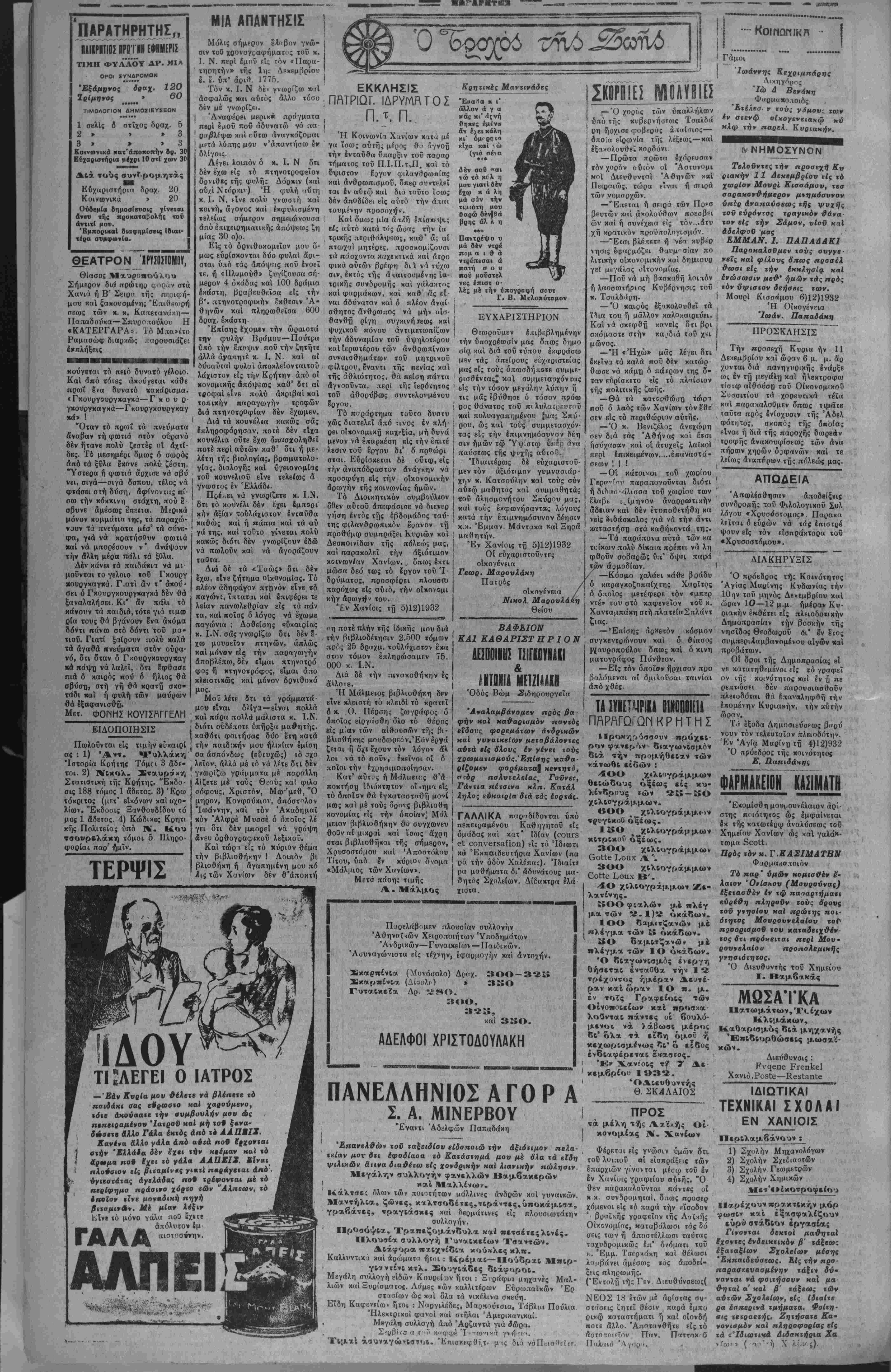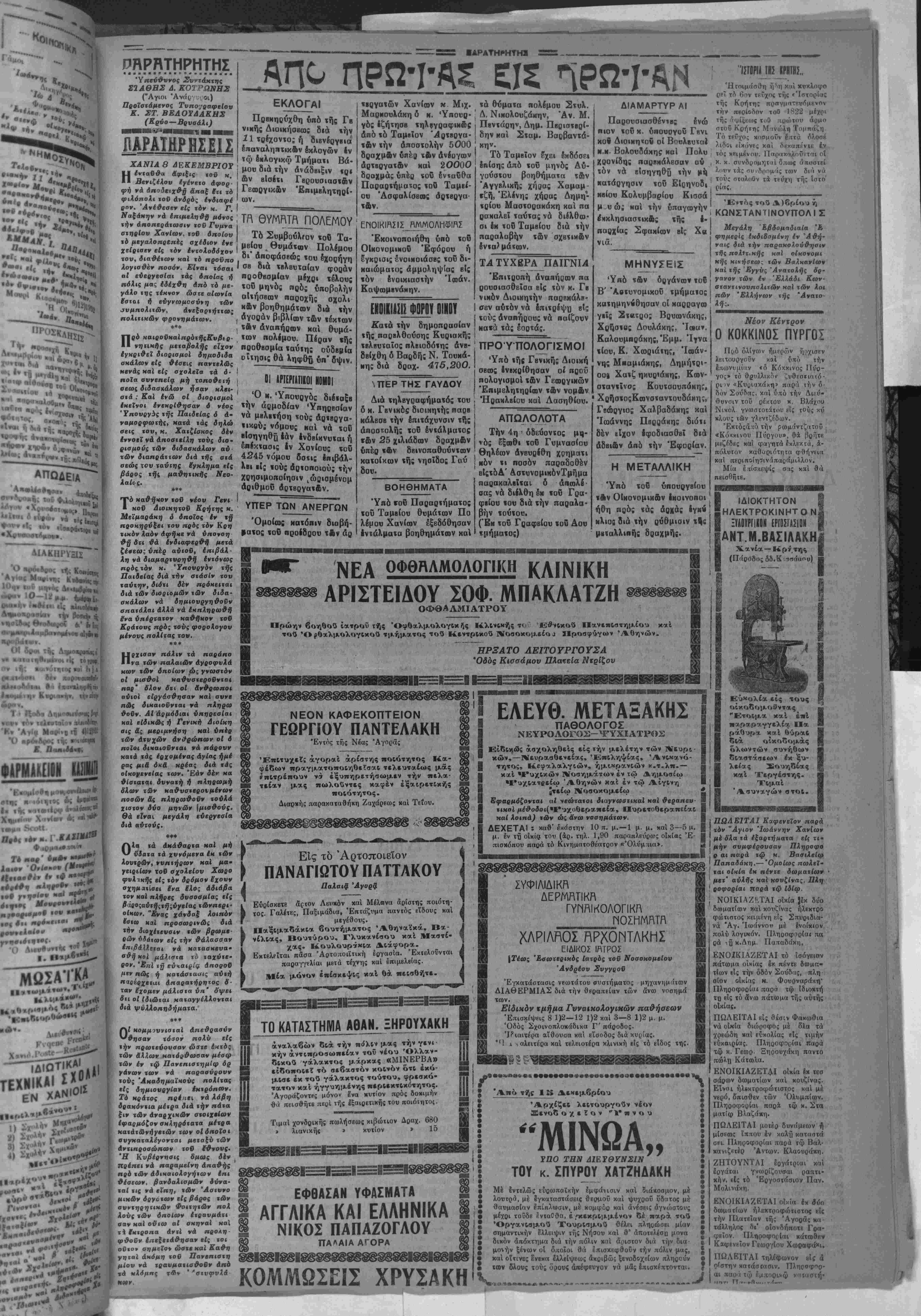 τή Ββγιατζάκι κ«1 ιιαλ<βτα ιίς νυκτερινάς ώρ ς, ώς αυτή ίοχυρίζβτσι, φυσικόν ήτο, μάλιοτα μετά τόν ήθι καν διασυρμόν ποΰ τής έγέ νβτο έκ μέρους &ύ(οΰ, νά τοΰ έδημιούργεΐ περιπέτειαν ομοίαν έκείνης τοΰ Φεβρουα ρίου 1929, διά τής έγκαίρου είδοποιήσεως των συγγενών αυτή; περί τινος των αυναν νήσεπν των, κοθ' άς νά κα τελόμβανον τούτον έπ'' ύτο φώεω, άνίκονον ν* όρνήτι τβΰ λοιπού, την ενοχον πρός την γυναίκα διαγνγήν χον. ΑΙ διαποαγματεύσεις τυϋ θύματος πρός γάμον, ήοχι οαν τοβΐς μήκες πρό τοϋ φό νού, δέν έτελβιώθη δέ, συ ναικέσιον αυτού είς Πίκρι, συνεπεία των άπβιλ'ων των συγγβνών τής Βογιατζάκι πρός την οικογένειαν τής έν Πίκρι ύποψηφίας νύμ φης. Ή πρός την έκ Πηγής ύπόσχαεις πρός γάμβν άντηλ λίγη ολίγας ημέρας πρό τοΰ φόνου, καθ* αί ή φονεύς δι εκήουττε φανερα πλέον διι θά έφόνευβ τόν Κβυτσαλε δάκιν, 2 ή 3 ημέρας δέ πρό τής πράξεως, έπανέλαβε τάς απειλάς της, πρός συγγενή τής φιρομένης ώς μνητής νεάνιδος, ποός ήν επέδειξε, διά νά καταστήση οπουδαιο τέραν την απειλήν της και τό πιστόλιον μετά των σφοιι ρών. Δέν είναι έπίσης άκριβές δή κ«τά τόν φόνον ένένετο οιαδήποτε βυ£ή ησις μετκξύ των θλιβερών πρυιώπων τοΰ δραματος. Ή φονεύς ά φήκκ νά διέλθη τό θϋμα της έκ τής στενωποΰ είς την γω νίαν τής οποίας ένήδρβυσε κβί μόλις διελθέντα τόν έπυ ΔΕΛΤΙΟΝ ΤΥΠΟΥ Τό Γραφείον τύπου άπέ στειλεν κίς την Γενικήν Δι οίκησιν τό κάτωθι τηλεγρά φημα, ίηί τή& καταστάσεως: Οί βπεργήσαντες τροχιο δβθμικοί έπιμ^νουν είς την κηρυχθείσαν παρ' αυτών απεργίαν μέχρι τελικής φαί νεται άποδοχής των οίτη Η ΑΡΣΙΣ ΠΟΤΟΑΠΑΓΟΡΕΥΣΕΩΣ ΑΘΗΝΑΙ 7 Δεκβμβοίου (τοΰ άνταποΜοιτοϋ μας).— Τηλβγραφοΰν έξ ΟύασιγΜϊώνο; δτι τό Κογκοέσον άηΐα- οιψβ τό νομοσχέδιον περί τής δλβυθέρας εΐσόδου των οί νων είς την Αμερικήν. Έν ηάοΐβ ηεριητώσΒΐ έλπίζεται ό¬ τι ό νόμος θά ψηφισθή άμα ανολοβ]] την αρχήν δ Ροθζ- βελτ. ωρα3ηΠΡΩΤνη καί οί εργάται μερικήν βιο μηχανικών όργσστασίων οί όποΐοι «αί ζητοΰν αύξησιν των ήμερομισθ.ων των. | II ΡΑΡΑΙΙΙΙΣΙΣ -ΓΓΕΑΟΠϋΥΛΡϊ Ή άναγρνφεΐσα πληροφα ρία περΐ παραιτήσεως τοΰ ι ύπουργοΰ τδν Οίκονομι- κών κ. Άγγελοπούλου δια ψεύδιται. Την πληροφορίαν διβύψευσά κβί αύτός ούτος ό κ. Άγγελόπουλος. ΑΠΕΡΓΙΑΚΗ ΚΙΝΗΣΙΣ ΒΑΙΝΟΜΕΝ ΠΡΟΣ ΝΕΑ ΚΡΙΣΙΝ >ί—Ι 7 Ν βμβοίου (ϊοΟ άνταηοκρειοβ μα:).—