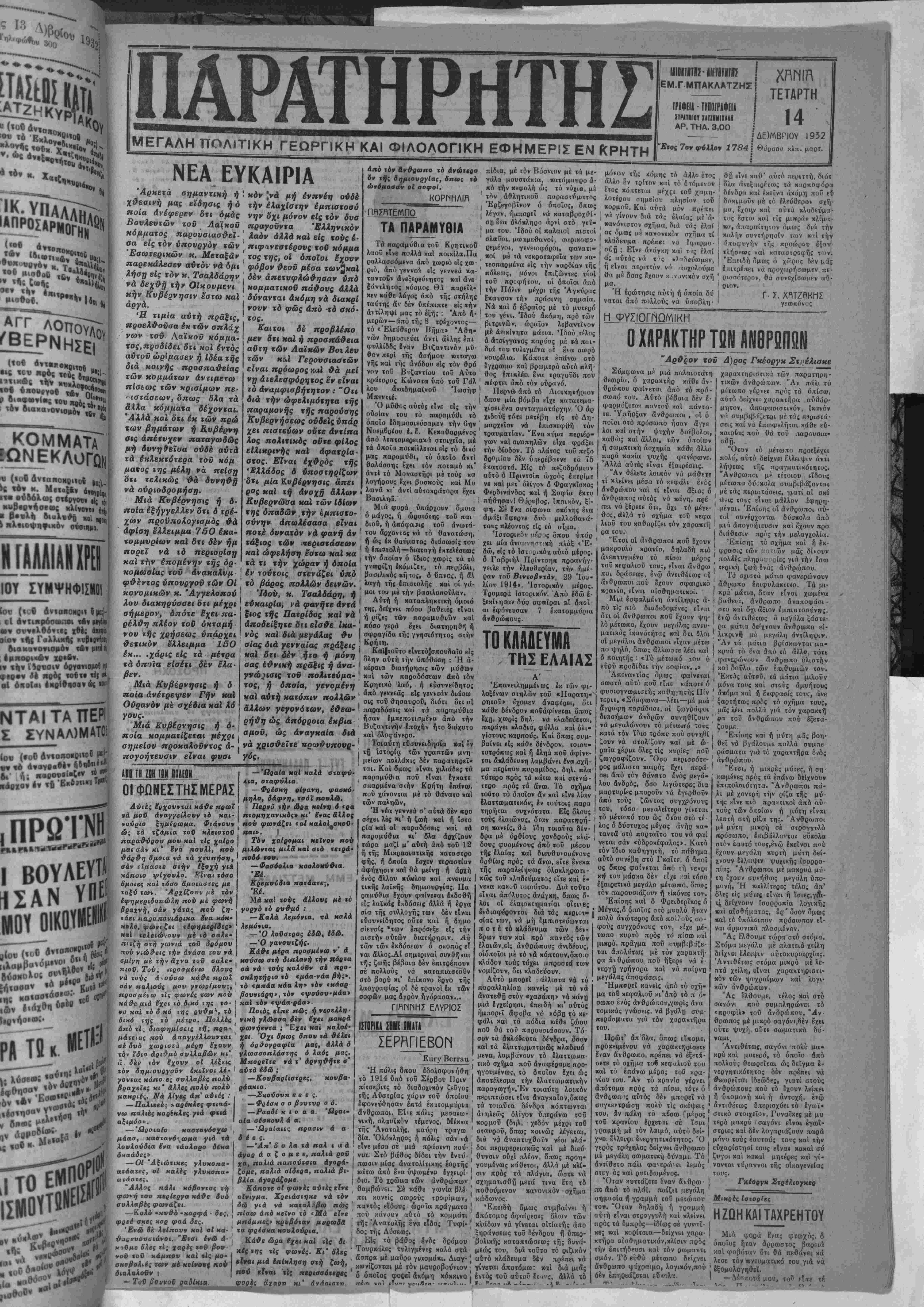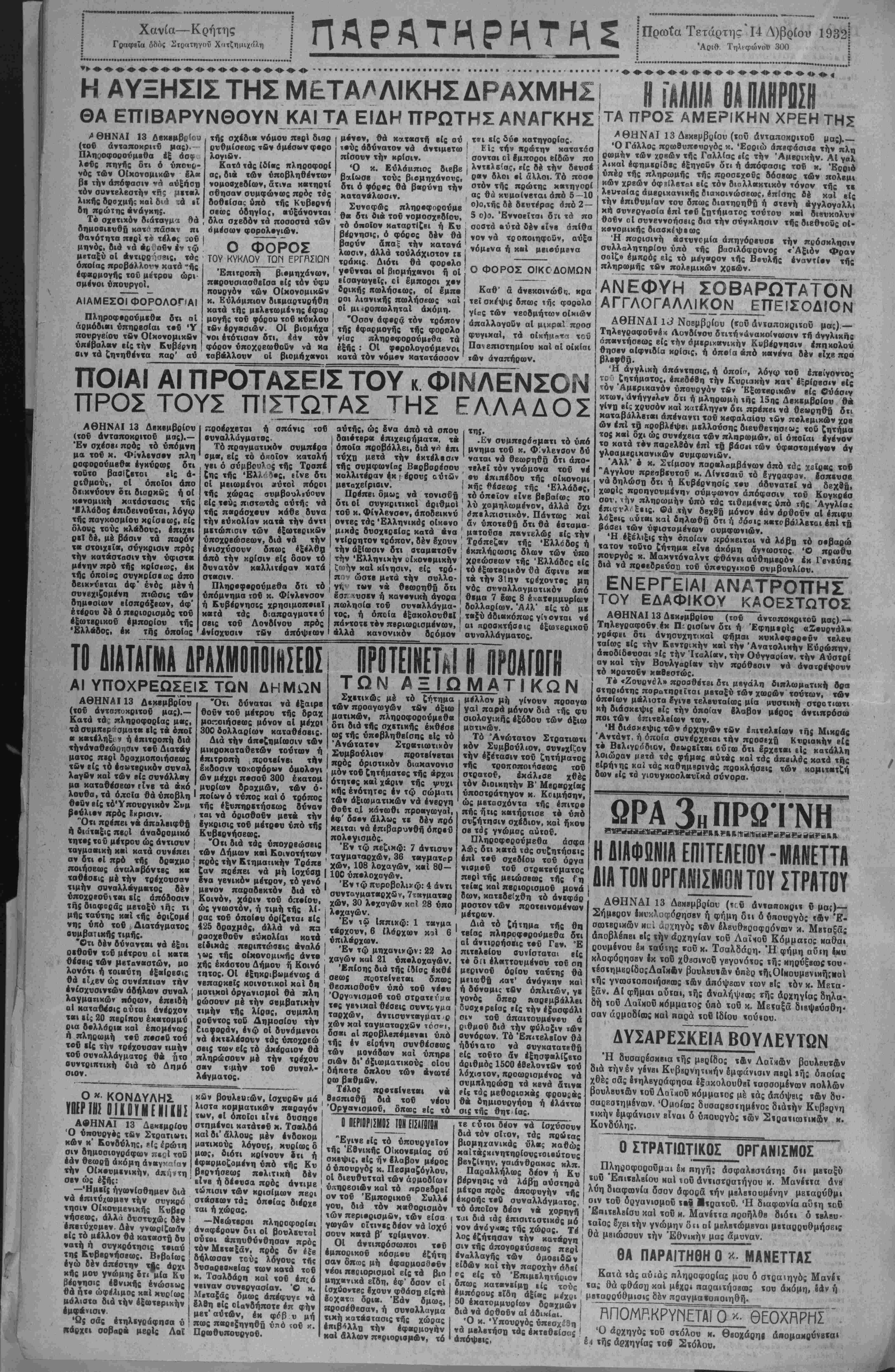 ΑΘΗΝΑΙ 13 Δεκεμβριού (τοΰ άνταποκριτοΰ μας).—