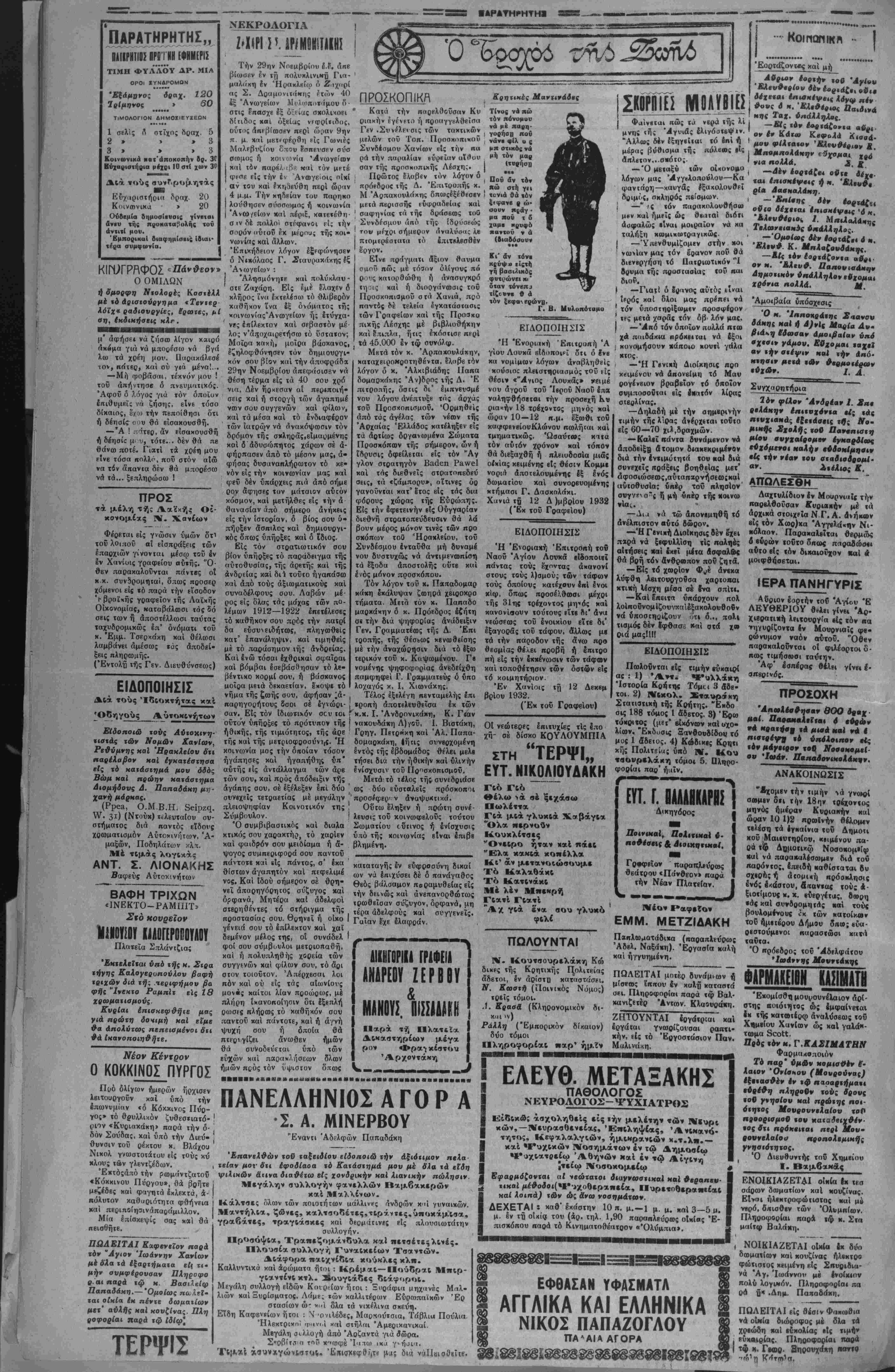 σωτερικώ ν Ηίι ^.>;ηγόί «ών έλ8<υθ8θοφρόνοον μ. Μβϊαξάς αποβλέπβι β(ς «ήν άρχηγ.αν τού Λαΐιοΰ Κόμμα.ος καθαι ρουμένου έκ ταύτης κου κ. Τσαλδάρη. Ή φήμη αΰιη Ικυ κλοφόρησβν έκ τοθ χθβσινοΰ γβγονότος τή; πηρύξβωςτου· «έστημΒρίδοςΔαΪΜ&ν βουλΒυνάαν ύηέρ τήςΟΐΗουμβνιπήίΐιαΙ τής γνωστοποιήσβως των άπόψβων των είς τόν μ. Μετα- ξαν. Δί φήμαι αυται, «ής αναλήψβως τής αρχηγίας 8ηλα· δή τοΰ Λαΐχοΰ κόμματος υπό τοθ κ. Μεϊαξό. οιβψβύσθη· σαν αρμοδίας καί παρά τοθ Ιδ.ου τούιου. ΑΥΣΑΡΕΣΚΕΙΑ ΒΟΥΛΕΥΤΩΝ Ή δυσαρέσΜβια «ής μερίδος «&ν Λαϊ«ών βουλβυτων διά την έν γένει Κνββρνητικήν εμφάνισιν πβρί ΐί|ί οποίας χθες αάς ένηλεγράφησα έξακολουθβϊ τασσομένων πολλών βουλευτων «οΰΆαϊχοΰ κόμματος μέ «άς άπόψΒΐ; «Αν 8υ· σαρΒσιημίνων. Όμοίω: δυσαρεστημίνος διά«ήν Ευββρνη τικήν εμφάνισιν βΐναι δ ύπουργός «ών Σιρανιηΐικων μ. Κονδύλης, Ο ΣΤΡΑΤΙΟΤΙΚΟΣ ΟΡΓΑΝΙΣΜΟΣ ι εε—ε—«επεΐιεΜεΒππε-Μη—— Πληροφοροϋμαι έ« πηγή; ασφαλβστάΐηβ διι μεταξύ νυδ Επιτελείον ΜαΙ τοϋ αν«ιστραϊήγου κ. Μανίττα ανβ λύη διαφοονία δσον δφορά «ήν μβλβΐουμένην μβϊαούθμι σιν τοΰ δργανισμοϋ «·« Ι«ρα«οϋ. Ή διαφωνία αοΐη «οθ | Έπιτβλβίσυ καί «οθ μ. Μανίττα προήλθε διότι δ «βλβυ· Ι «αϊος εχει «ήν γνώμην δή αί μϋλετώμΒναι μιταρρυθμήσεις , θά μβιώσουν «ήν Εθνικήν μας άμυναν. ΘΑ ΠΑΡΑΙΤΗΘΗ Ο * ΙΐΑΝΕΤΤΑΣ Εαιά τάς αύ.άς πληροφορίας μου δ στραιηγός Μανίτ «α; θά φ&άοτβ καϊ μέχρι παραιτήσβως «ου άκόμη, δάν ή μβναρρύθμισις 8βν ΤΓπθΜΡ.ΚΡΥΉθΓθ χ- ΘΕΟΧλΡΗΣ'" Ό άρχηγός τού στόλου μ. Θβοχάρηα άηομαΗρύνβναι έ« τής άρχηγία, τοΰ Στόλου.
