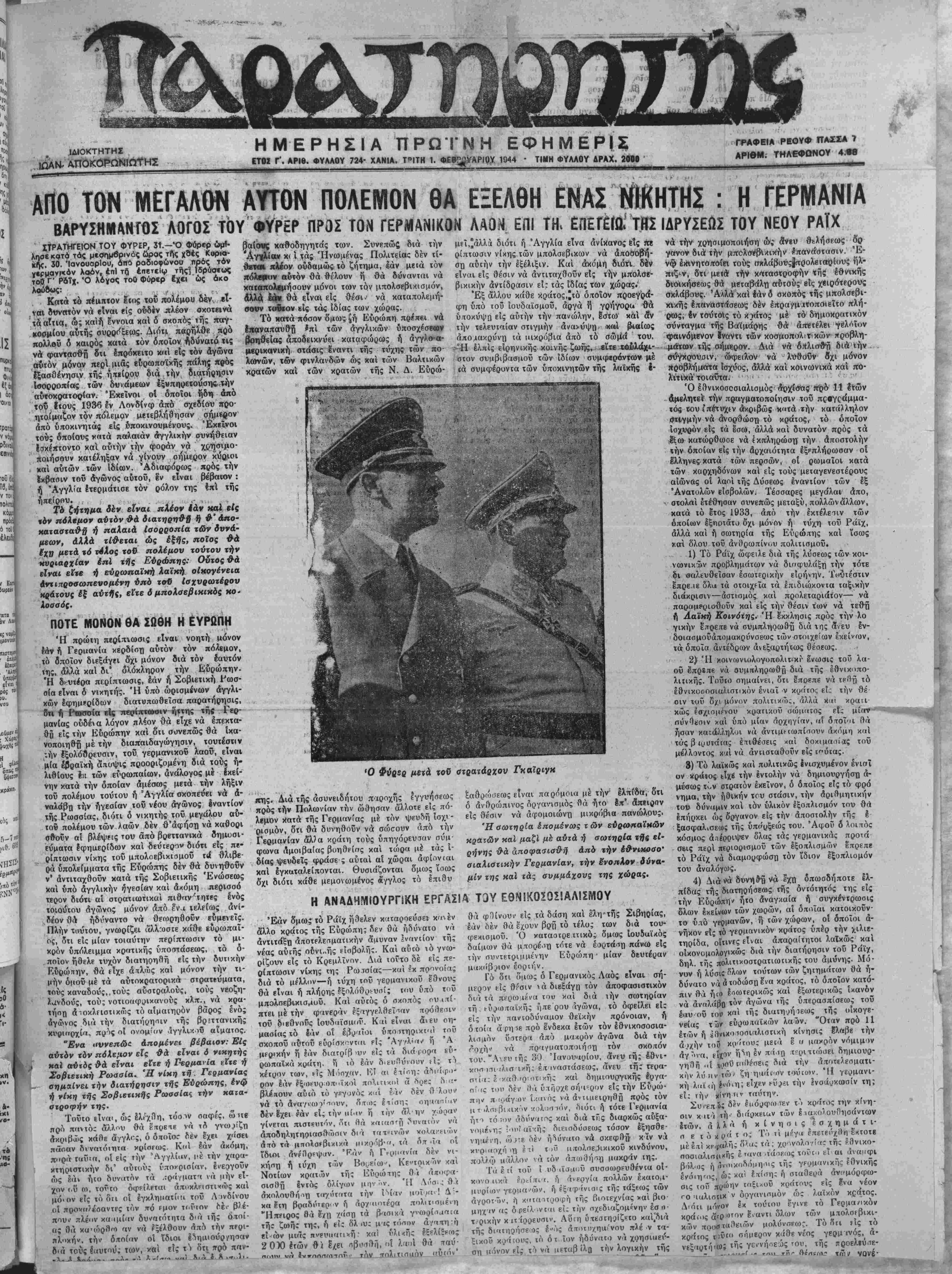 ΕΤ°! Γ' ΑΡ'Θ· ΦΥΛΛΟΥ 724' ΧΑΝΙΑ· ΤΡ|ΤΗ ■' »^ί^»Ρ'ΡΧ 1044 · ΤΙΜΗ ΦΥΑΑΟΥ ΔΡΑΧ 20