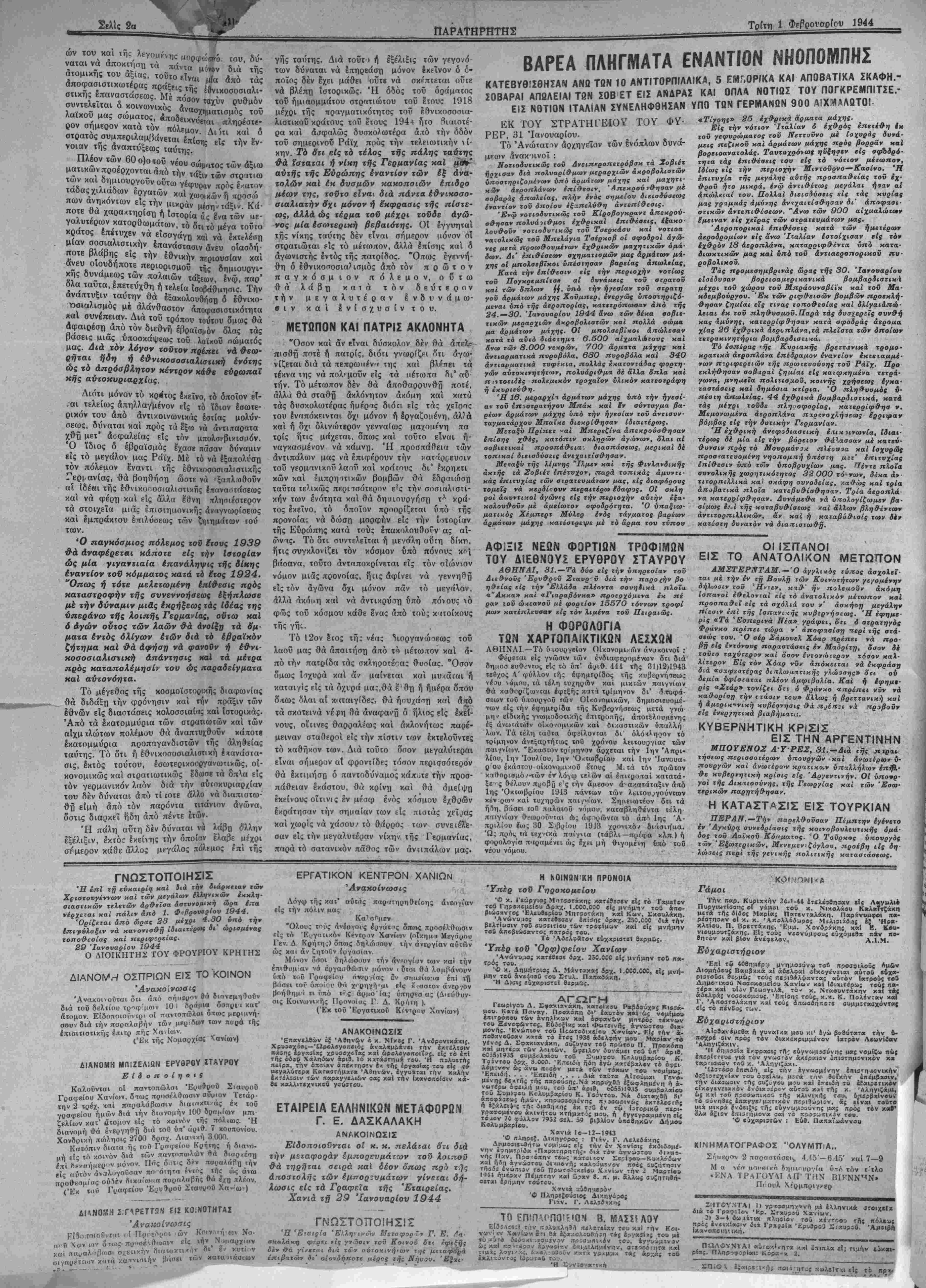 νέρχε.α. χαί πάλιν άπό 1. Φ^βροναρίον 1944.