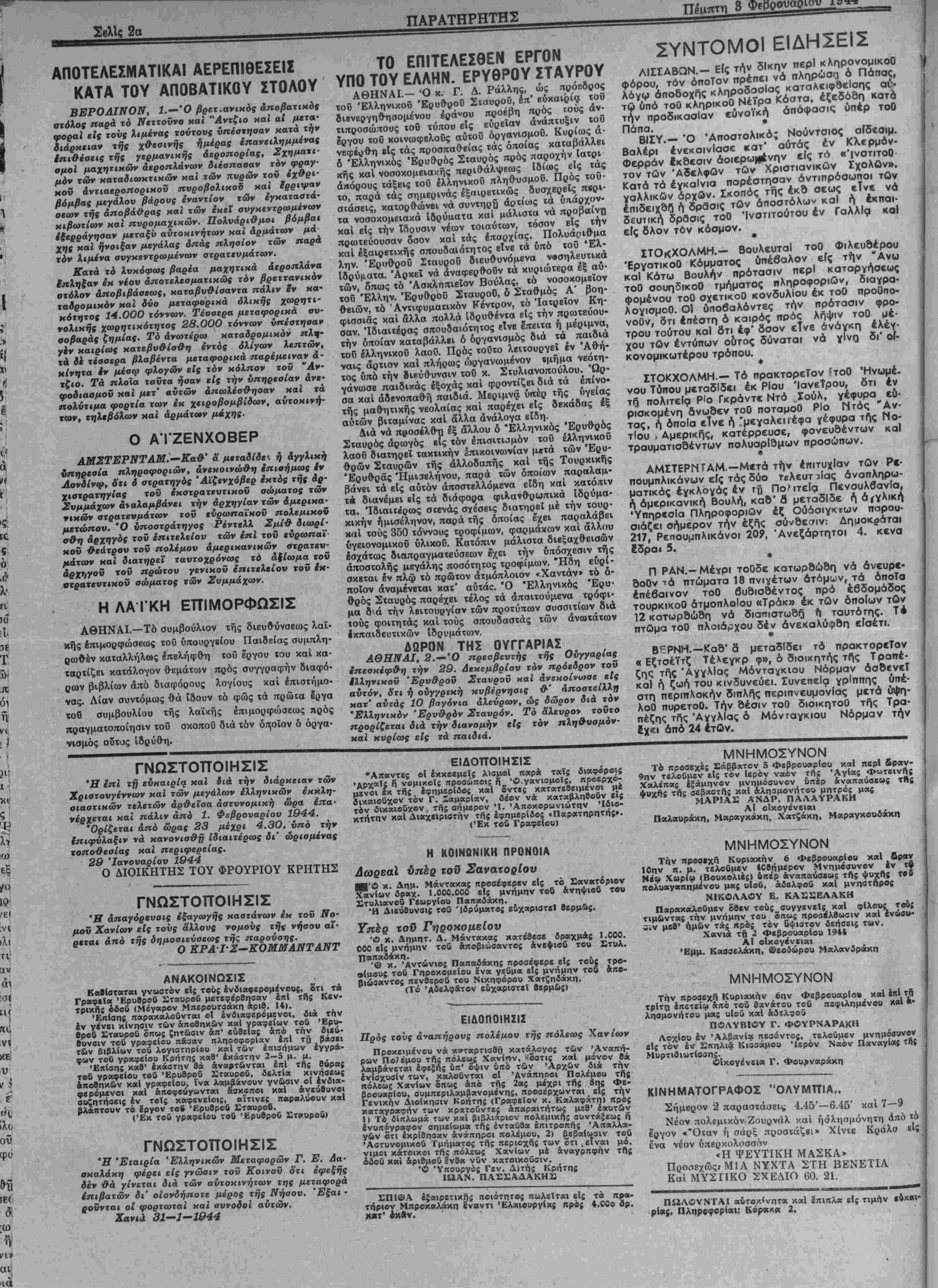νέρχεται καί πάλιν άπό 1. Φεβροναρίου 1944.