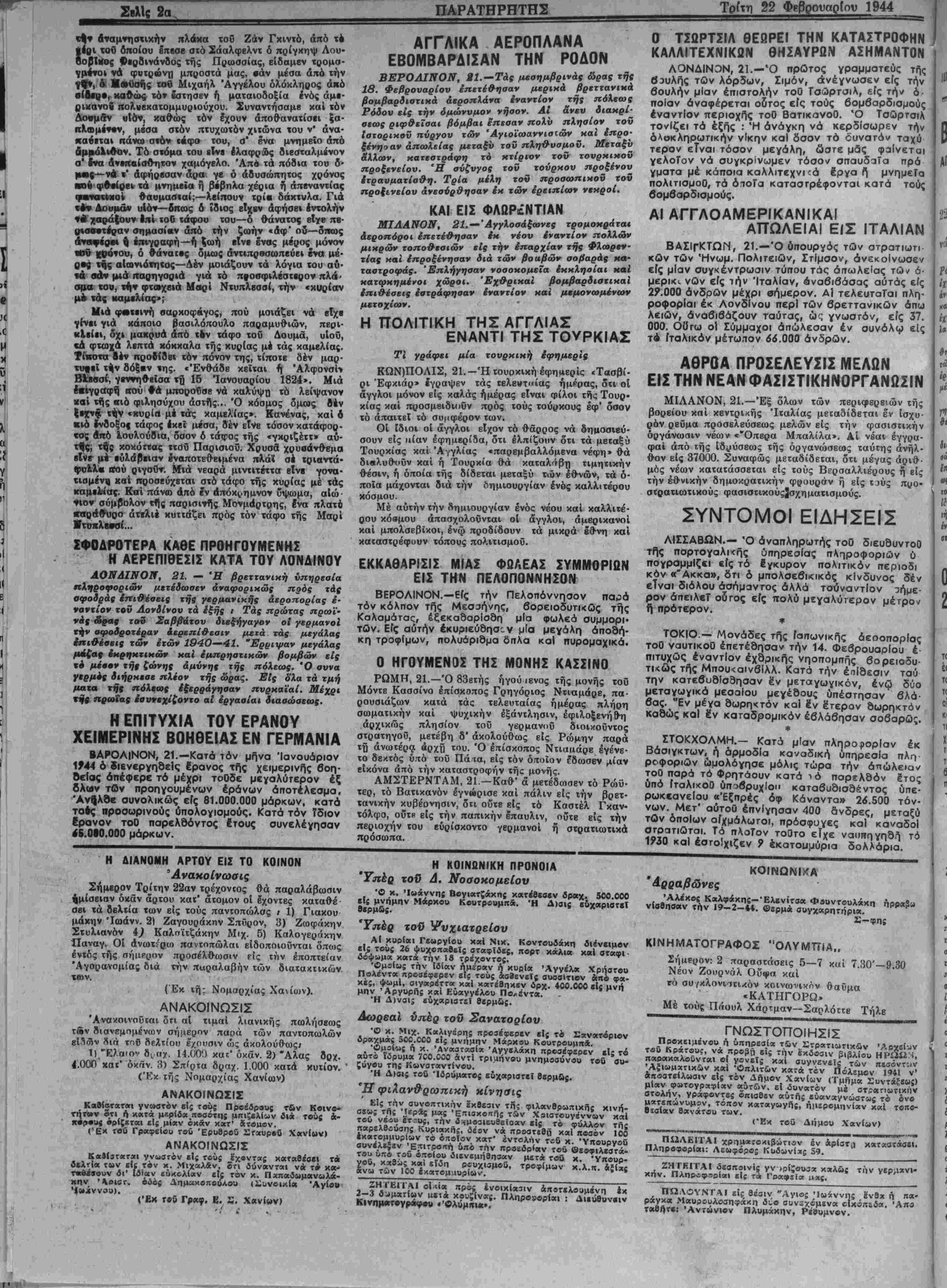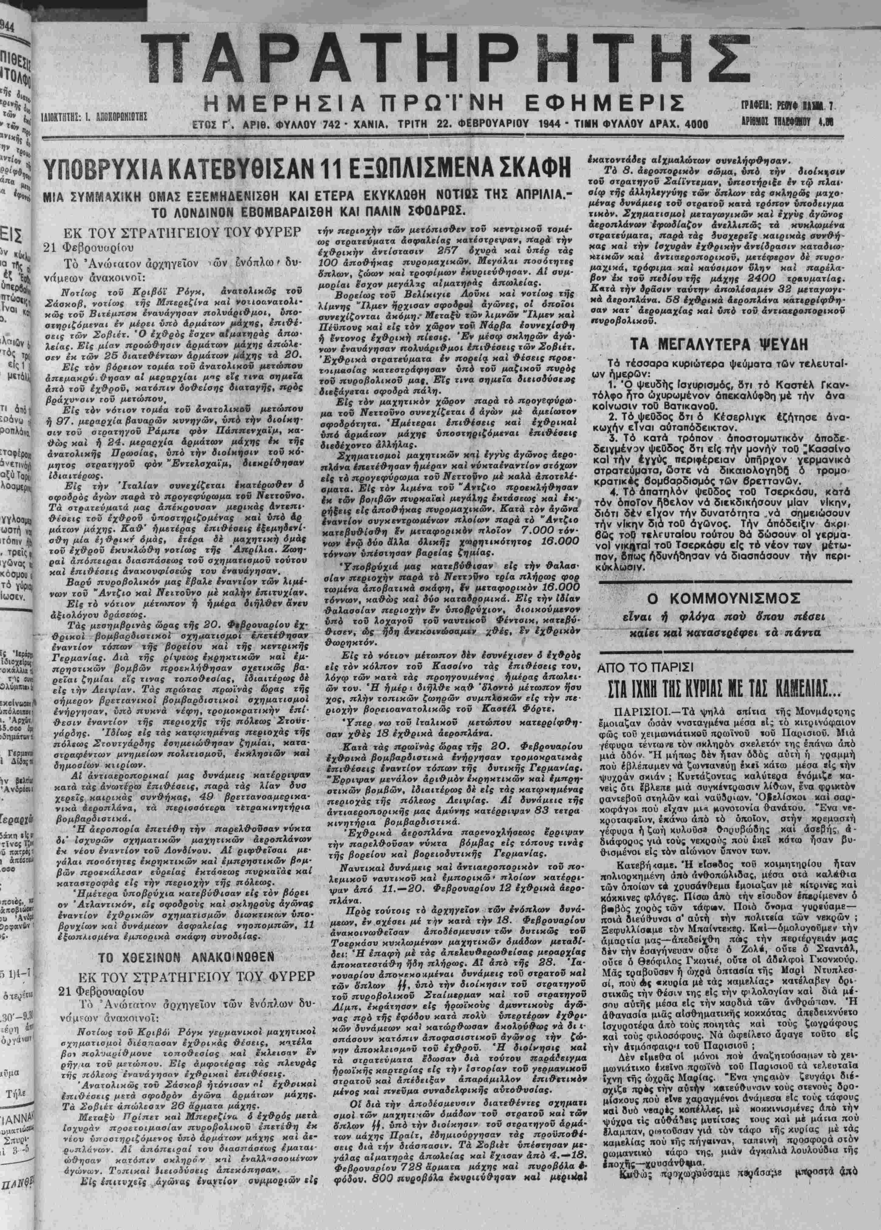 ΕΤΟΣ Γ'. ΑΡΙΘ. ΦΥΛΑΟΥ 742 - ΧΑΝΙΑ. ΤΡΙΤΗ 22. ΦΕΒΡΟΥΑΡΙΟΥ 1944 · ΤΙΜΗ ΦΥΛΛΟΥ ΔΡΑΧ. 4000 1ΡΙί!«111 ΠϋΦΠΟΤ (.(1