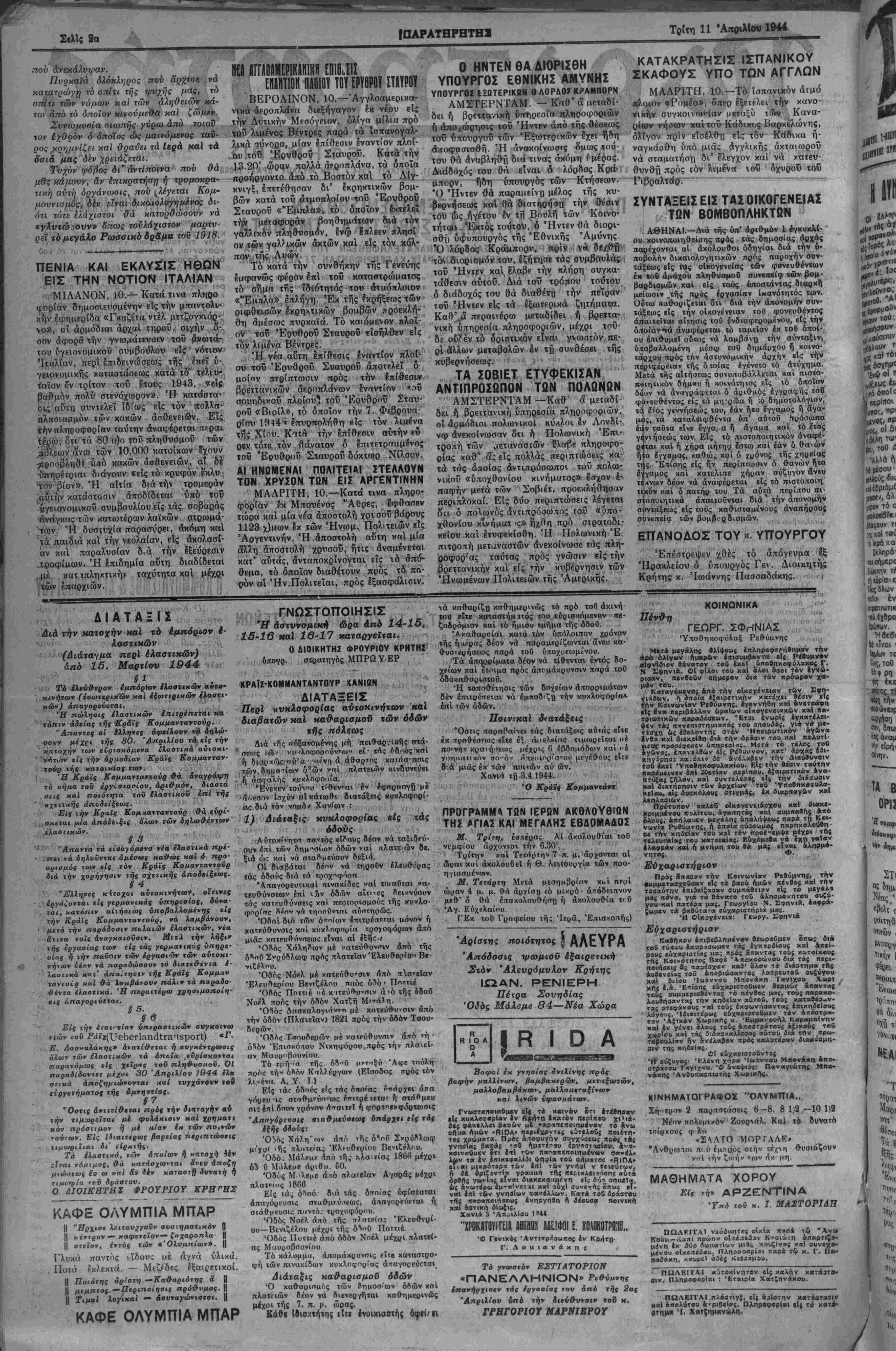 '' · ' ι Χανιά τβ 3.4 1944. ό νί?.? .»),[