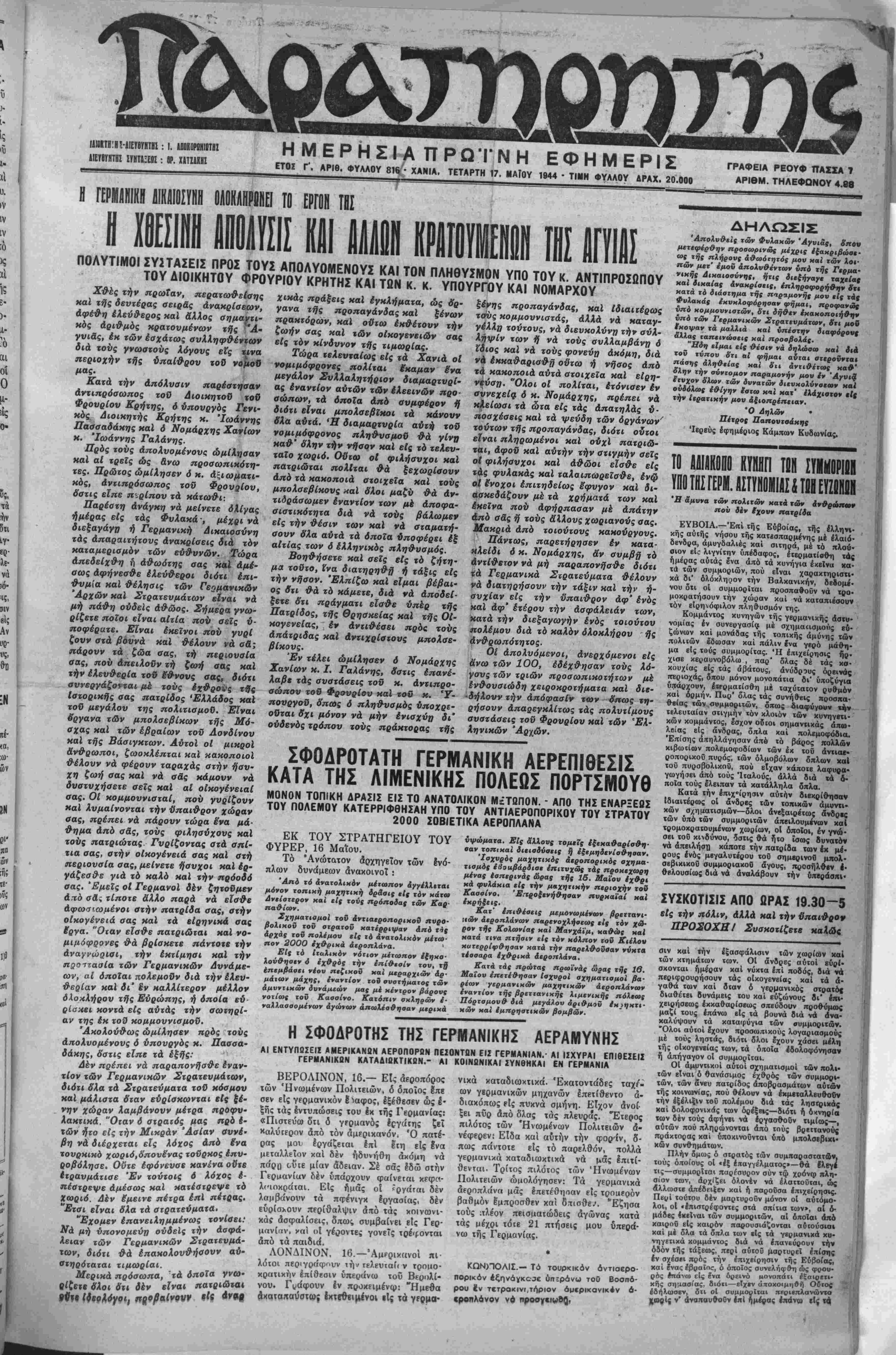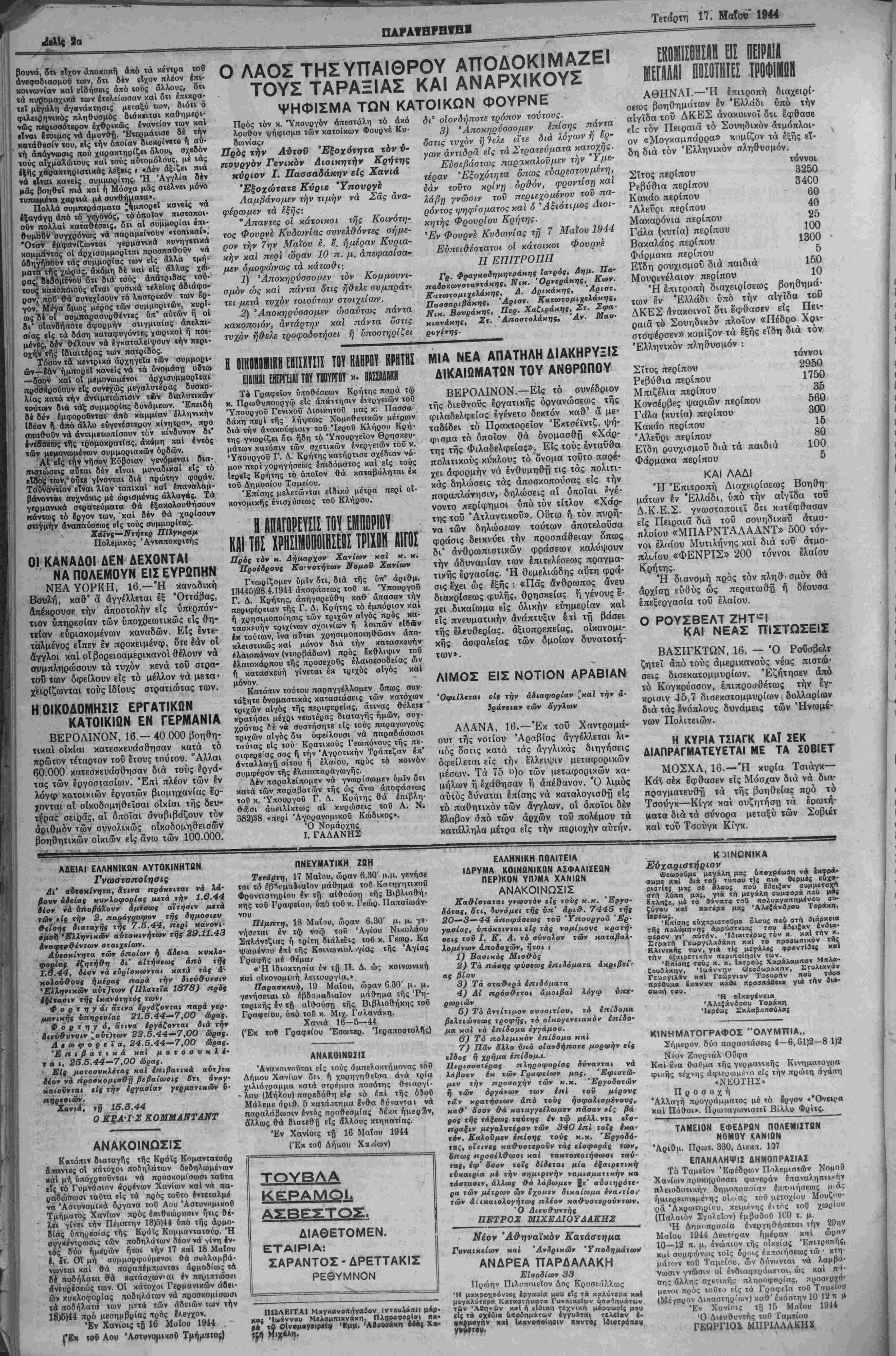 ΕΤΟΣ Γ'. ΑΡΙΘ. ΦΥΛΛΟΥ 81$ · ΧΑΝΙΑ, ΤΕΤΑΡΤΗ 17. ΜΑΪΟΥ 1944 ■ ΤΙΜΗ ΦΥΛΛΟΥ ΔΡΑΧ. 20.000