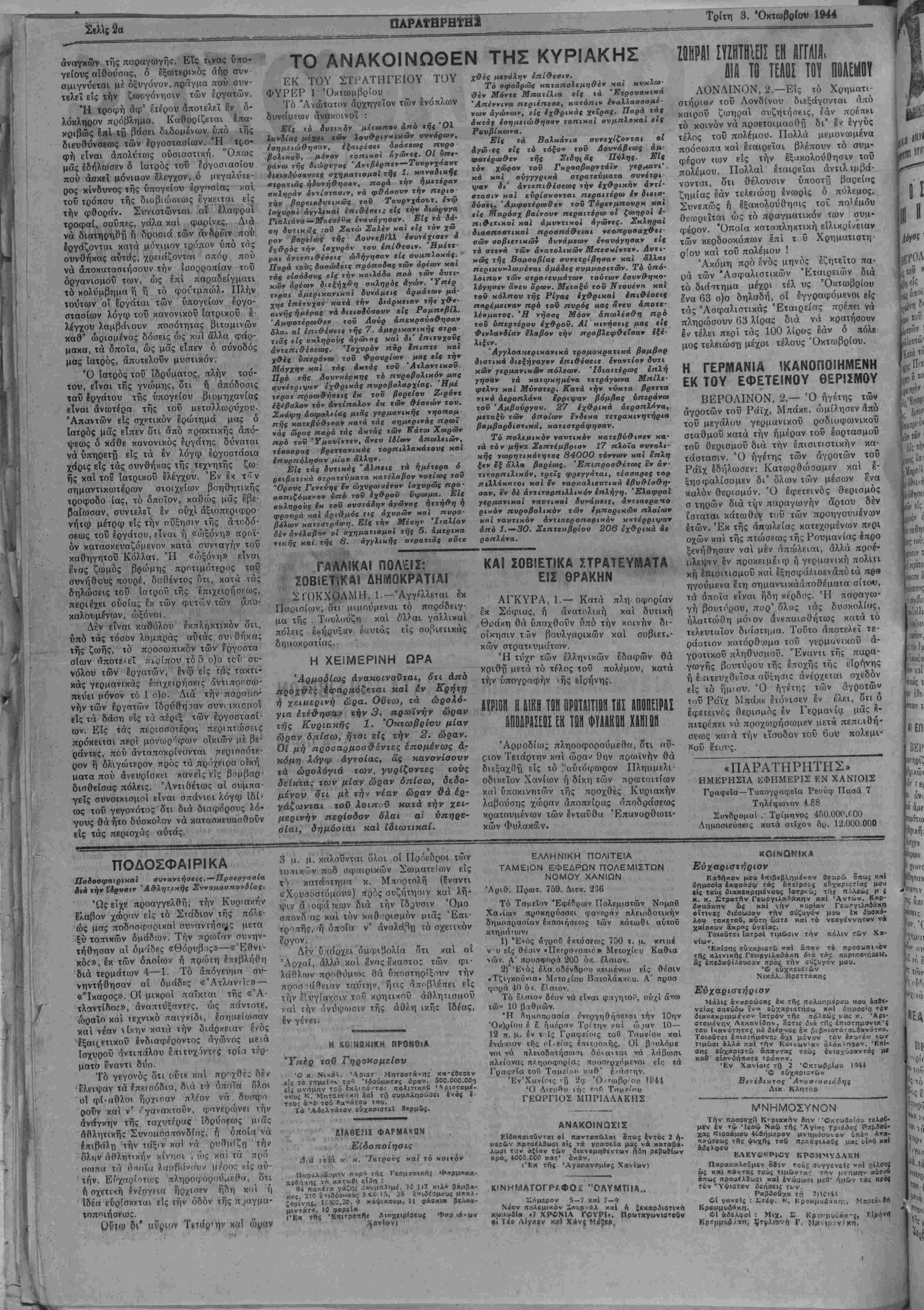 Ό κ. Νκίν. '?13Γ Μητ3βτά<η; είς τα τ%μεΤβ Τ£Γι Ίύϋύαατος ύρχν. 500.000.00^ £Ϊς μνήμην τοΰ έκλι<ιό.το<: ηολιτικ&ύ '^ρι&τομέ- νου£ Κ. Μητθ5Τ·"«η ϊ«1 τζ αυμπληρ^αει ενός ϊ· τού: 4*β τβΰ 8α«άτίυ ιβο. 'Ι'ό Άδΐλτ^Γβν βΰχχοιβτεΐ ΔΙΑΘΕ2ΙΣ ΦΑΡΜΑΚΟΝ Είδοποίηαις Δα ΐοί/'ί «■ «· '/οτροΰς χαϊ ΐό κοινόν ικηί '1»»ρμ«>ΐί(-