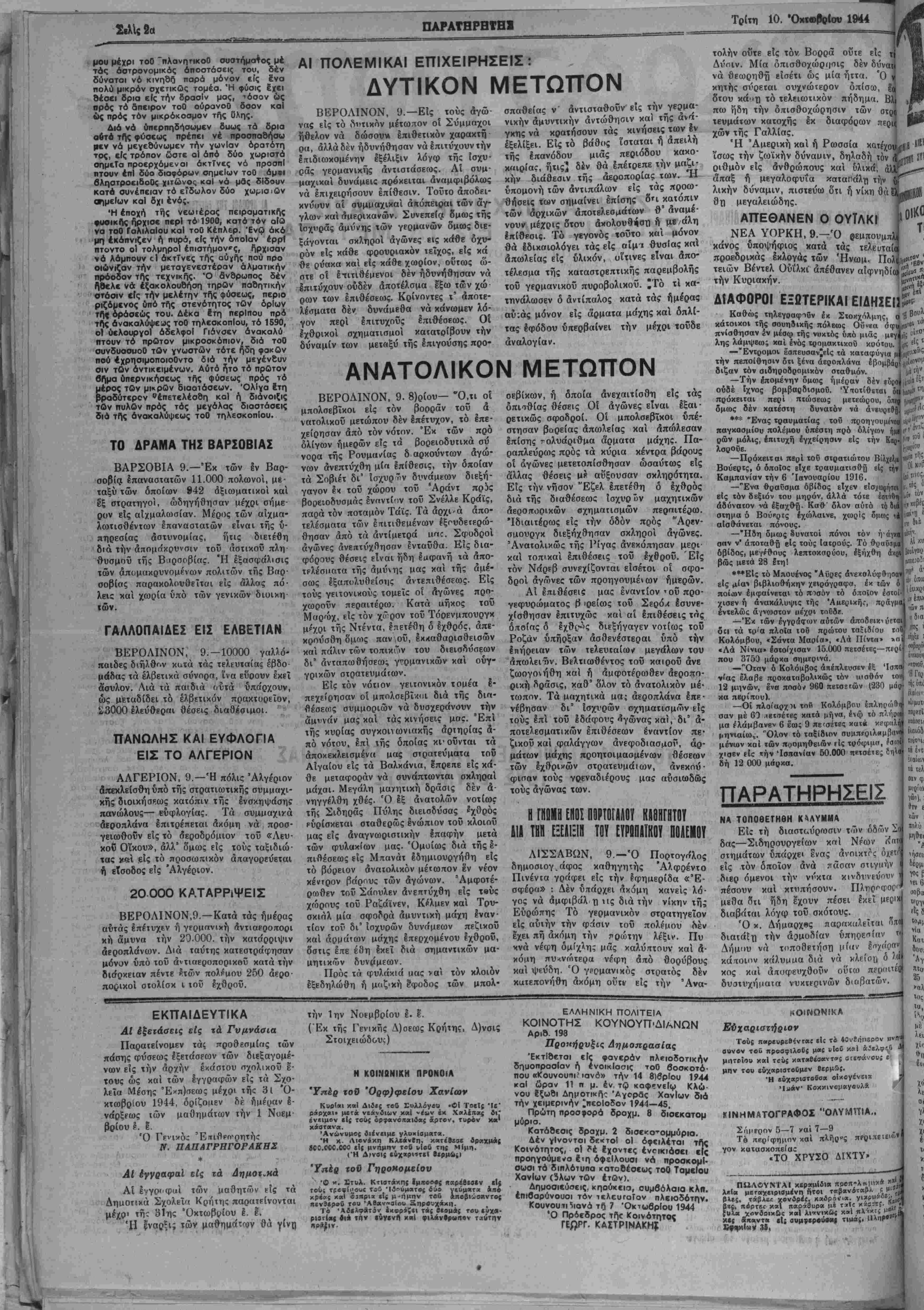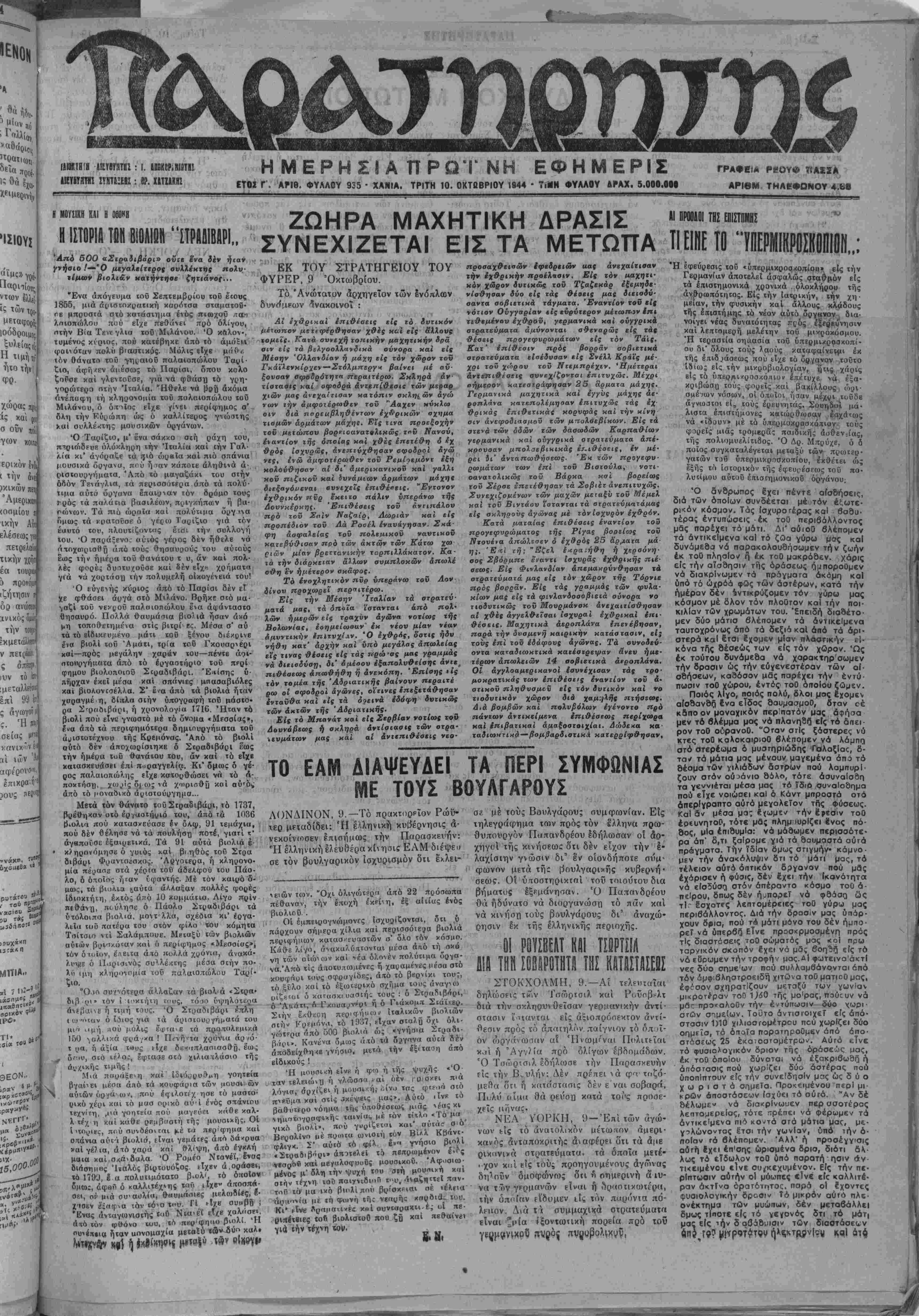 ΕΤΟΙ Γ . ΑΡΙΘ. ΦΥΛΛΟΥ 935 · ΧΑΝΙΑ. ΤΡΙΤΗ 10. ΟΚΤΟΒΡΙΟΥ 1944 - 7.1Η ΦΥΛΛΟΥ ΔΡΑΧ. 5.ΟΟΟ.ΟΟΙ