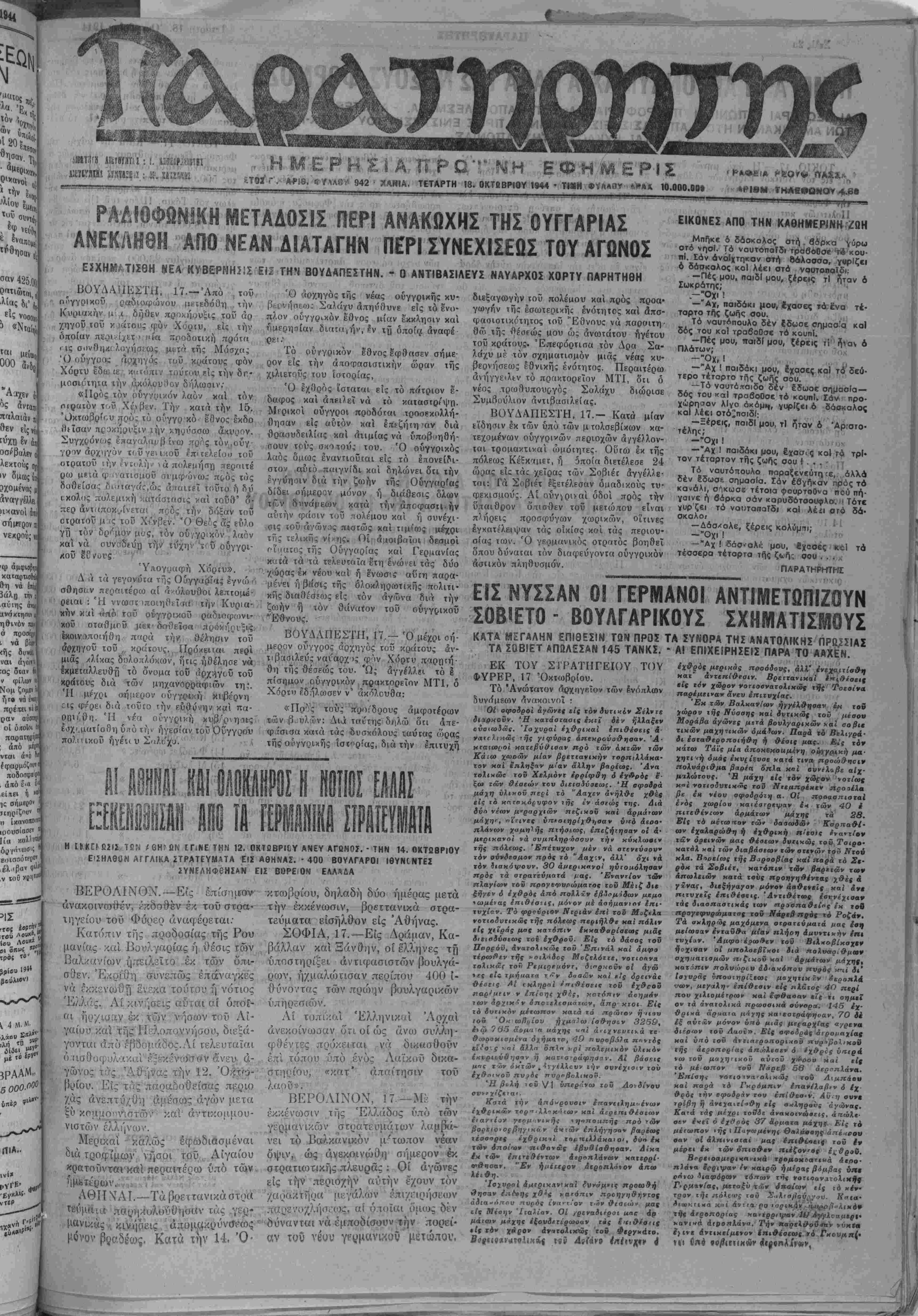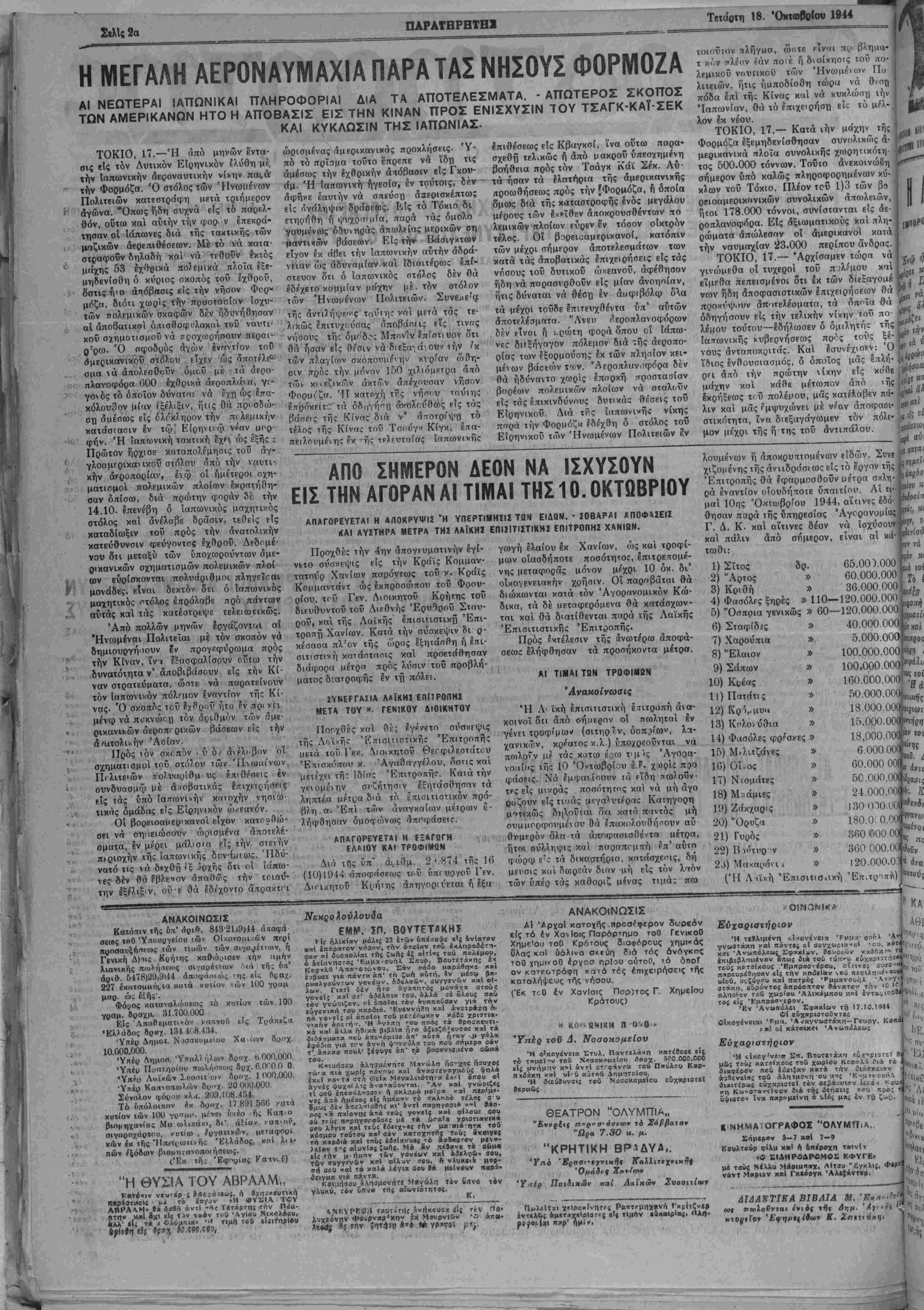 942 3ΪΑΗΙΑ, ΤΕΤΑΡΤΗ 18. ΟΚΤΒΒΡΙΟΥ 1944 · ΤΙΜΗ ΦϋαλΛΥ Μ»Λ* γΟ.ΟΟΟ.ΟΟΙ