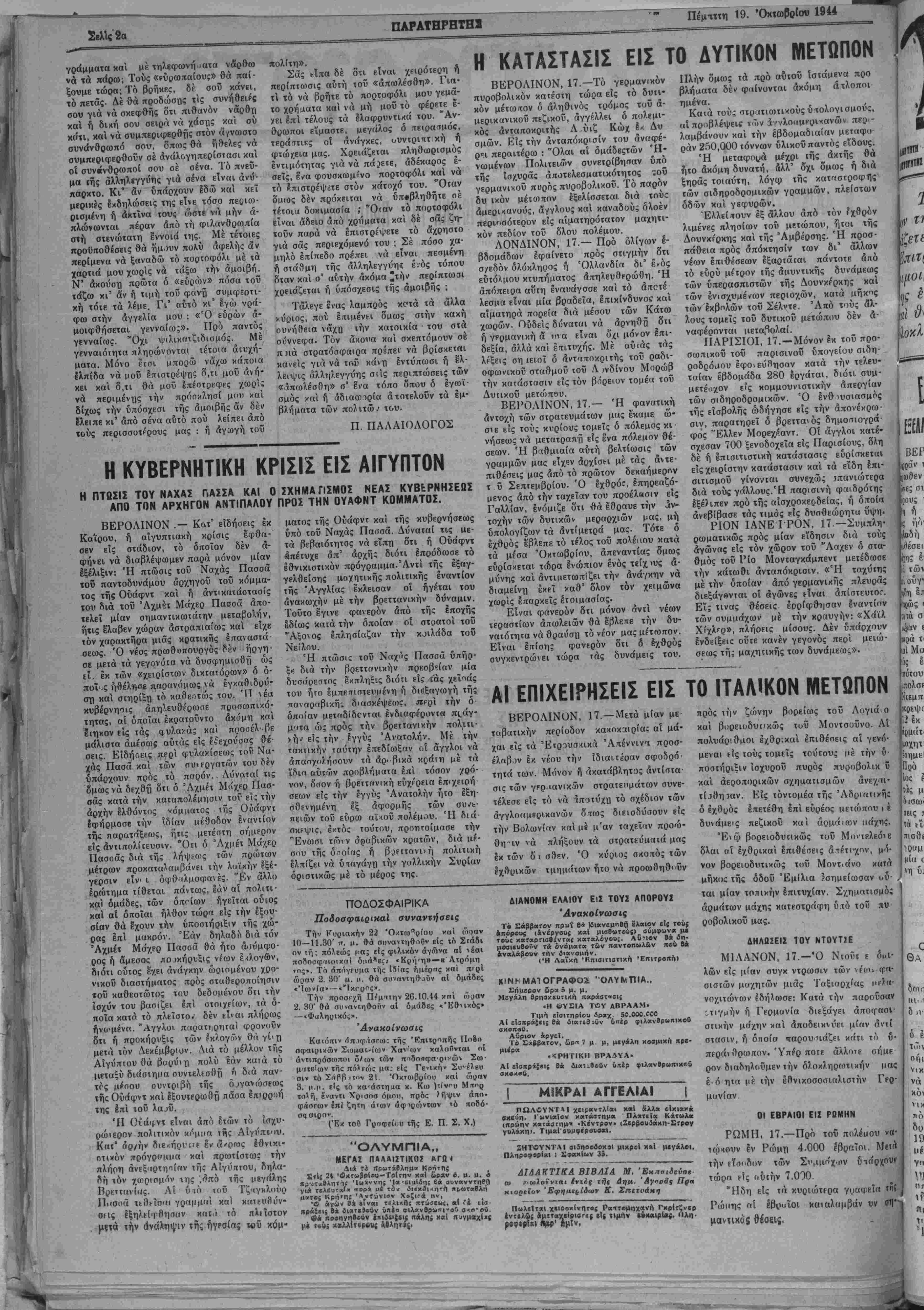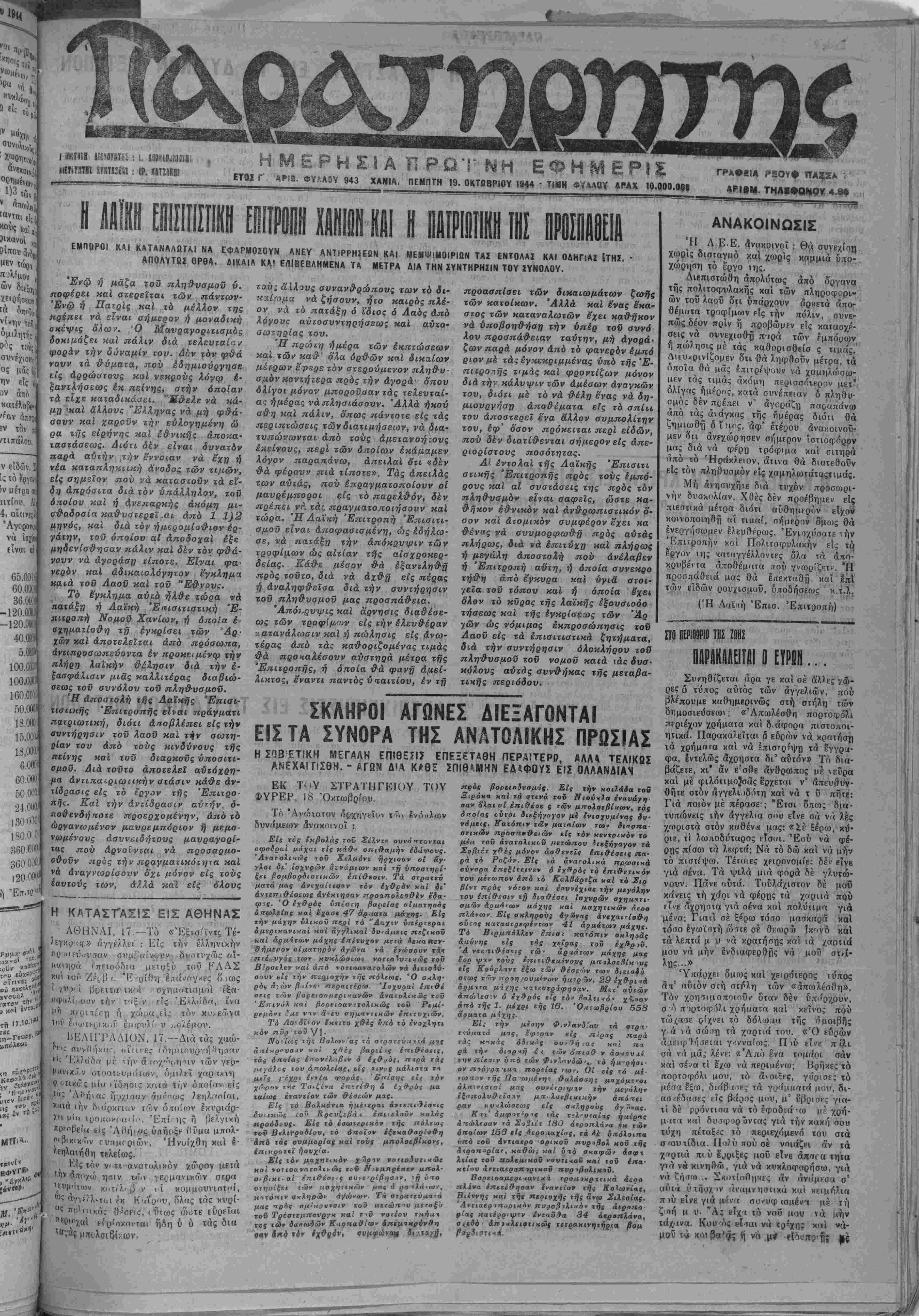 ΕΤΟΙ Γ ΑΡΙ9. ΦΥΛΛΟΥ 943 ΧΑΝΙΑ, ΠΕΜΠΤΗ 19. ΟΚΤΒΒΡΙΟΥ 1β44 ■ ΤΙΜΗ ΦΐΛΑβΥ ΔΜΧ ΙΟ.ΟΟΟ.Οββ