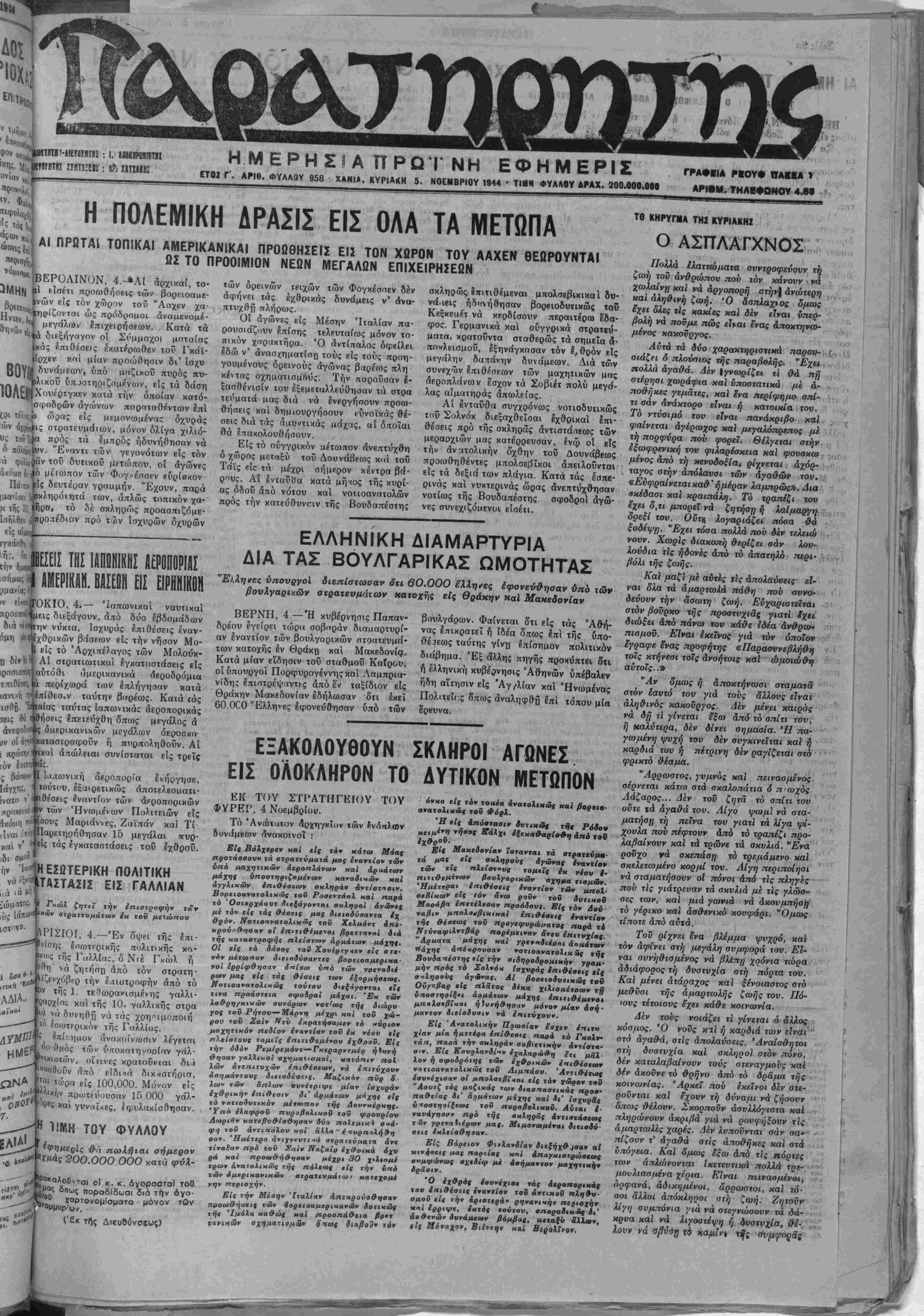 ΕΤΟΙ Γ. ΑΡΙΘ. ΦΥΛΛΟΥ Θ58 ΧΑΝΙΑ, ΚΥΡΙΑΚΗ 5. ΝΟΕΜΒΡΙΟΥ 1944 · ΤΙίΗ ΦΥΛΜΙΥ ΔΡΑΧ. 200.000.080
