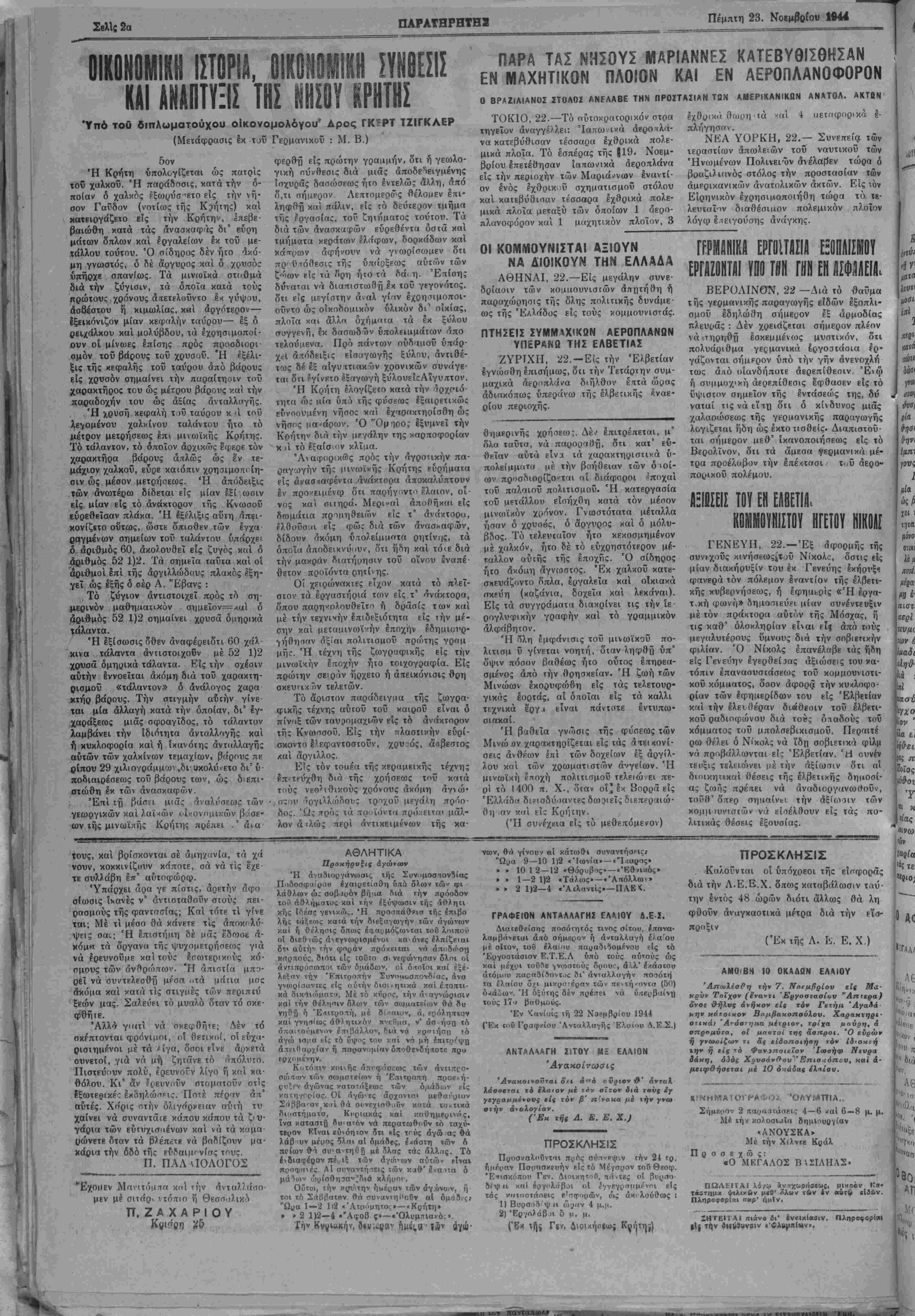 ΕΤΟΖ Δ'. ΑΙΜβ. ΦΥΛΛβΥ 973 ΧΑΝΙΑ. ΠΕΜΠΤΗ 23. ΝΟΕΜΒΡΙΟΥ 1944