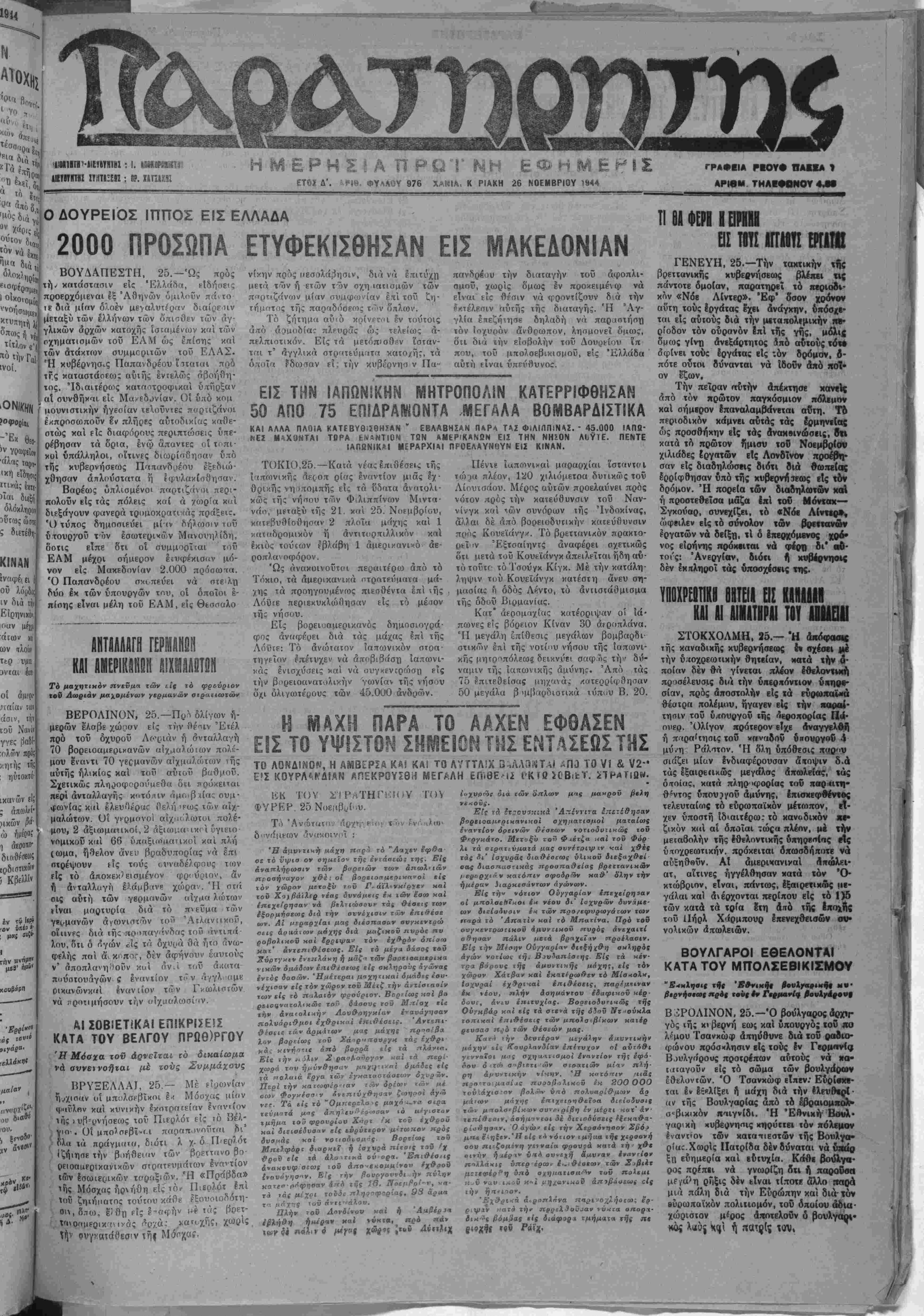 ΕΤ6ϊ Δ'. »γΊ». ΦΥΛΛΰΥ 976 ΧΑΚΙΑ, Κ ΡΙΑΚΗ 26 ΝΟΕΜΒΡΙΟΥ >β44