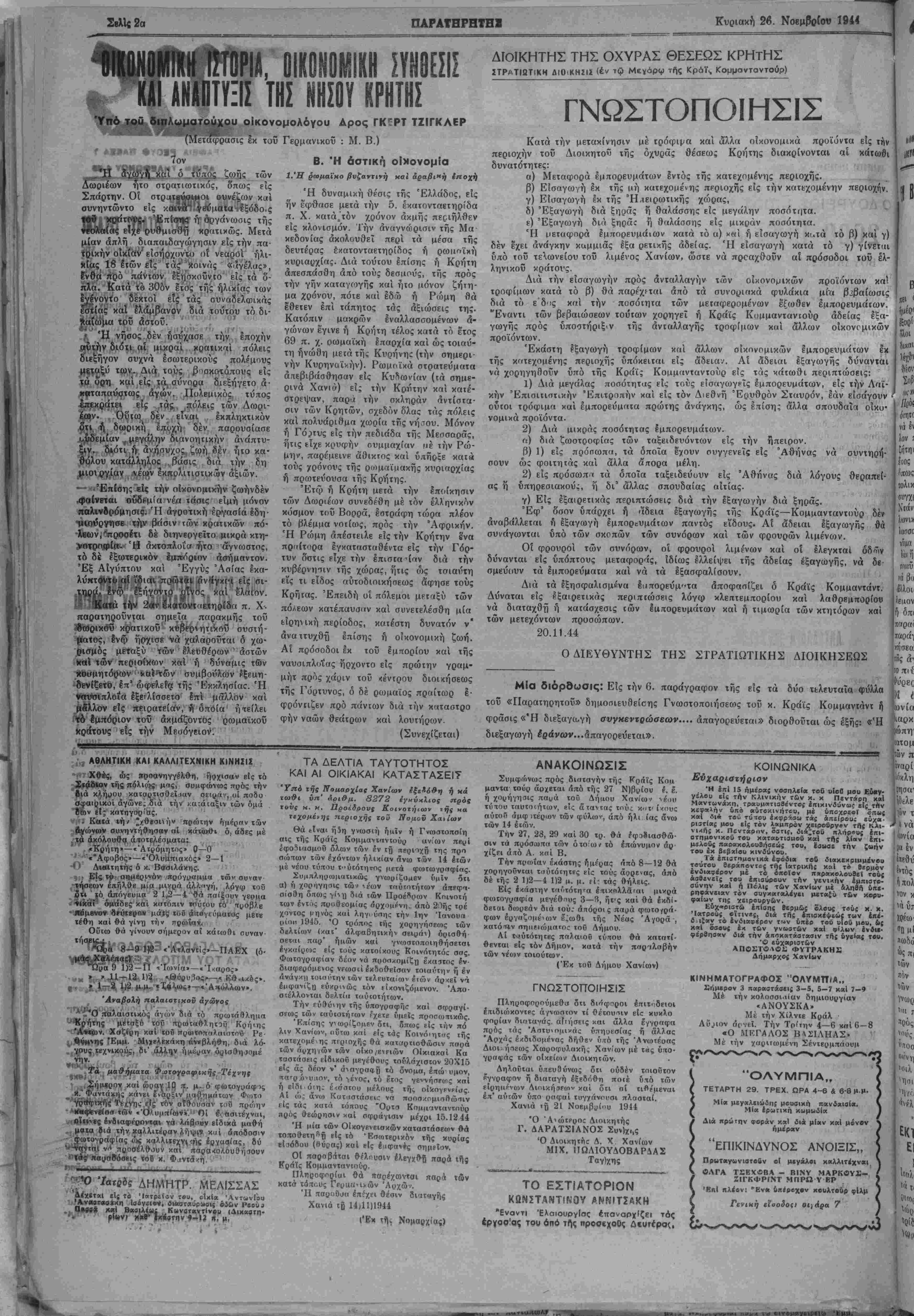 φέρβηααν διά την αποκατάστασιν τή; ύγ«<α{ τού. 'Ο ιύχαριατων ΑΠΟΣΤΟΛΟΣ ΦΥΤΡΛΚΗ2 Δή Χανίων ΚΊΝΗΜΑΤΟΤΡΑΦΟΣ "ΟΛΥΜΠΙΑ,, Σήμερον 3 παραοτάβει; 3-5, 5—7 καΐ 7—9 Μέ την κολοσσι,ιιαν δημιουργίαν «ΑΝΟΥΣΚΑ» Μέ την Χίλντε Κράλ Αύριον όι<7ΕΪ. Την Το'την 4—6 χ<ιΐ 6 — 8 «Ο ΜΕΓΑΛΟΣ Β42ΙΛΗΑΣ» Μί «ήν χαςιΐωμέλη Σβντερμπαουμ ι "ΟΛΥΜΠΙΑ,, ΤΕΤΑΡΤΗ 29. ΤΡΕΧ. ΩΡΑ 4--6 4 6-8 μ.μ. Μία μεγαλειώδπ; μουβιχή πανδαιαία. Μία έρωΐική κωμωι51« Λιά πρώτην Φοράν χαί διά μίαν καΐ μόνον ημέραν "ΕΠΙΚΙΝΔΥΝΩΣ ΑΝΟΙΞΙΣ,, Πρ«ταγωνιατ£ϋν οί μεγάλαι χαλλιτέχναι ΟΛΓΑ ΤΣΕΧΟΒΛ - ΒΙΝΥ ΜΑΡΚβΥΪ- ΖΙΓΚΦΡΙΝΤ ΜΠΡΩ Υ ΕΡ •Επί ηλεβν: "Ενα 6περβχ·ν κβυλτούρ φΐλμ Γενιαη ιϊοοδοςι οΐ)άρα 7