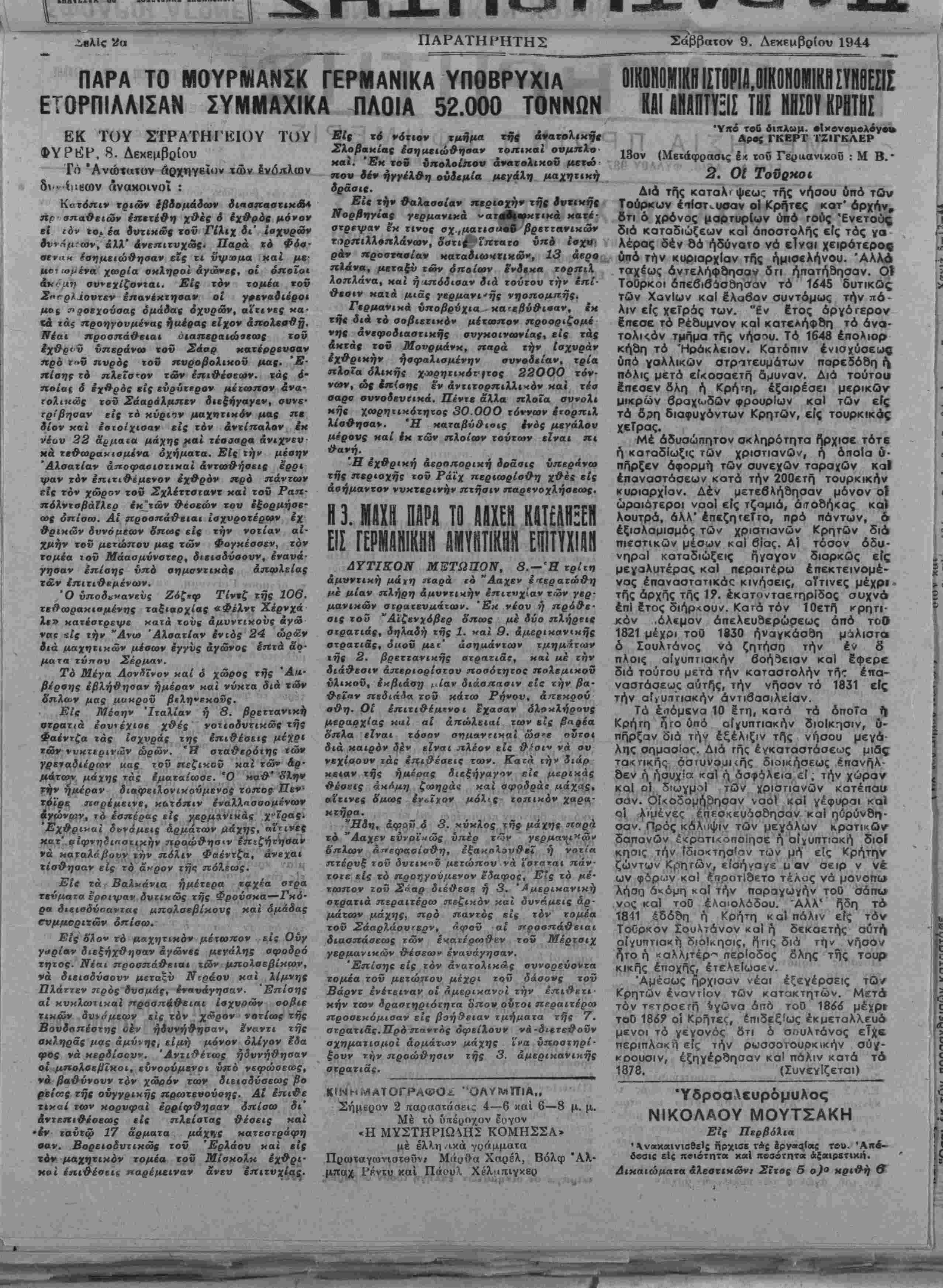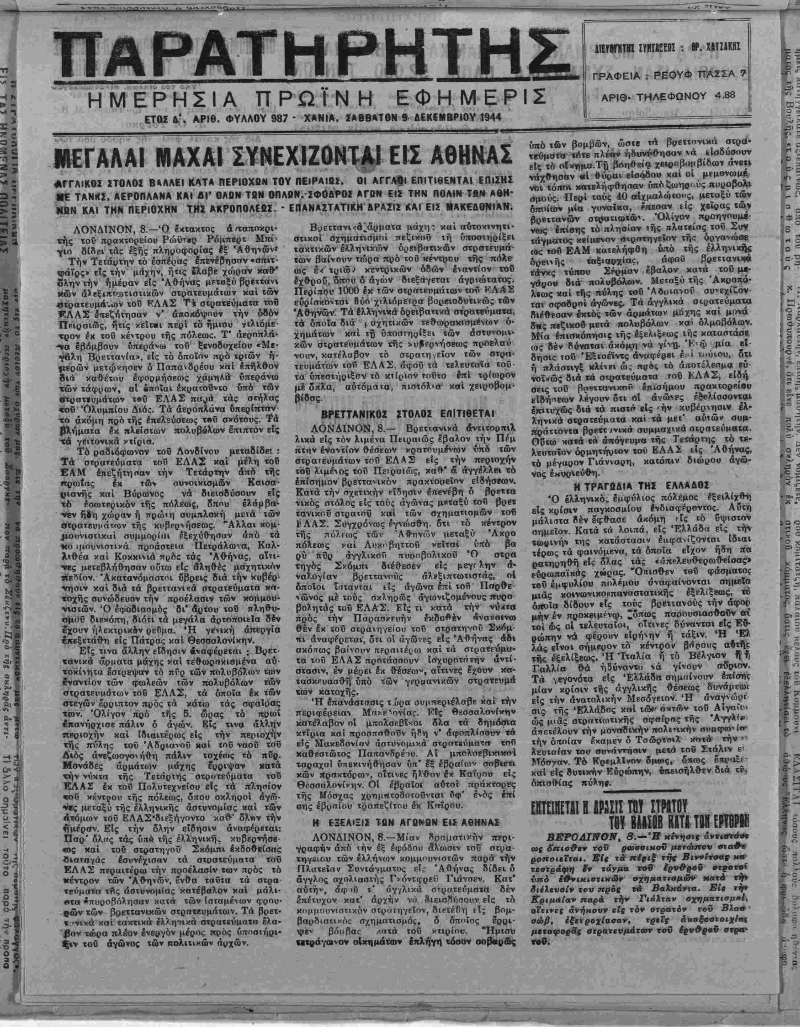ΕΤΟΖ *>'. ΑΡΙΘ. ΦΥΛΛΟΥ 987 - ΧΑΝΙΑ, ΣΑΒΒΑΤΟΝ 9- ΔΕΚΕΜΒΡΙΟΥ 1944