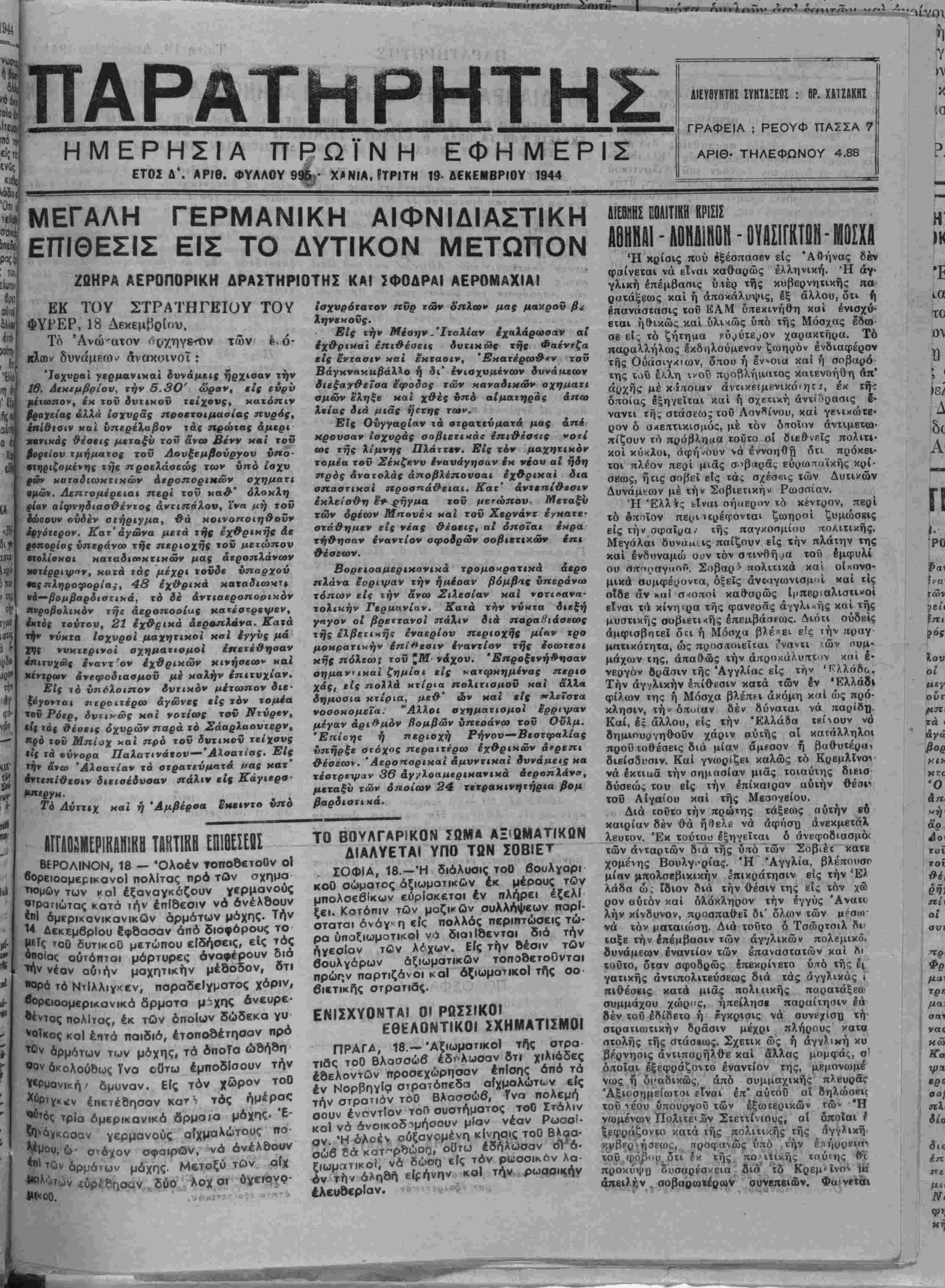 ΕΤΟΣ Δ'. ΑΡΙΘ. ΦΥΑΛΟΥ θ^- ΧΑΝΙΑ, ΪΤΡΙΤΗ 19 ΔΕΚΕΜΒΡΙΟΥ 1944
