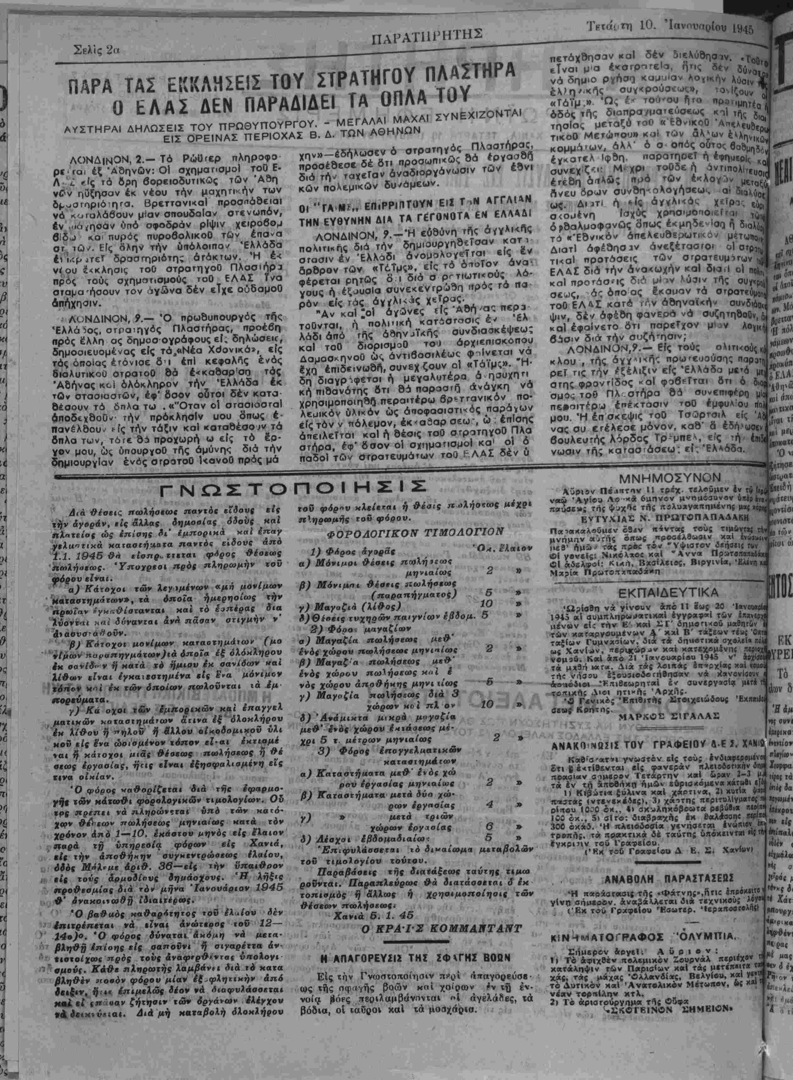 ΕΤΟΣ Δ'. ΑΡΙΘ. ΦΥΑΑΟΥ 1015 - ΧΑΝΙΑ, ΤΕΤΑΡΤΗ 10 ΙΑΝΟΥΑΡΙΟΥ 1945