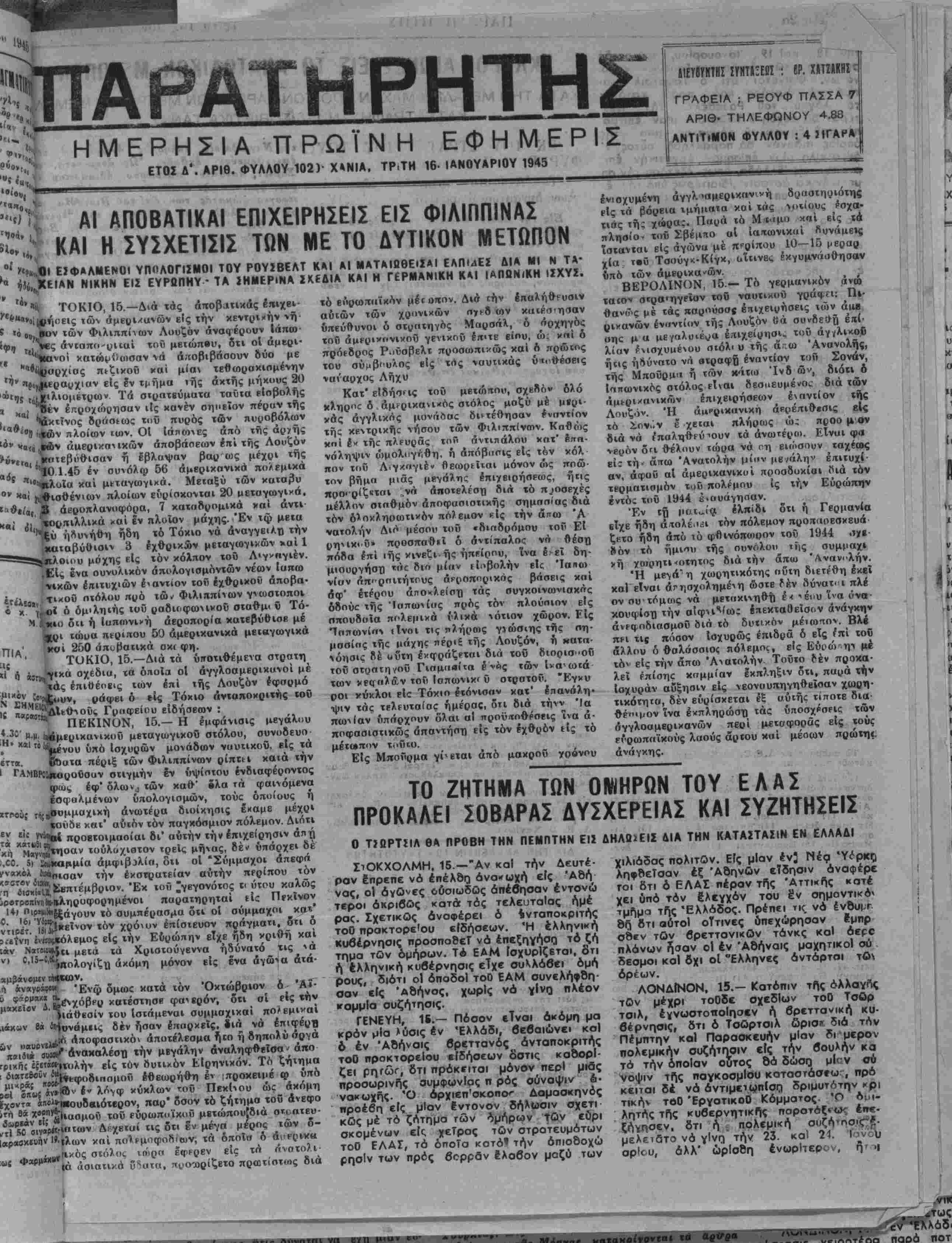 ΕΤΟΣ Δ'. ΑΡΙΘ. ΦΥΑΛΟΥ 102)- Χ»ΝΙΑ. ΤΡ.ΤΗ 16- ΙΑΝΟΥΑΡΙΟΥ 1945