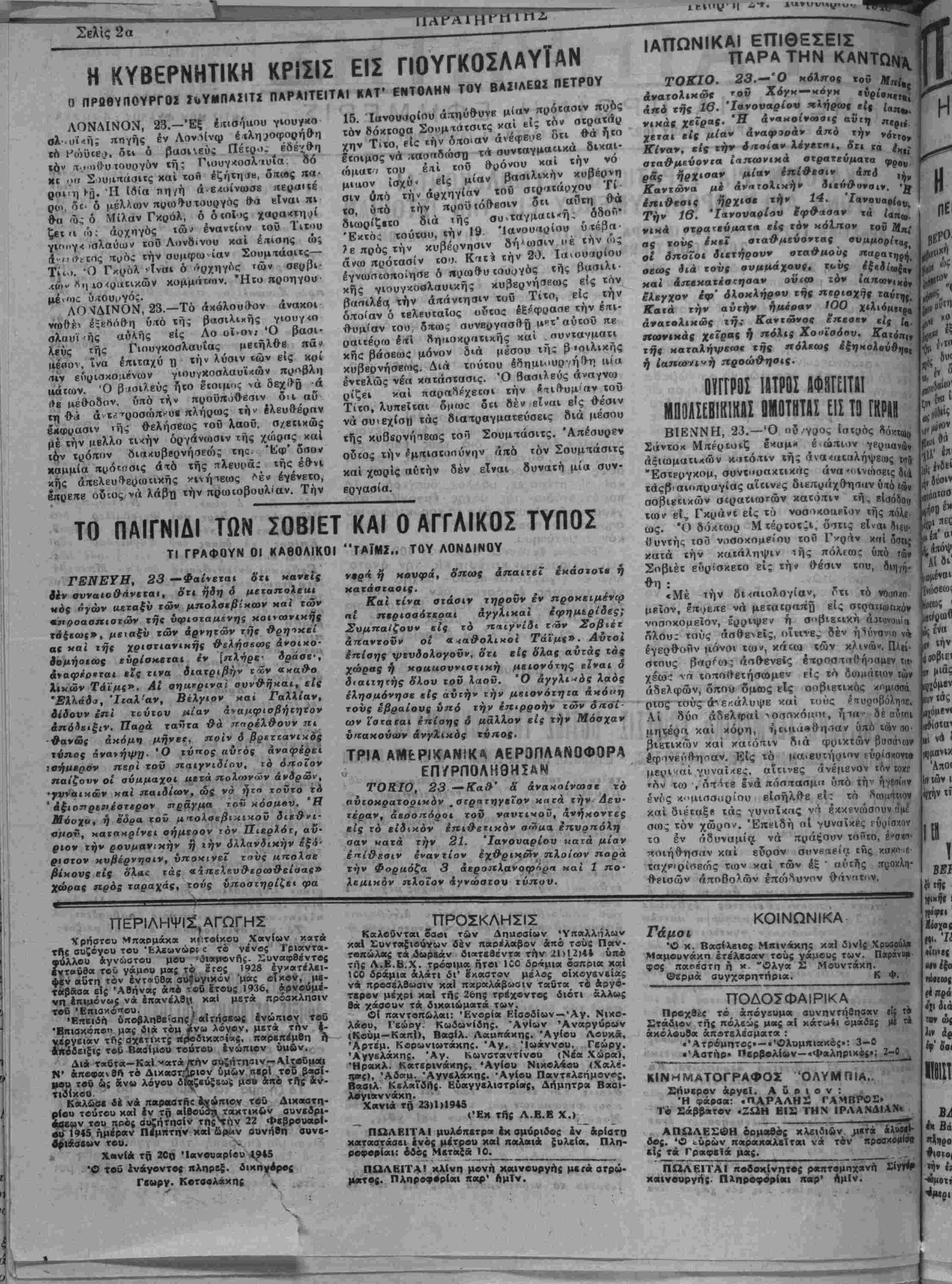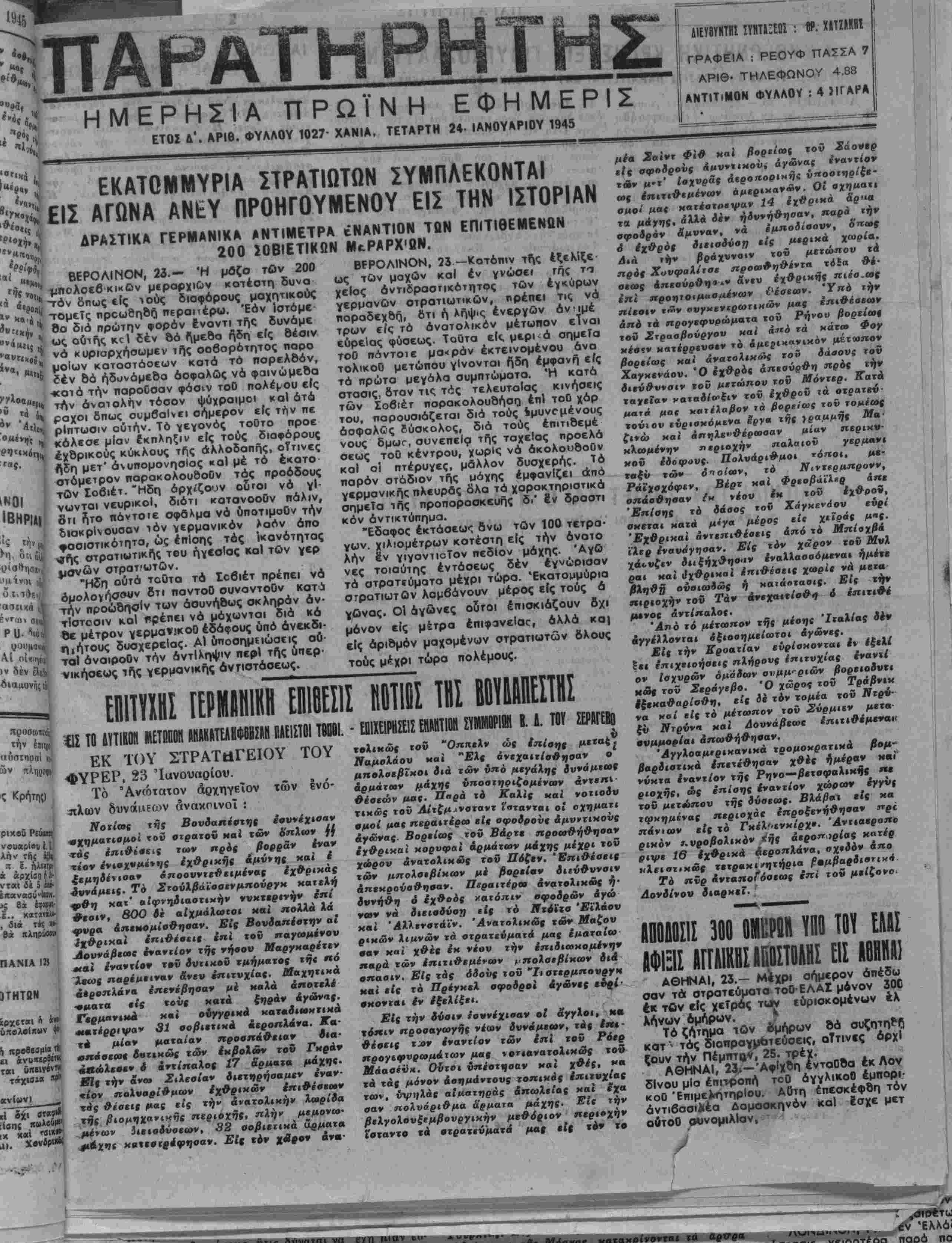 ΕΤΟΣ Δ*. ΑΡΙΘ. ΦΥΛΛΟΥ 1027- ΧΑΝΙΑ, ΤΕΤΑΡΤΗ 24 ΙΑΝΟΥΑΡΙΟΥ 1945