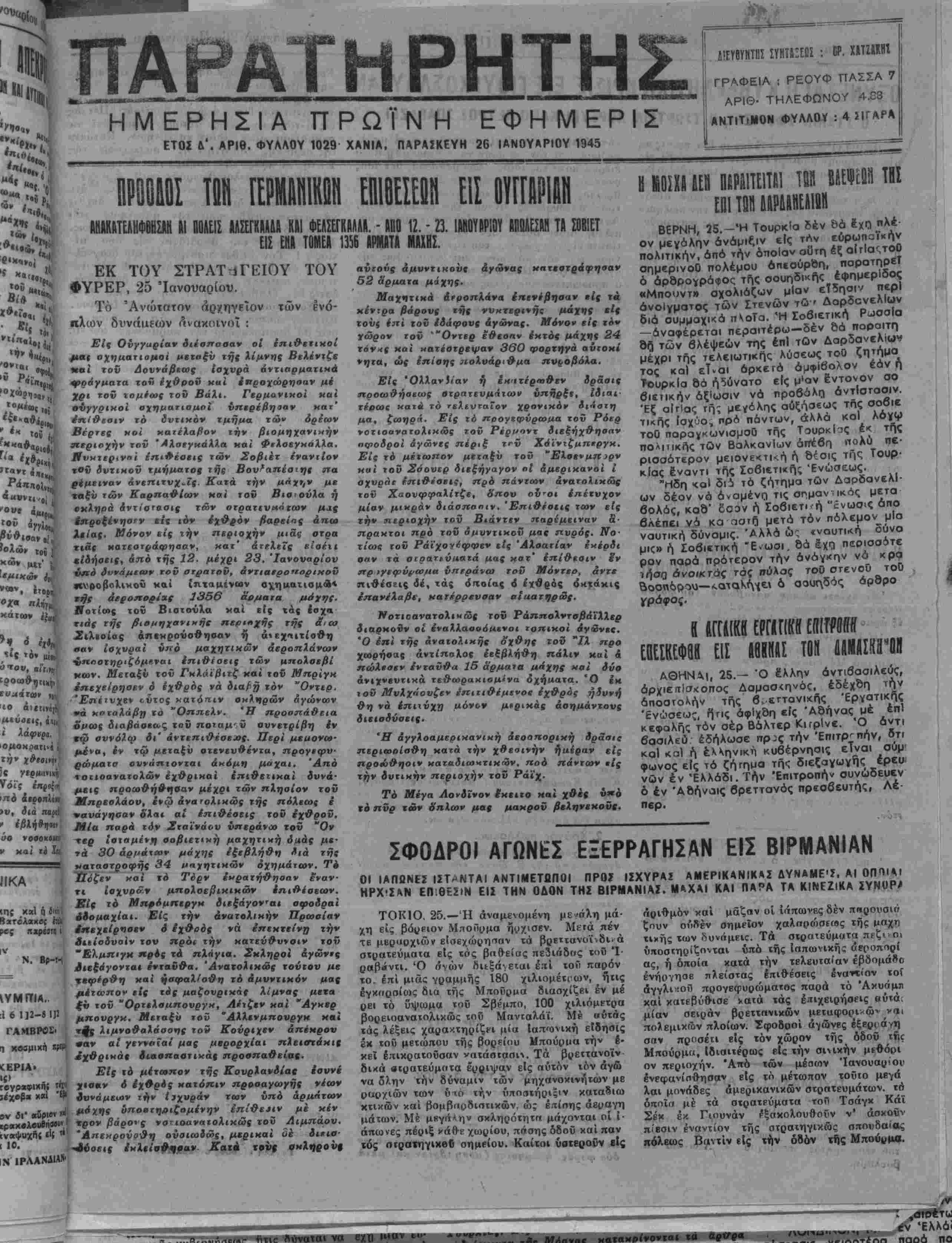 ». »■......ι» ι ιι ι— — μ———■—■<—— ——μ^—"ι——ι^———— ^■ βϊμηι»κ«· ΗΜΕΡΗΣΙΑ ΤΤΡΩΪΝΗ ΕΦΗΜΕΡΙΣ ΕΤΟΣ Δ'. ΑΡΙΘ. ΦΥΛΛΟΥ 1029 ΧΑΝΙΑ, ΠΑΡΑΪΚΕΥΗ 26 ΙΑΝΟΥΑΡΙΟΝ 1945 Δ»ΕΥΒΥΗΤΗΧ ΣΥΗΤίΐΕΟΪ : ΟΡ. ΧΑΤΖΑΚΠ1 ΓΡΑΦΕΙΑ ; ΡΕΟΥΦ ΠΑΣΣΑ 7 ΑΡΙΘ· ΤΗΛΕΦΟΝΟΥ 4.33 ΑΝΤΙΤιΜΟΝ ΦΥΛΛΟΥ : 4 5ΙΓΑΡΑ 'ίΐιΐ·; ;*»ί<«» βαβν,,.,Ι , """ <<«.«, Ι8* 'ηΚ Ρυβιβον,,'^ Όλω» ΐο{ ; "ώ» ιμτ,' !, 'εμιχώ, (ν »«·». .το;» ·«" «<<ίϊκ, κατ»» {{^ *·, ά Η "5 *0> μίκ
