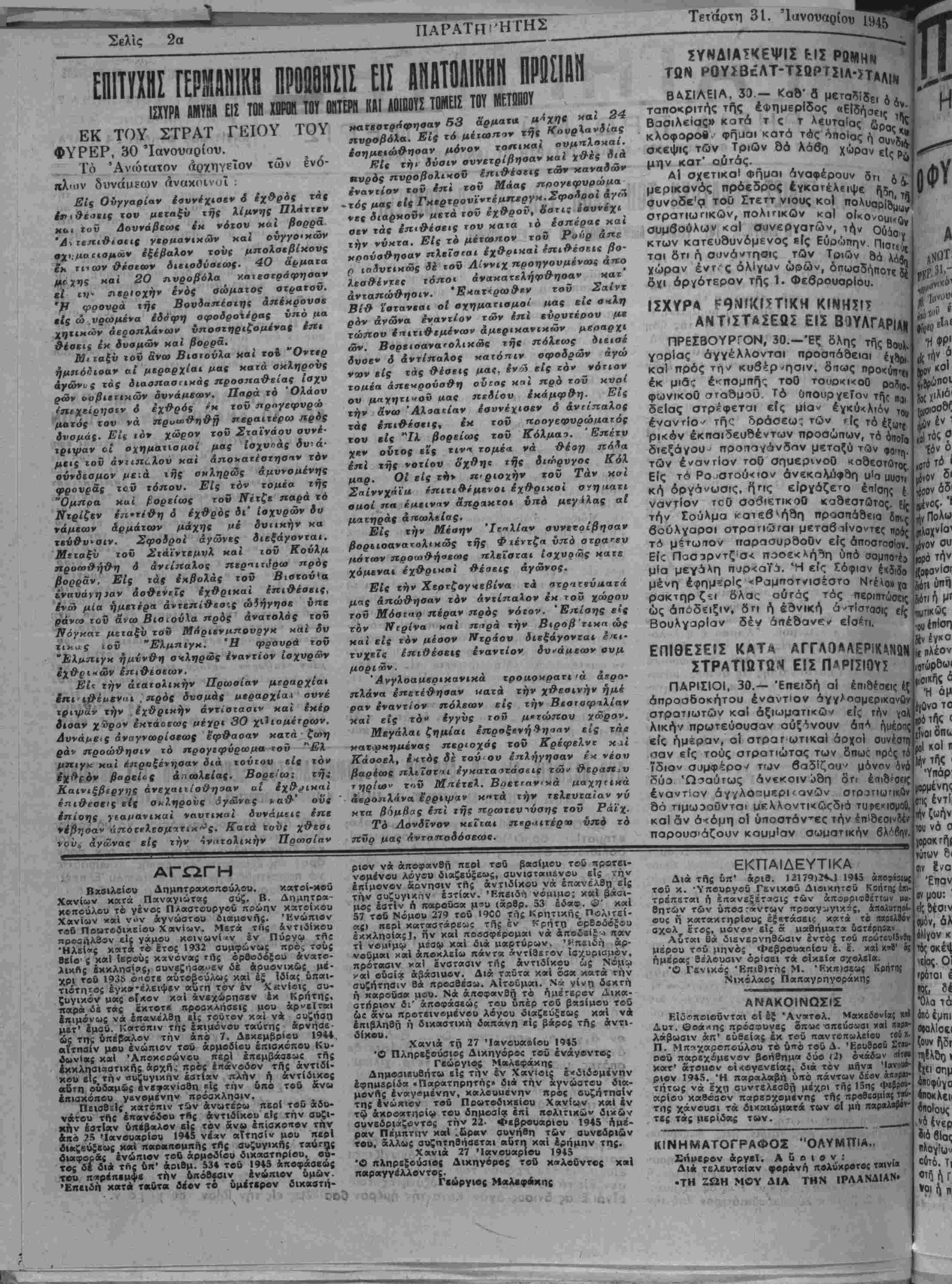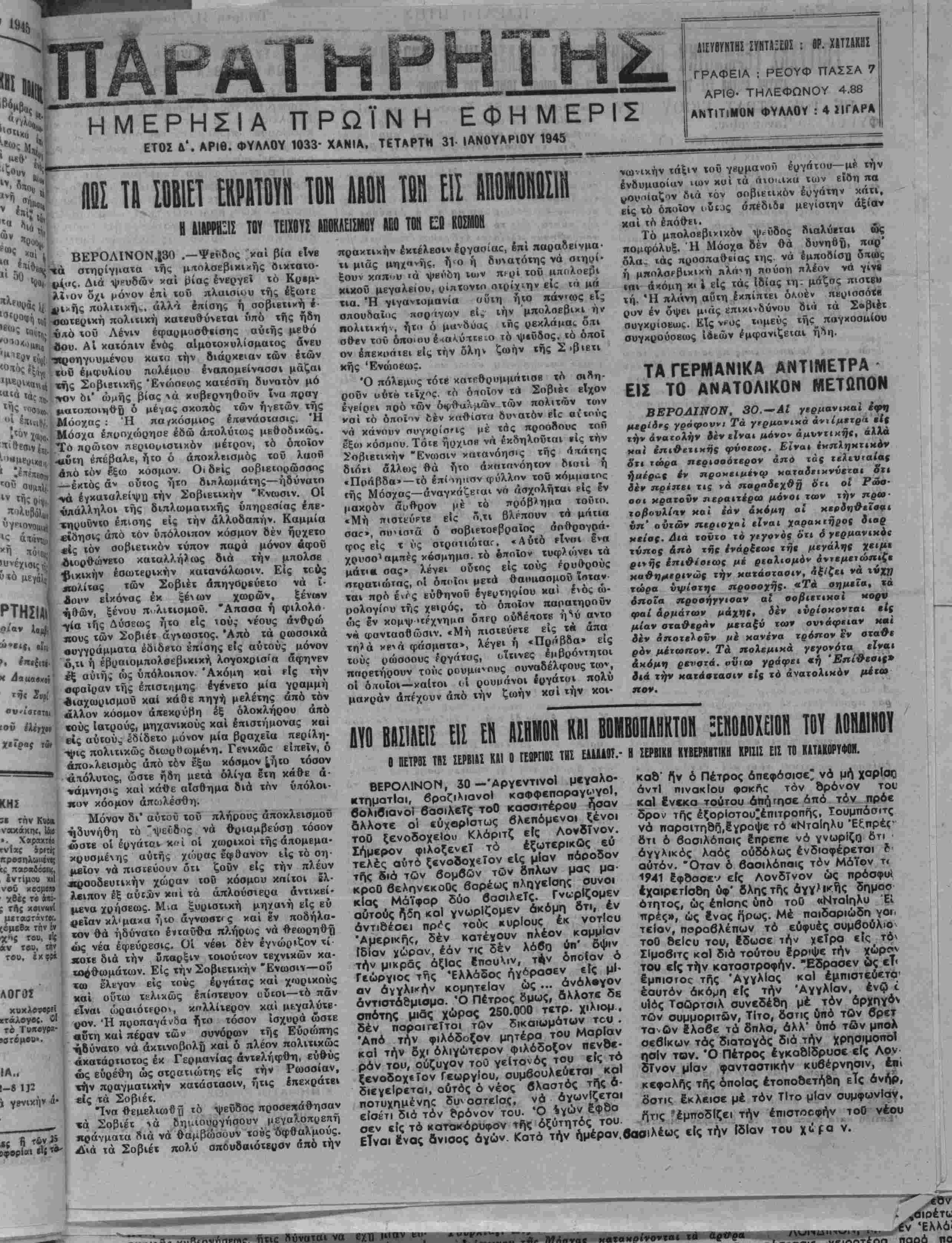 ΕΤΟΣ Δ*. ΑΡΙΘ. ΦΥΛΛΟΥ 1033- ΧΑΝΙΑ, ΤΕΤΑΡΤΗ 31 ΙΑΝΟΥΑΡΙΟΥ 1945