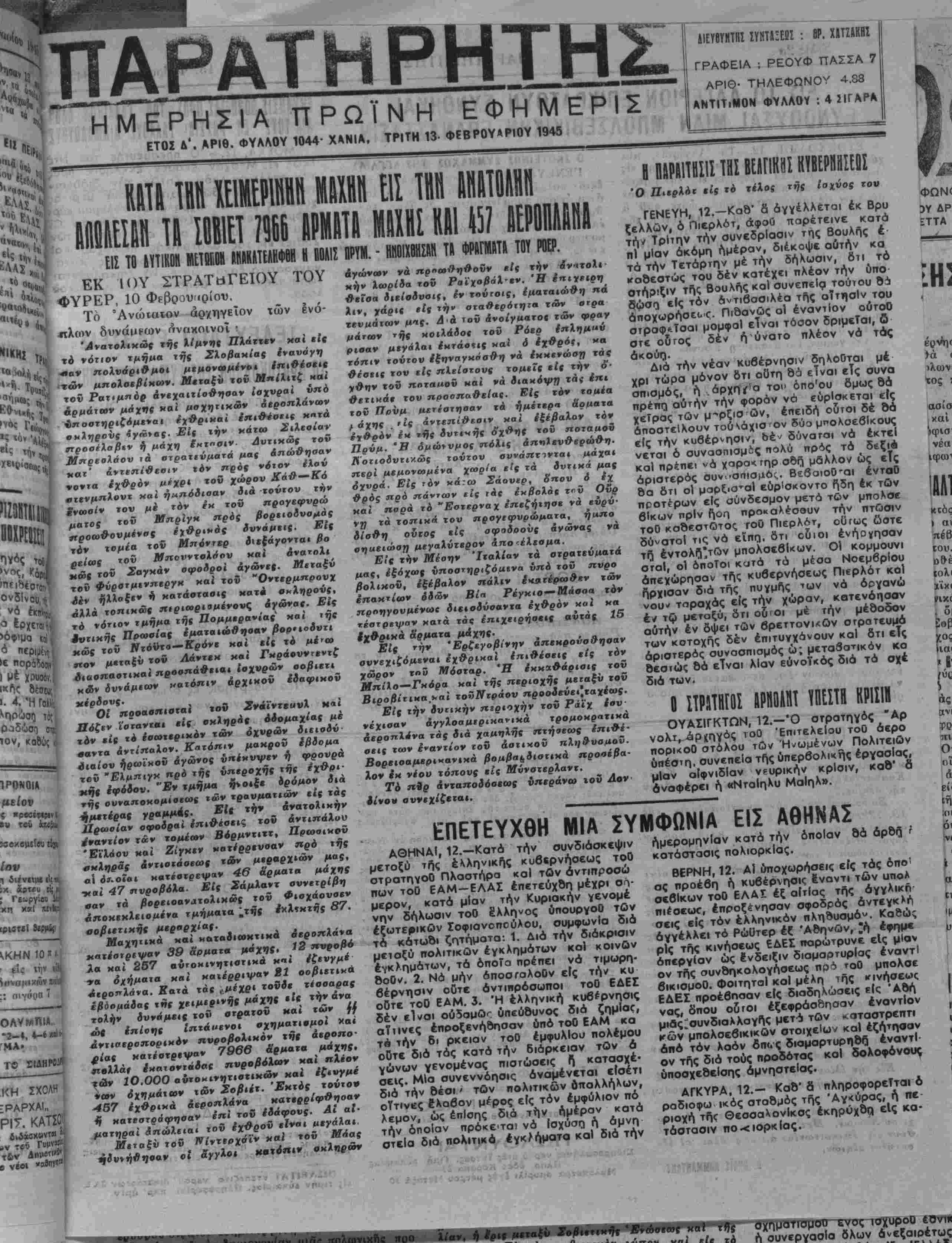 ΕΤΟΣ Δ*. ΑΡΙΘ. ΦΥΛΛΟΥ 1044- ΧΑΝΙΑ, ΤΡΙΤΗ 13- ΦΕΒΡΟΥΑΡΙΟΝ 1945