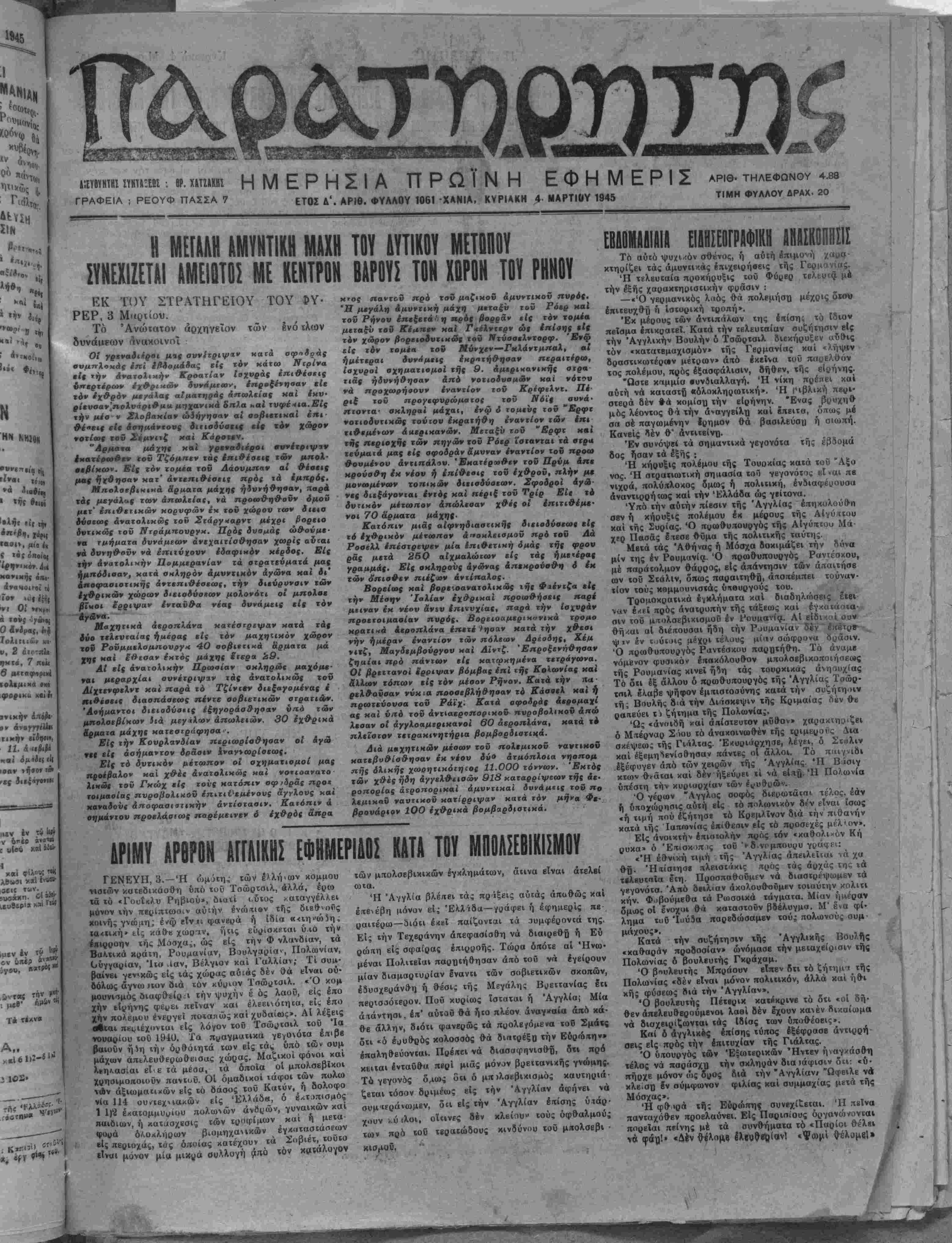 ΡΕΟΥΦ ΠΑΣΣΑ 7 ΕΤ0Σ Δ'. ΑΡΙΘ. ΦΥΛΛΟΥ 1061 ΧΑΝΙΑ. ΚΥΡΙΑΚΗ 4 ΜΑΡΤΙΟΥ 1945