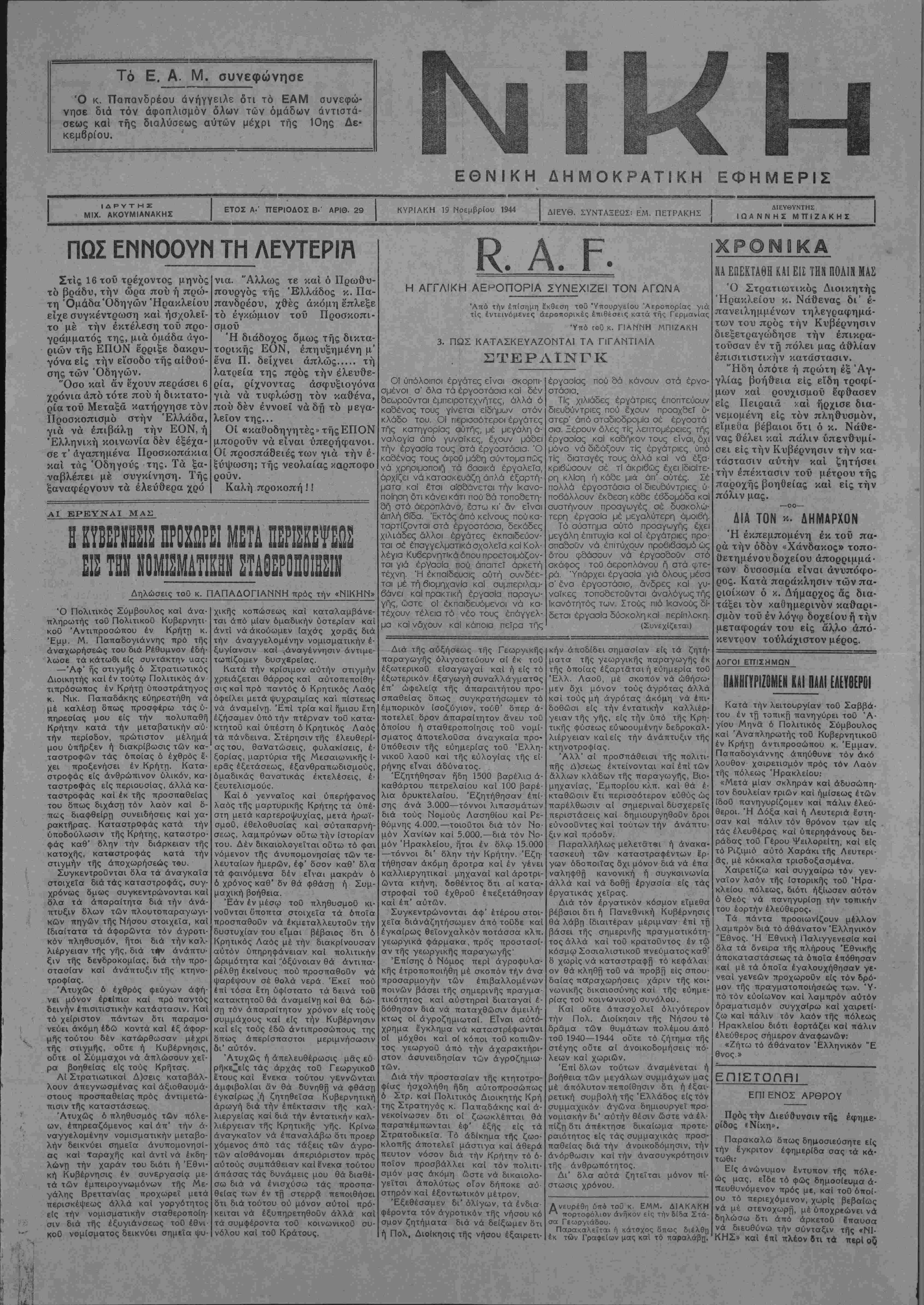 Ό κ. Παπανδρέου ανήγγειλε ότι τό ΕΑΜ συνεφώ¬