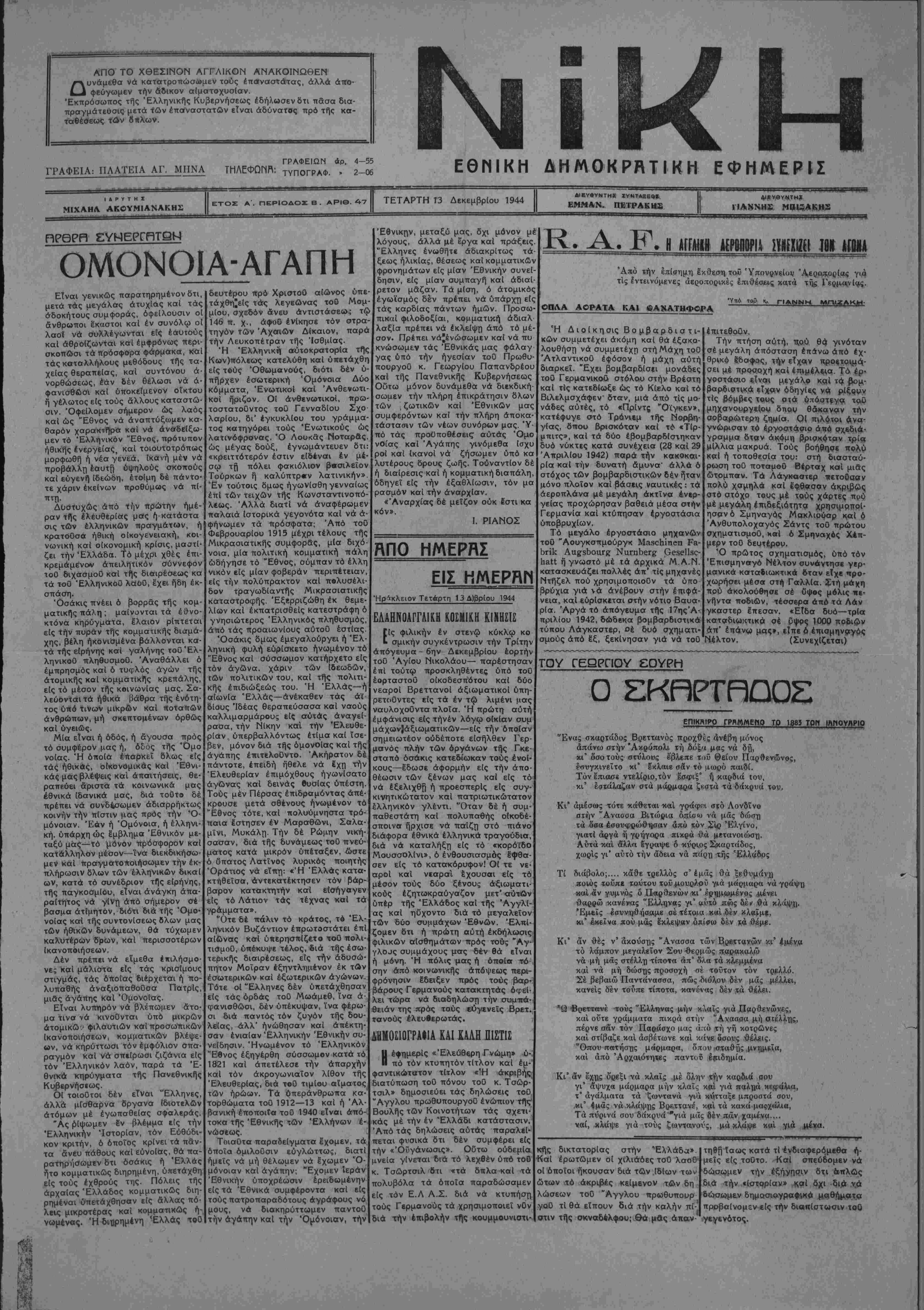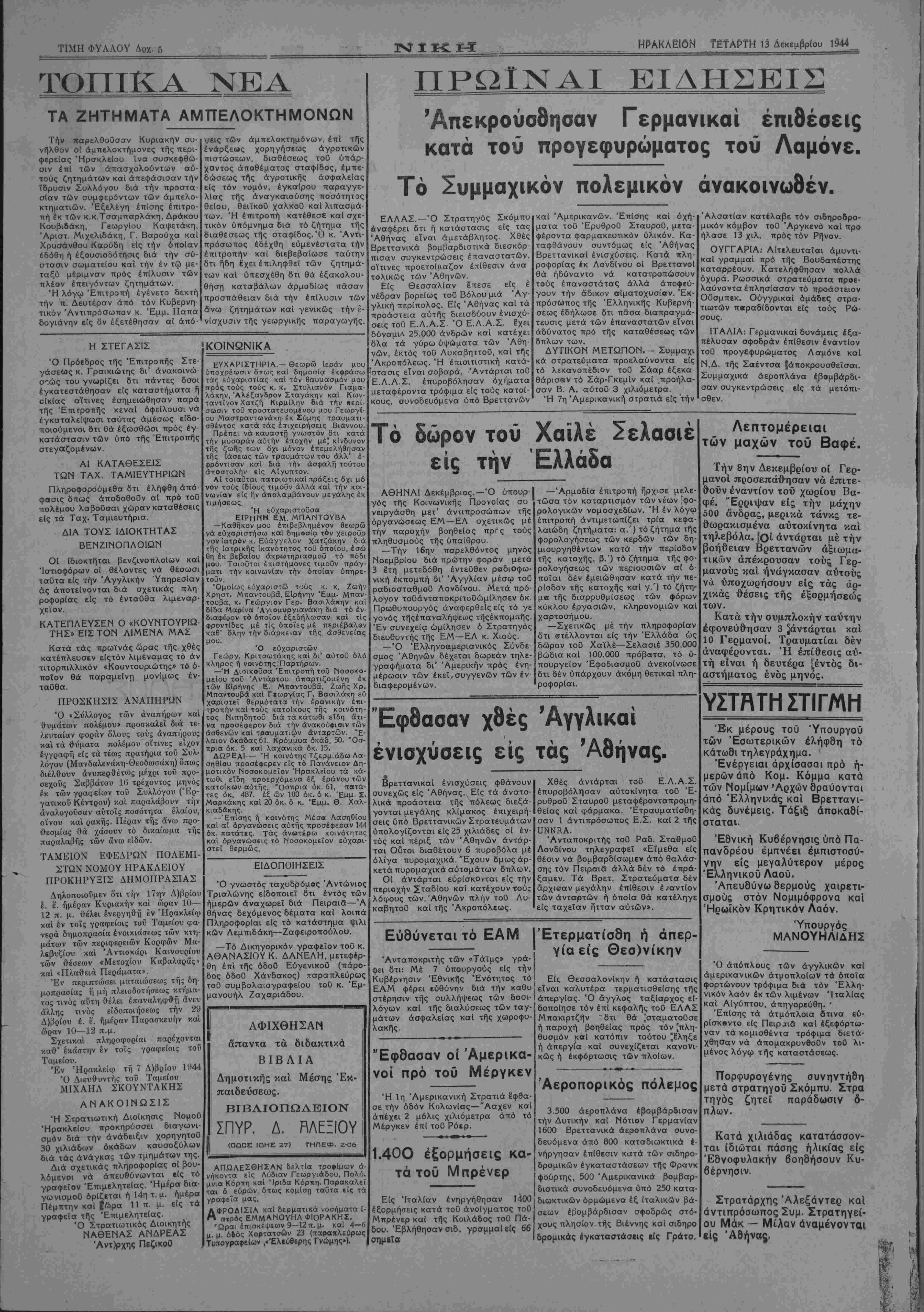 ΤΕΤΑΡΤΗ Ϊ3 Δεκεμβριού 1944