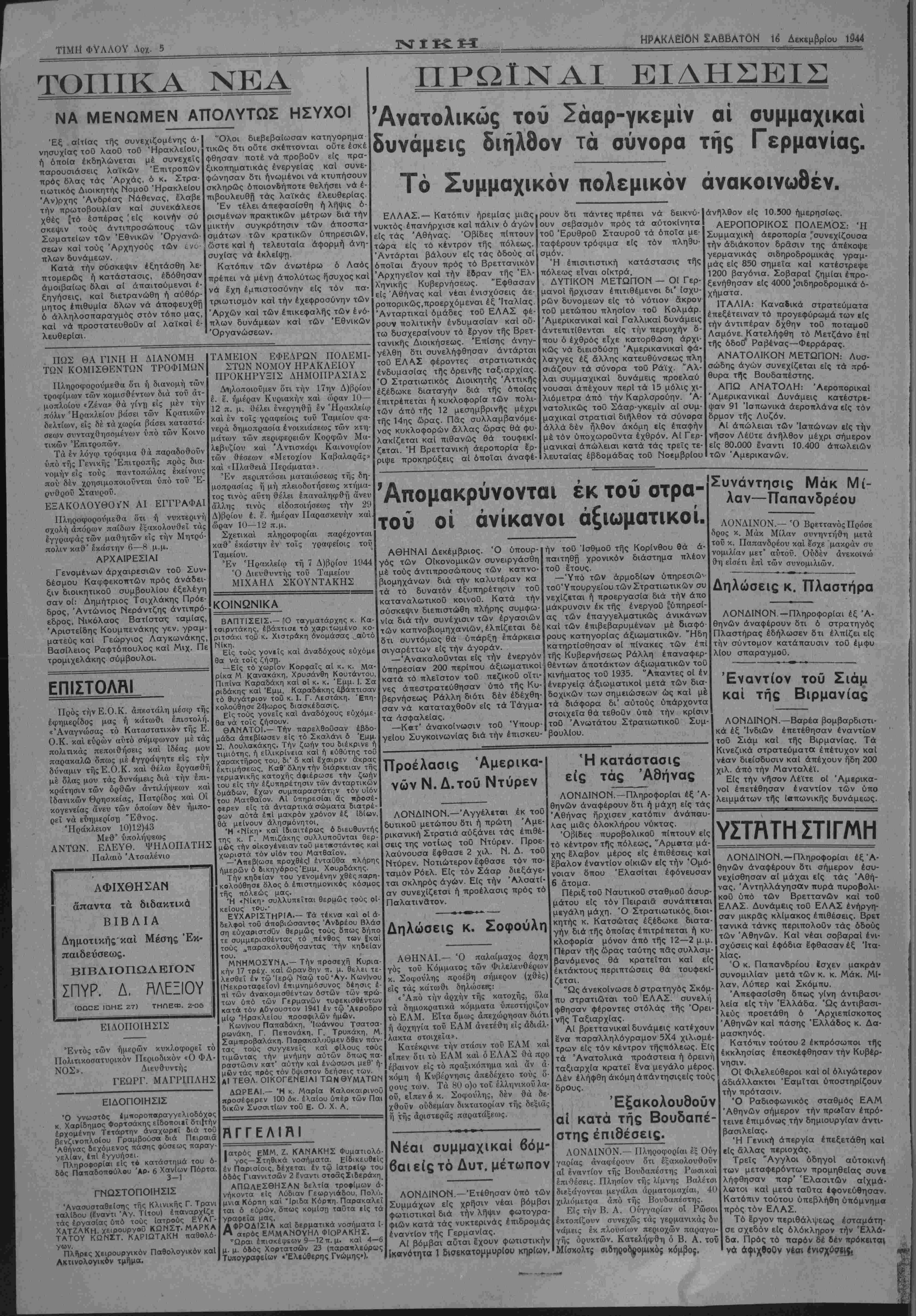 ΣΑΒΒΑΤΟΝ 16 Δεκεμβριού 1944