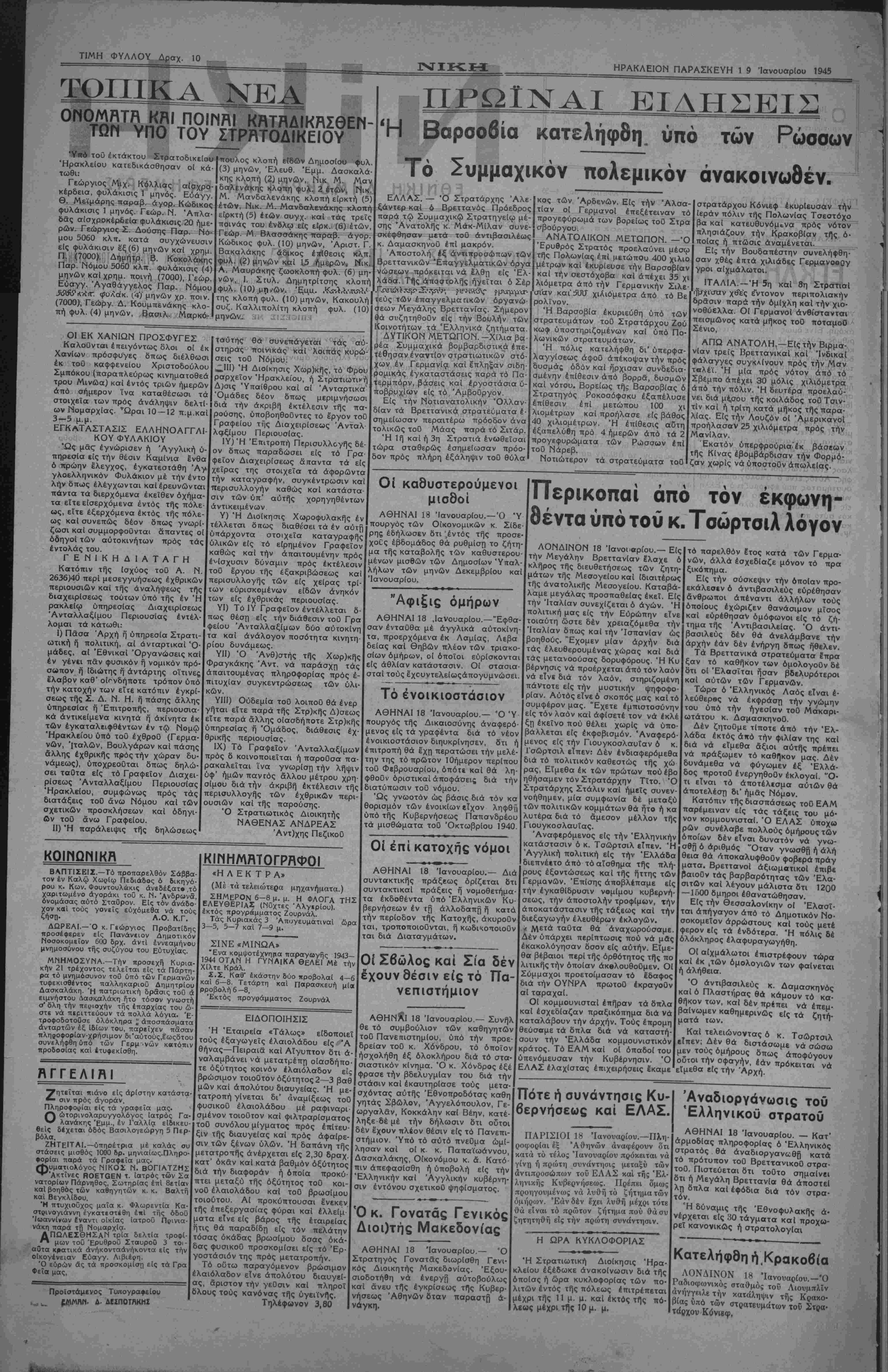 ΠΑΡΑΣΚΕΥΗ 19 ΊανουαρΙου 1945