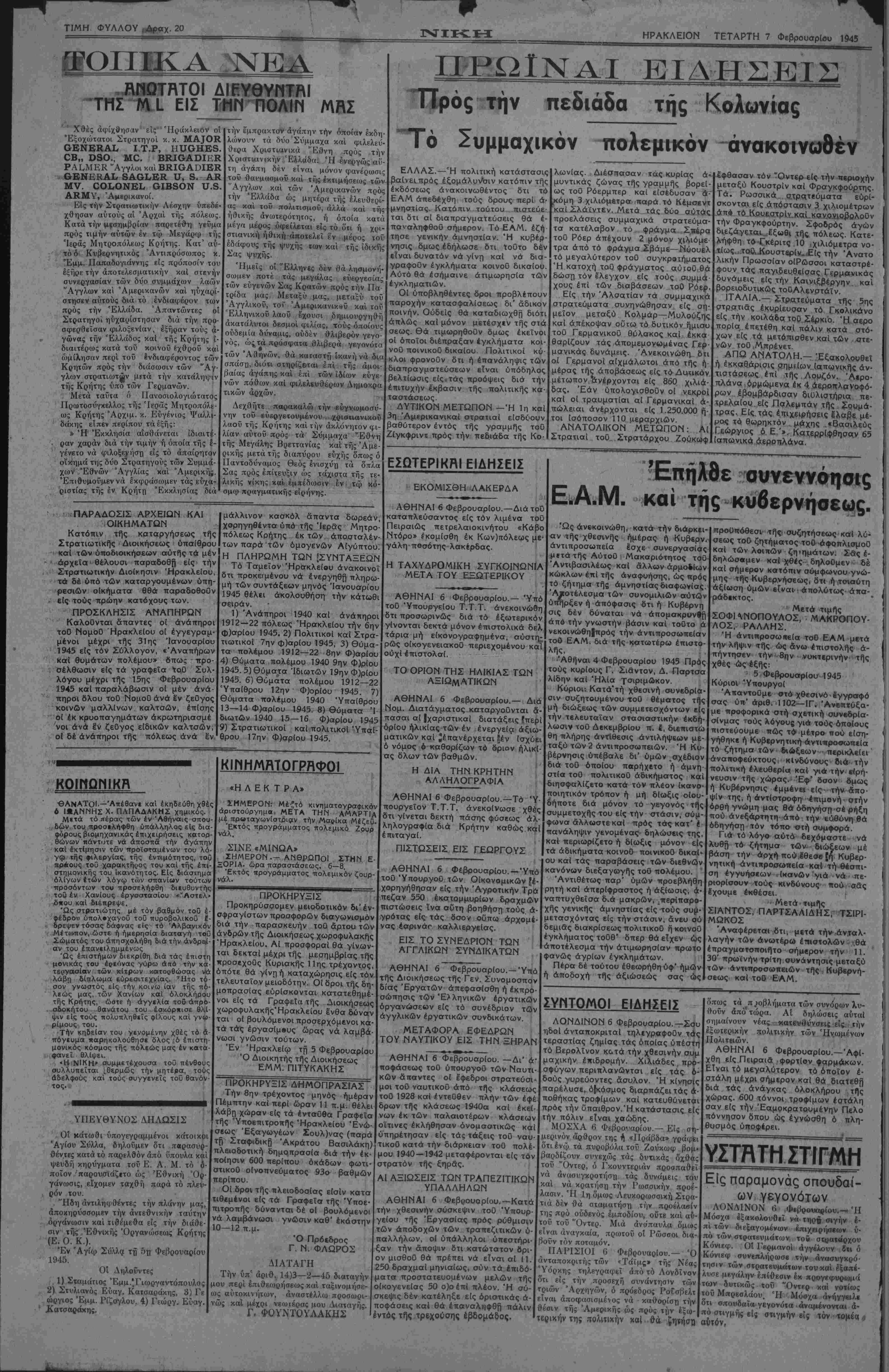 ΤΕΤΑΡΤΗ 7 Φεβρουαρίου 1945