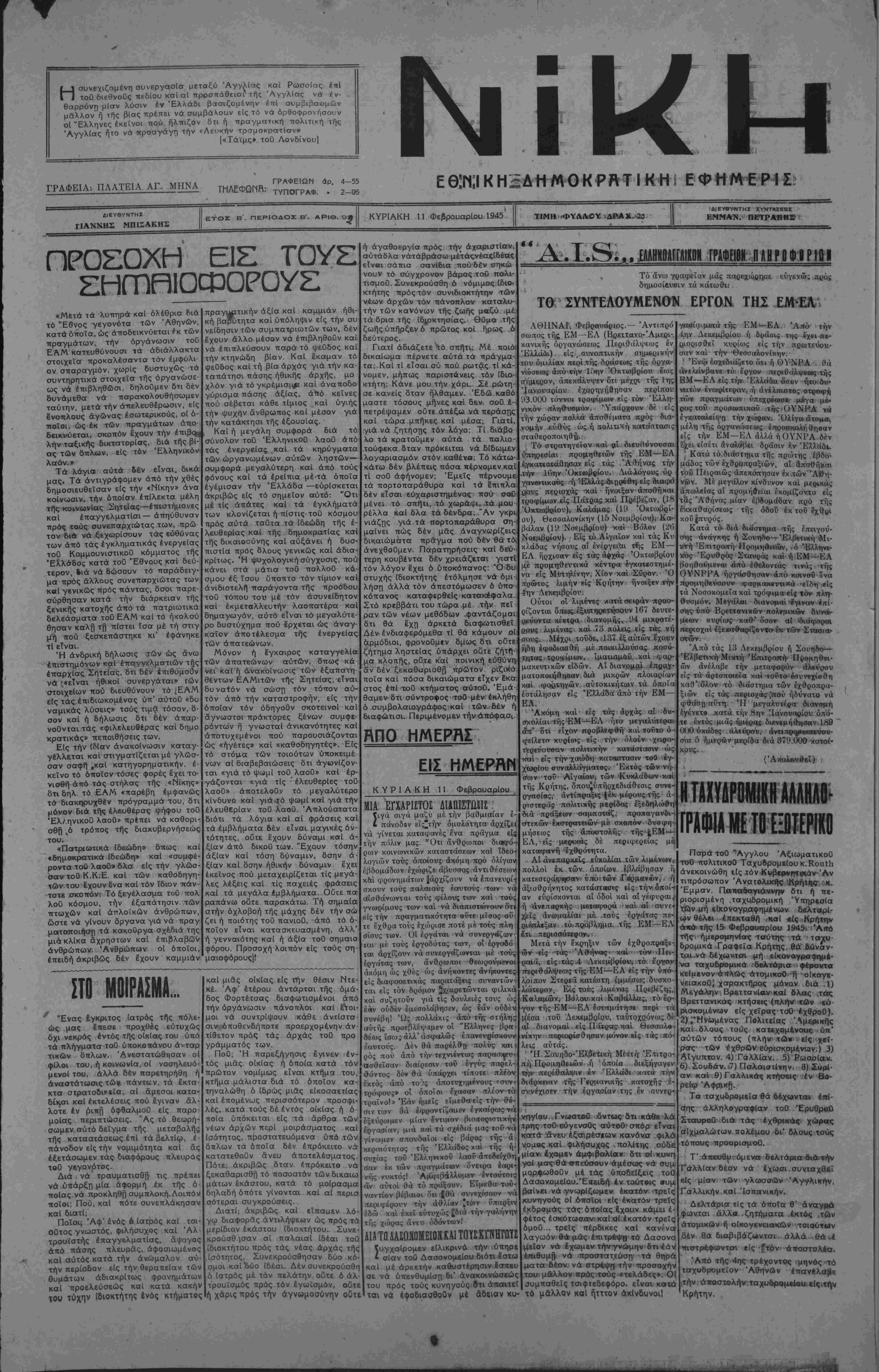 δημοσιευθείσαν είς την «Νίκην» άνα
