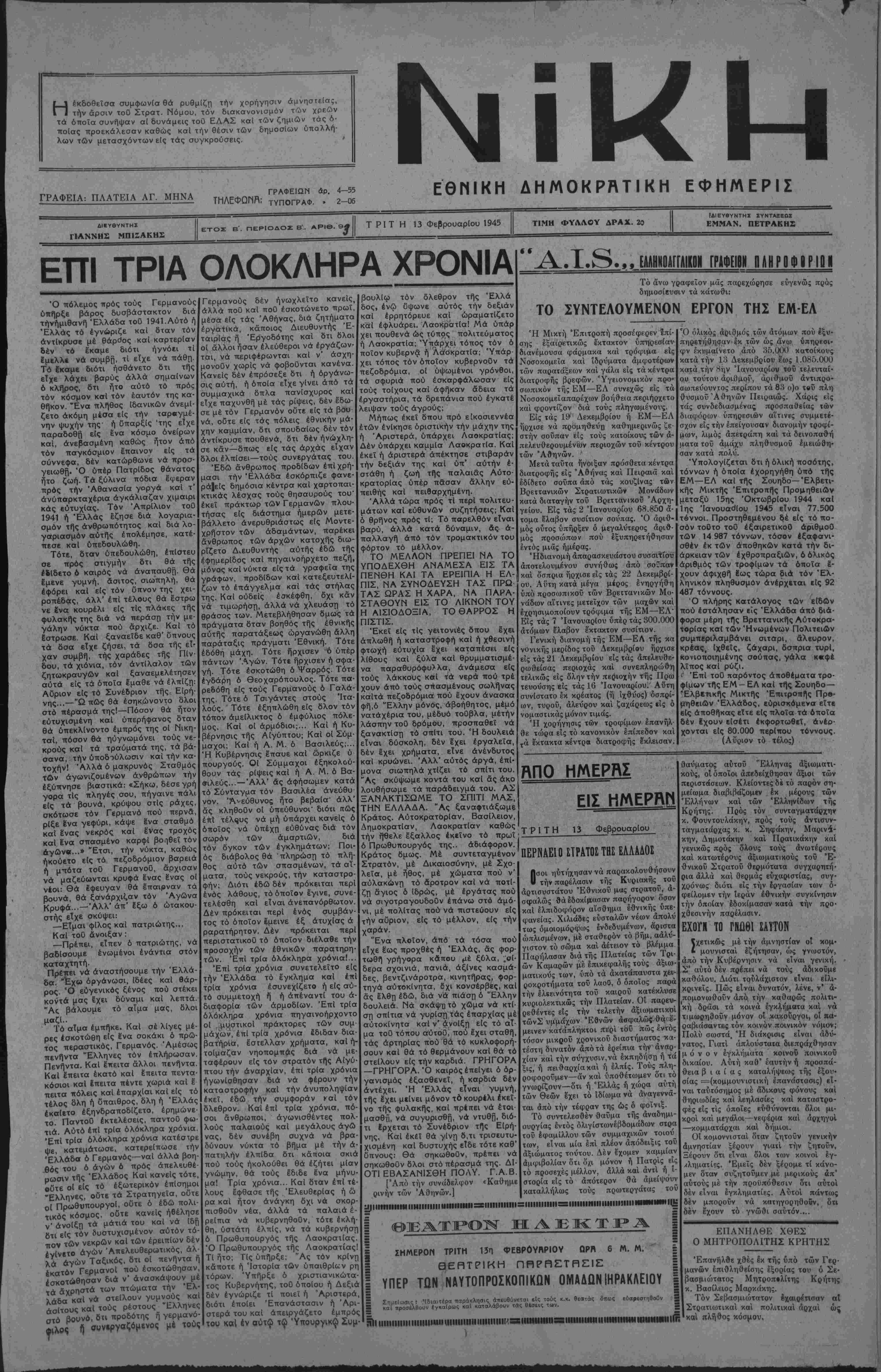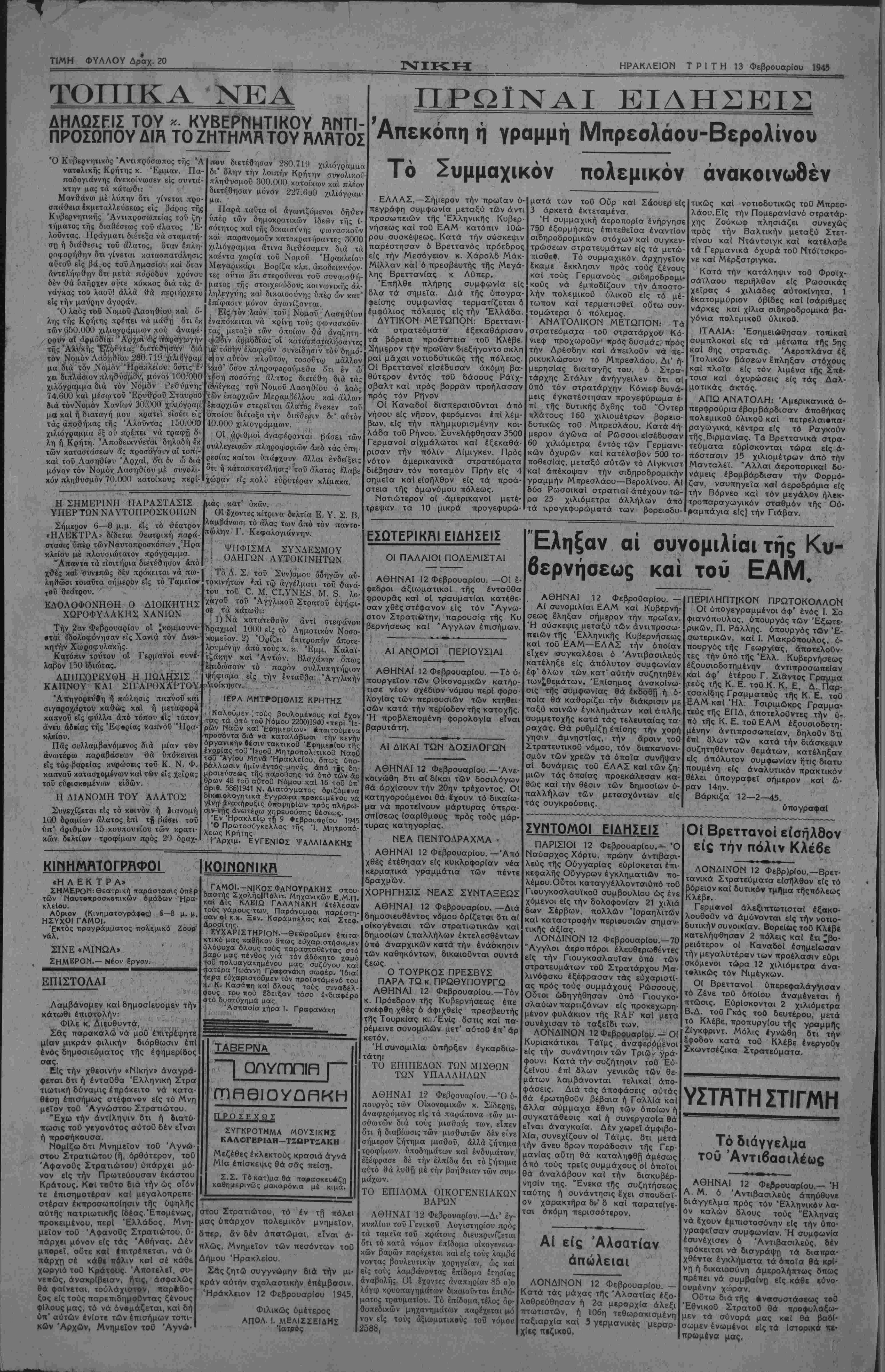 ΗΡΑΚΛΕΙΟΝ ΤΡΙΤΗ 13 ΦεβρουαρΙου 1943