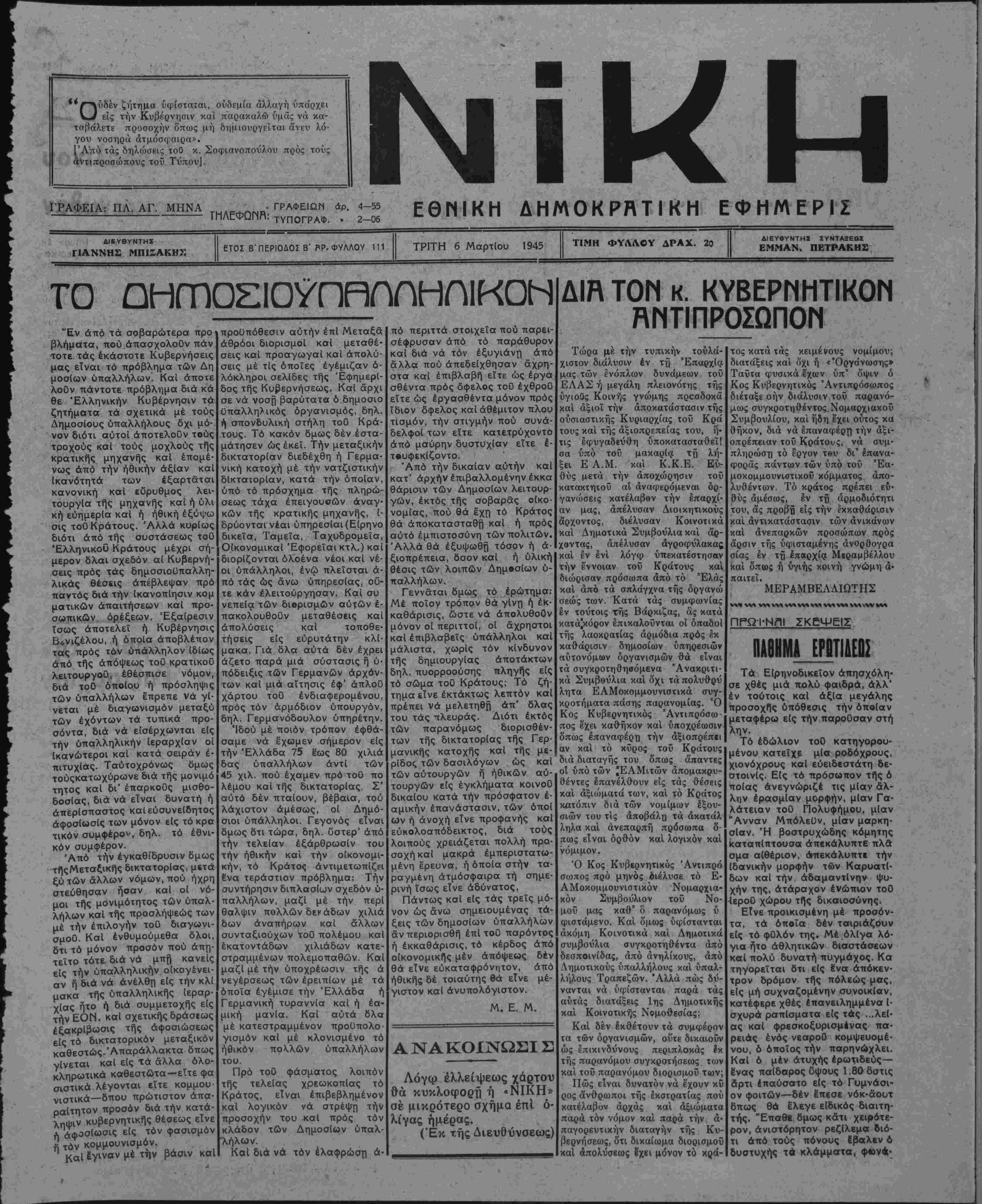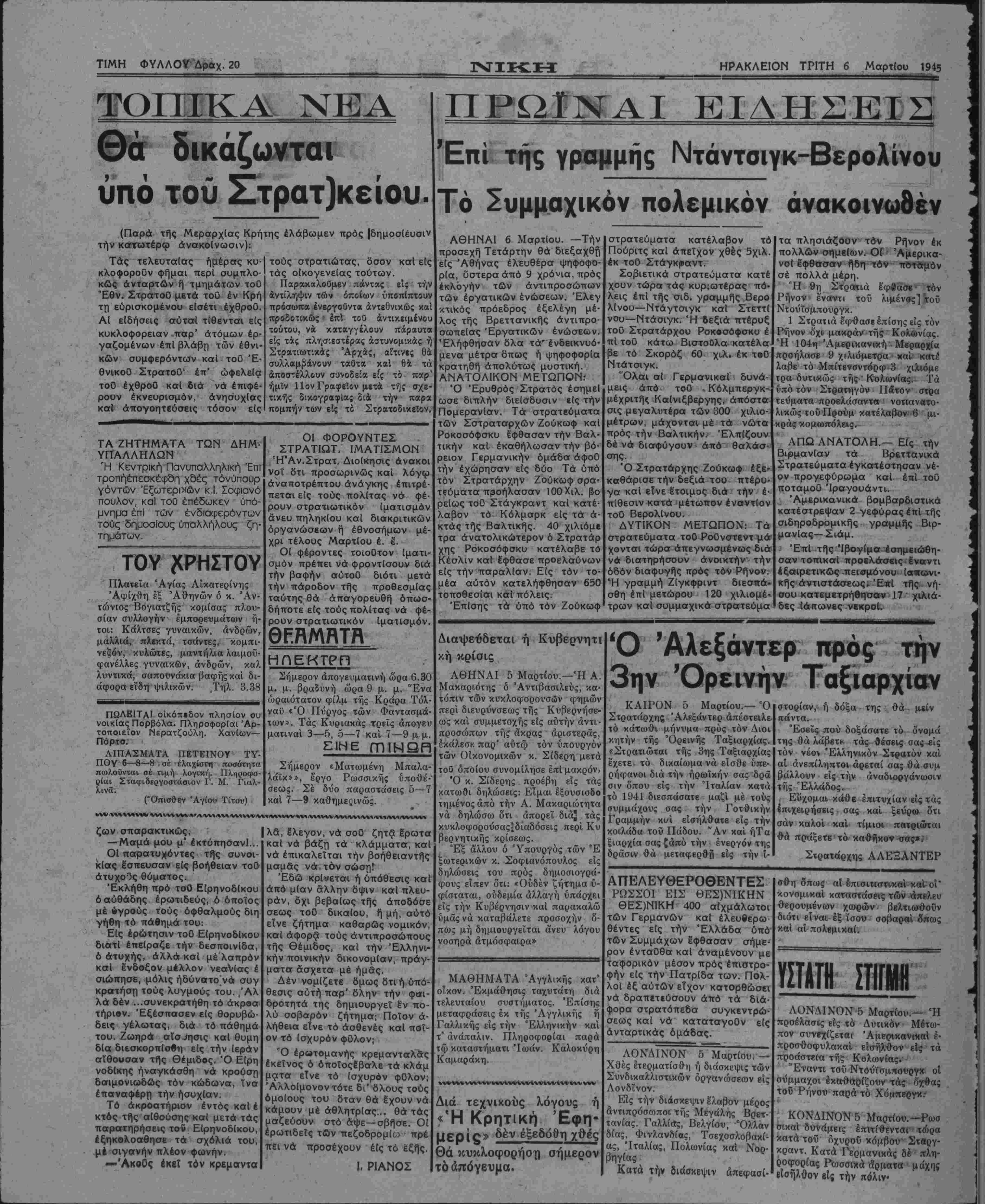ΤΡΙΤΗ 6 ΜαρτΙου 1945