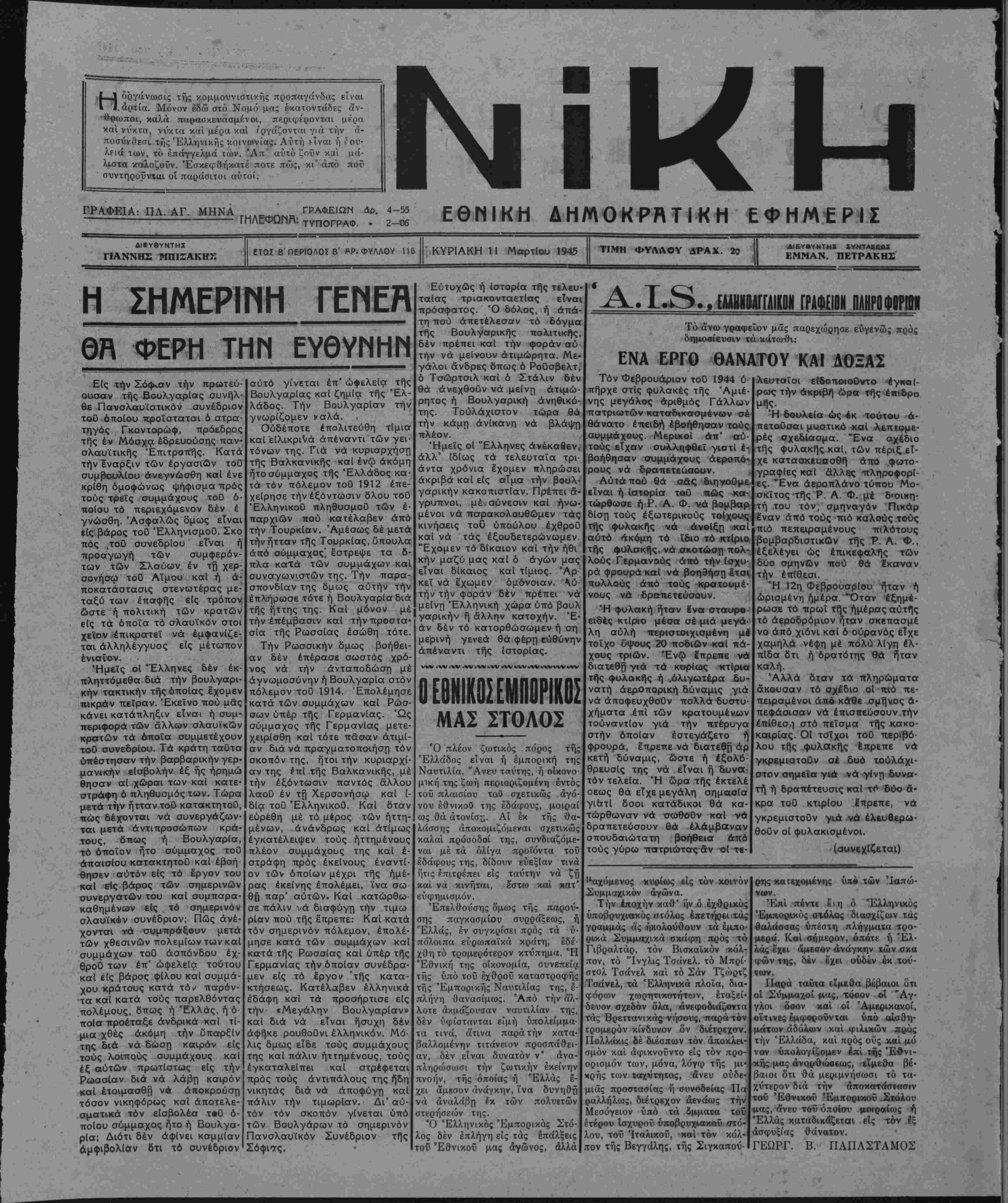 " ΚΥΡΙΑΚΗ Π Μσρτίου 1945 ΤΙΜΗ ΦΥΛΛΟΥ Λ1»ΛΧ. 20