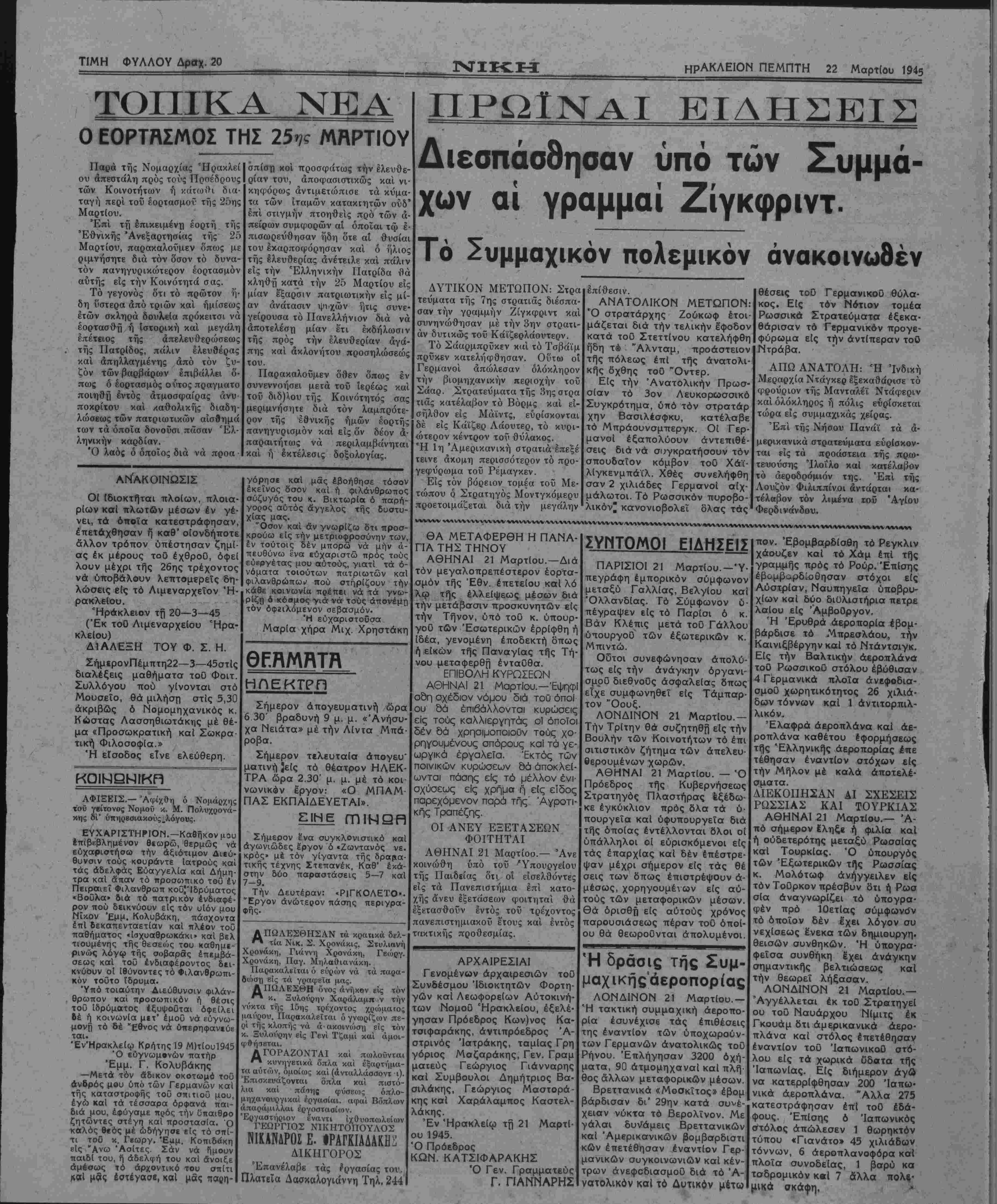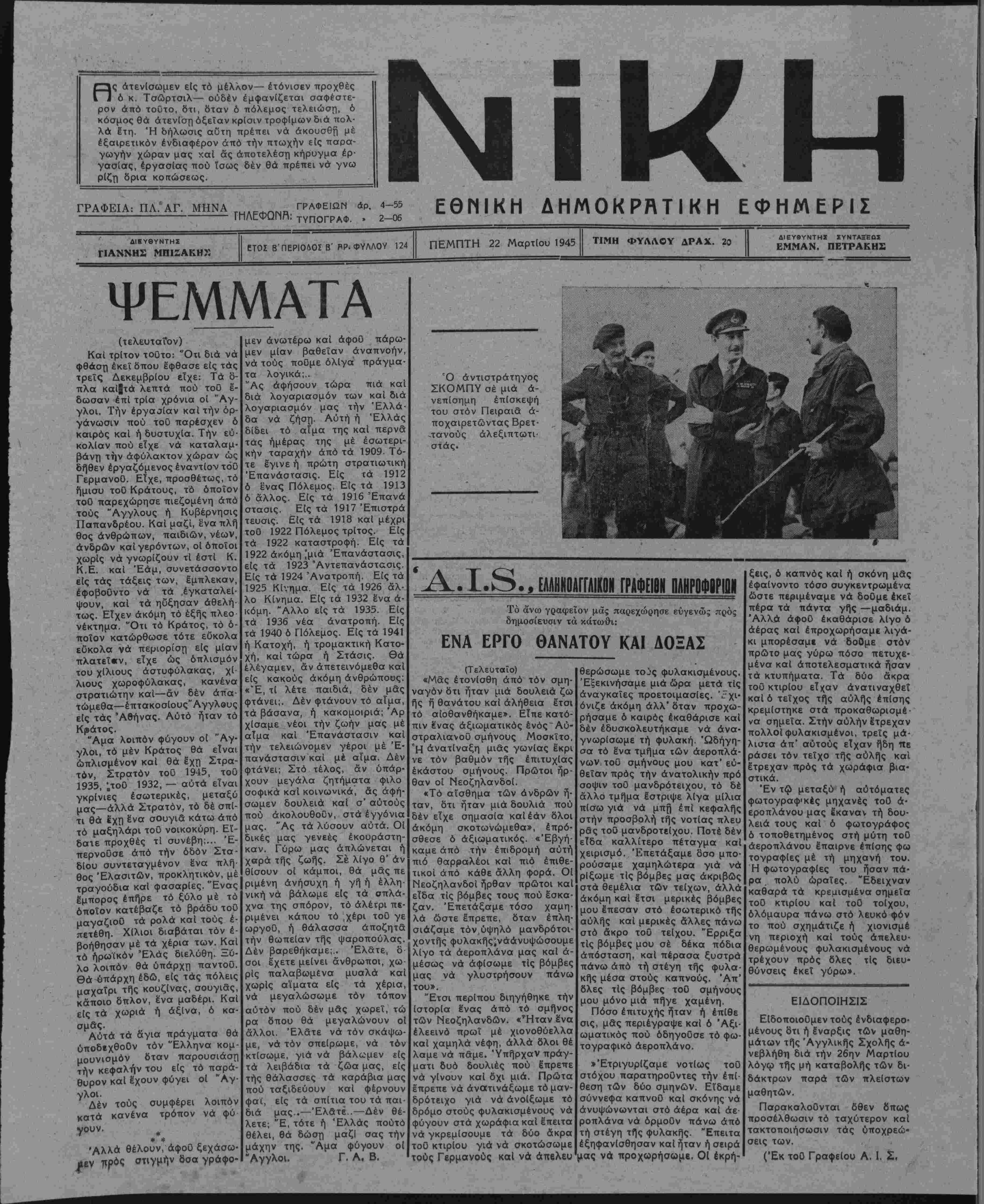 ΕΤΟΣ ΒΠΕΡΙΟΛΟΣΒ'ΡΡ.ΦΥΛΛΟΥ 124 ΠΕΜΠΤΗ 22 Μαρτίου 1945