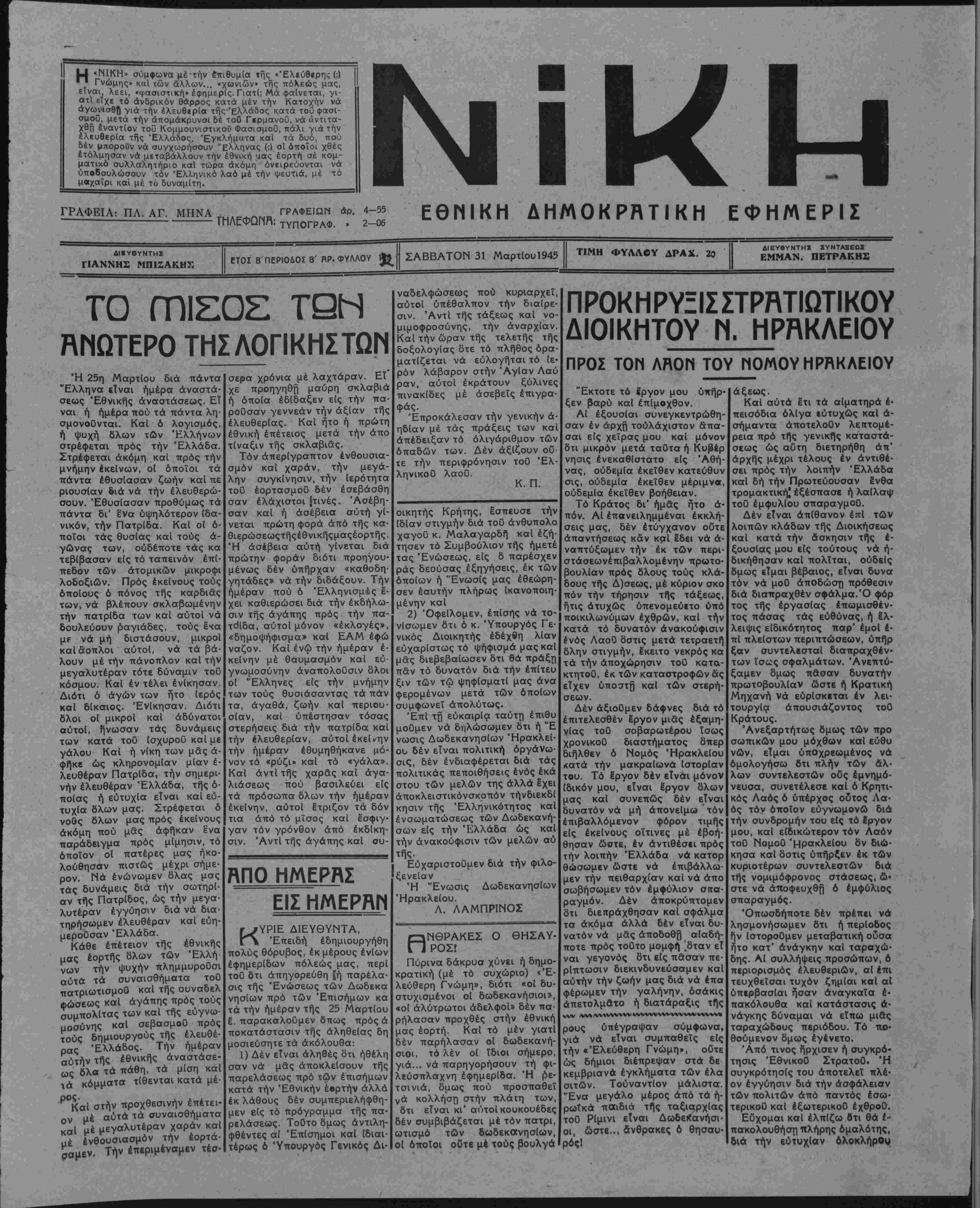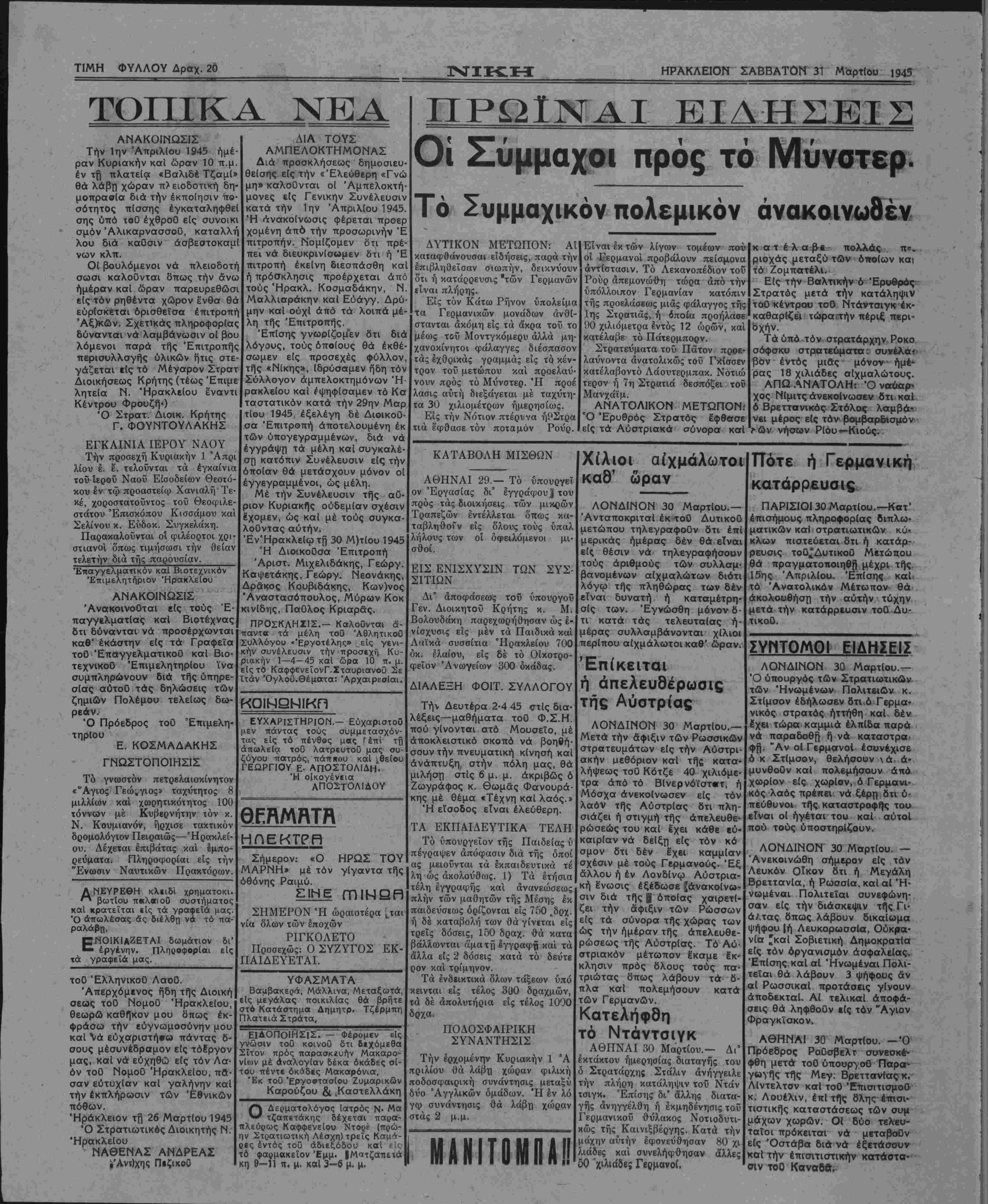 ΗΡΑΚΛΕΙΟΝ ΣΑΒΒΑΤΟΝ 31 Μαρτίου 1943