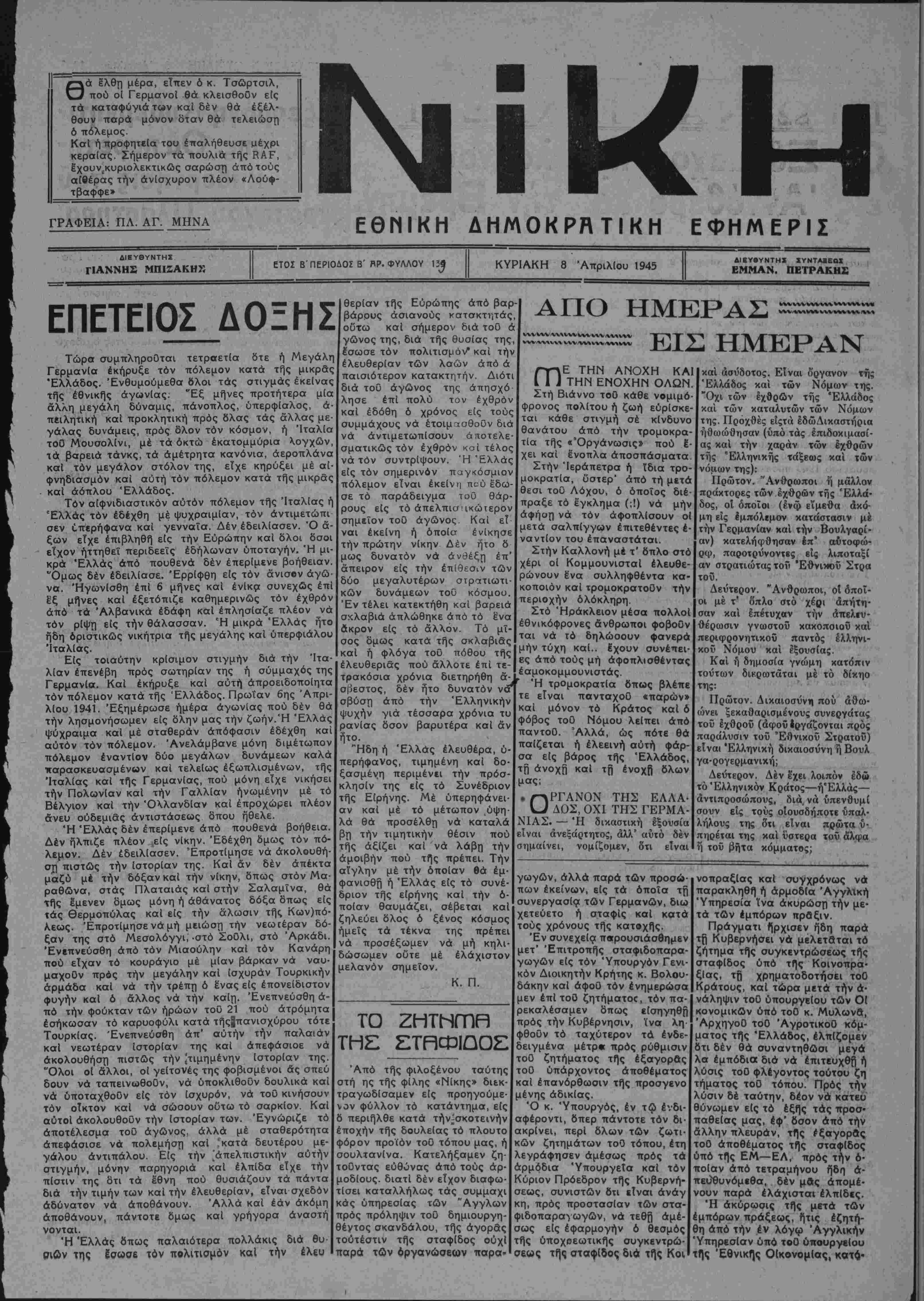 ΚΥΡ1ΑΚΗ 8 Απριλίου 1945
