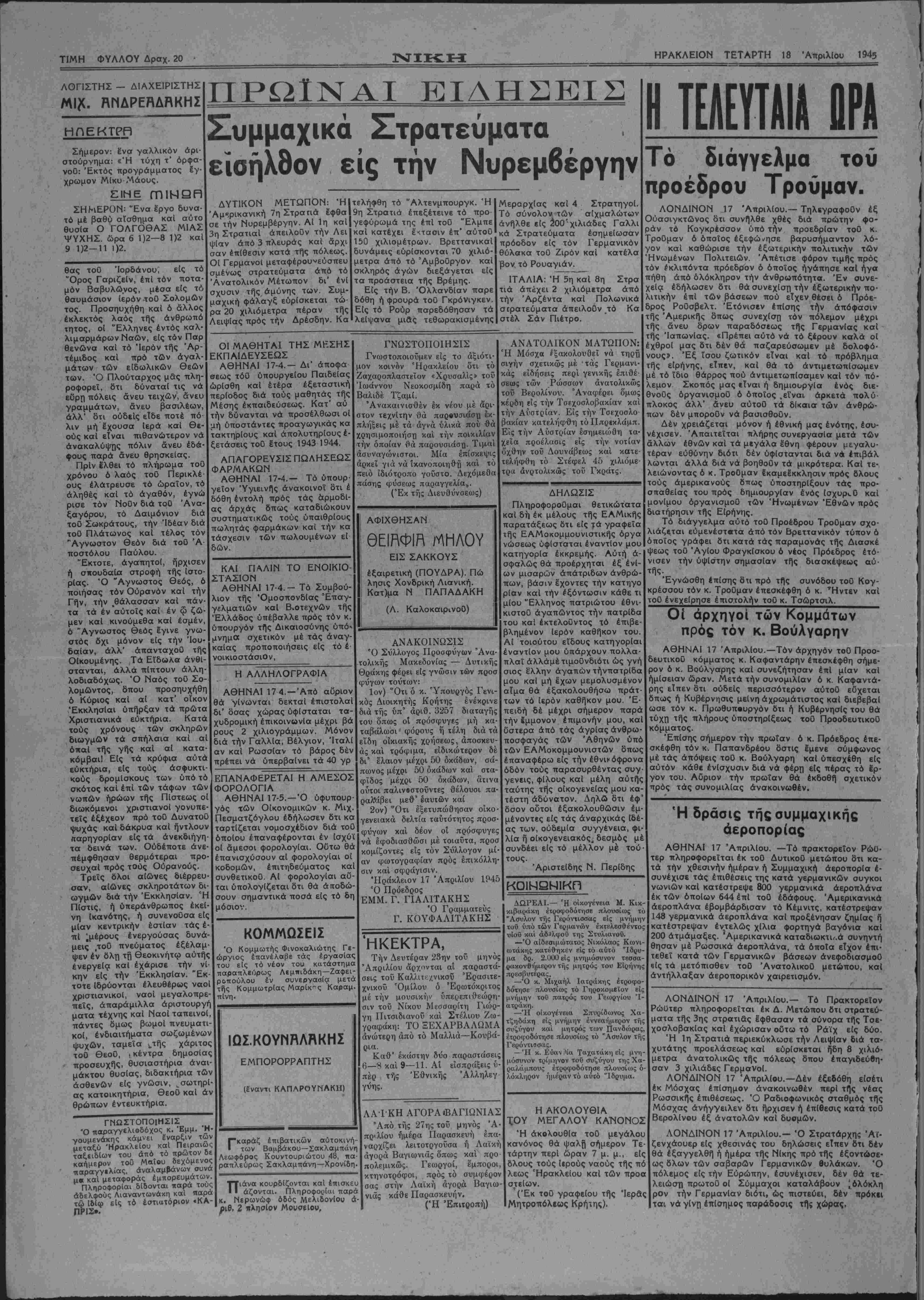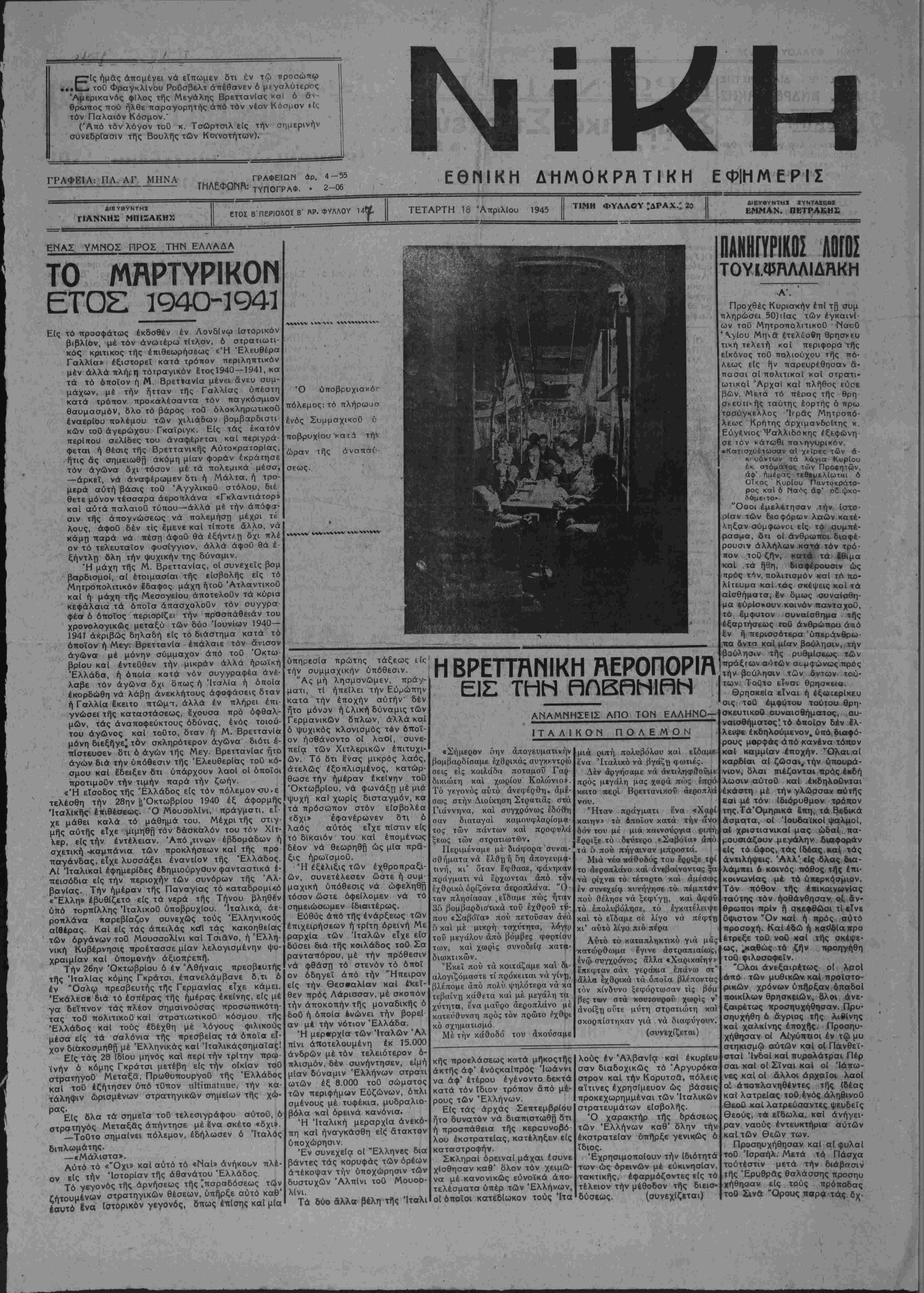 ΤΕΤΑΡΤΗ 18 Απριλίου 1945