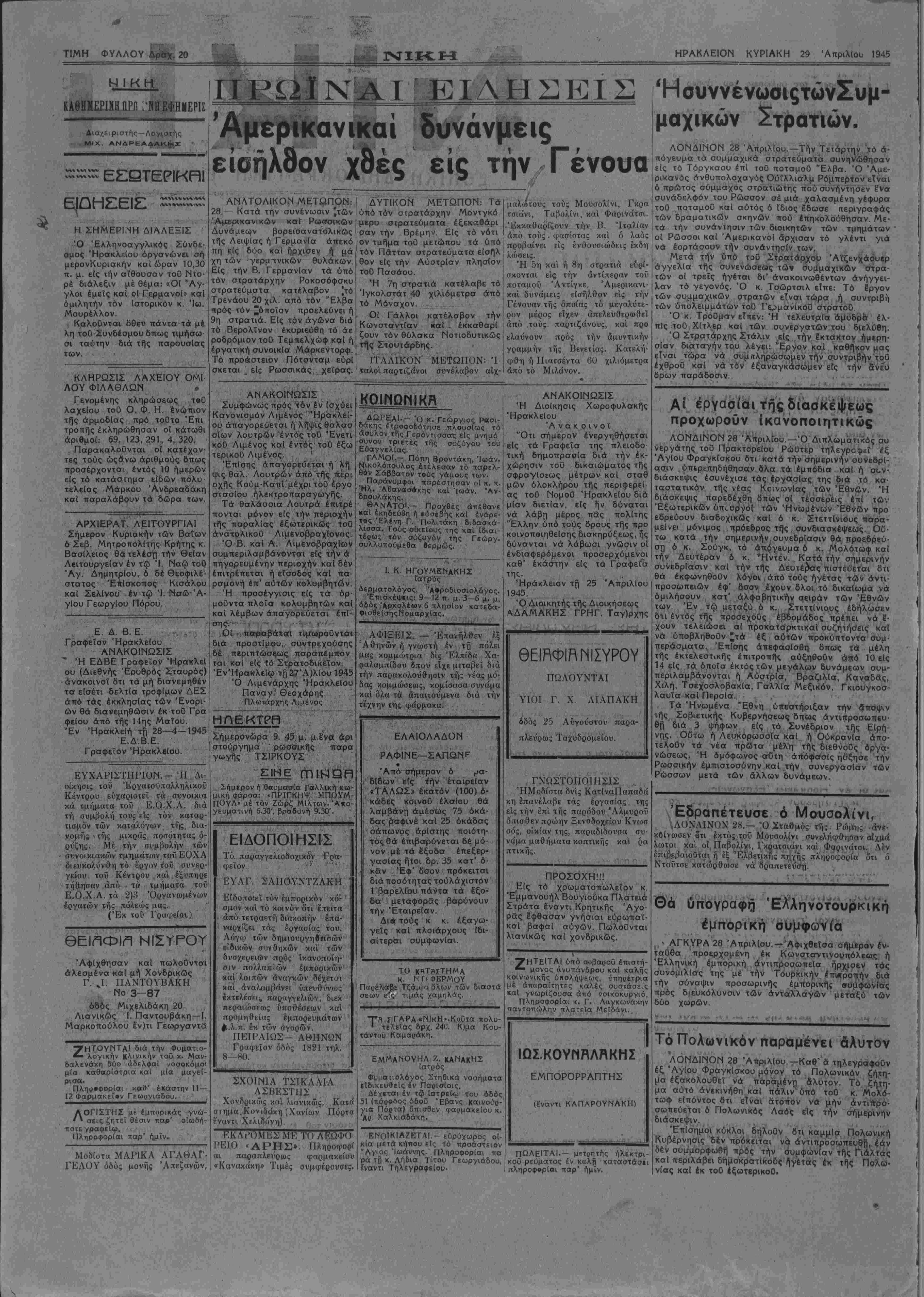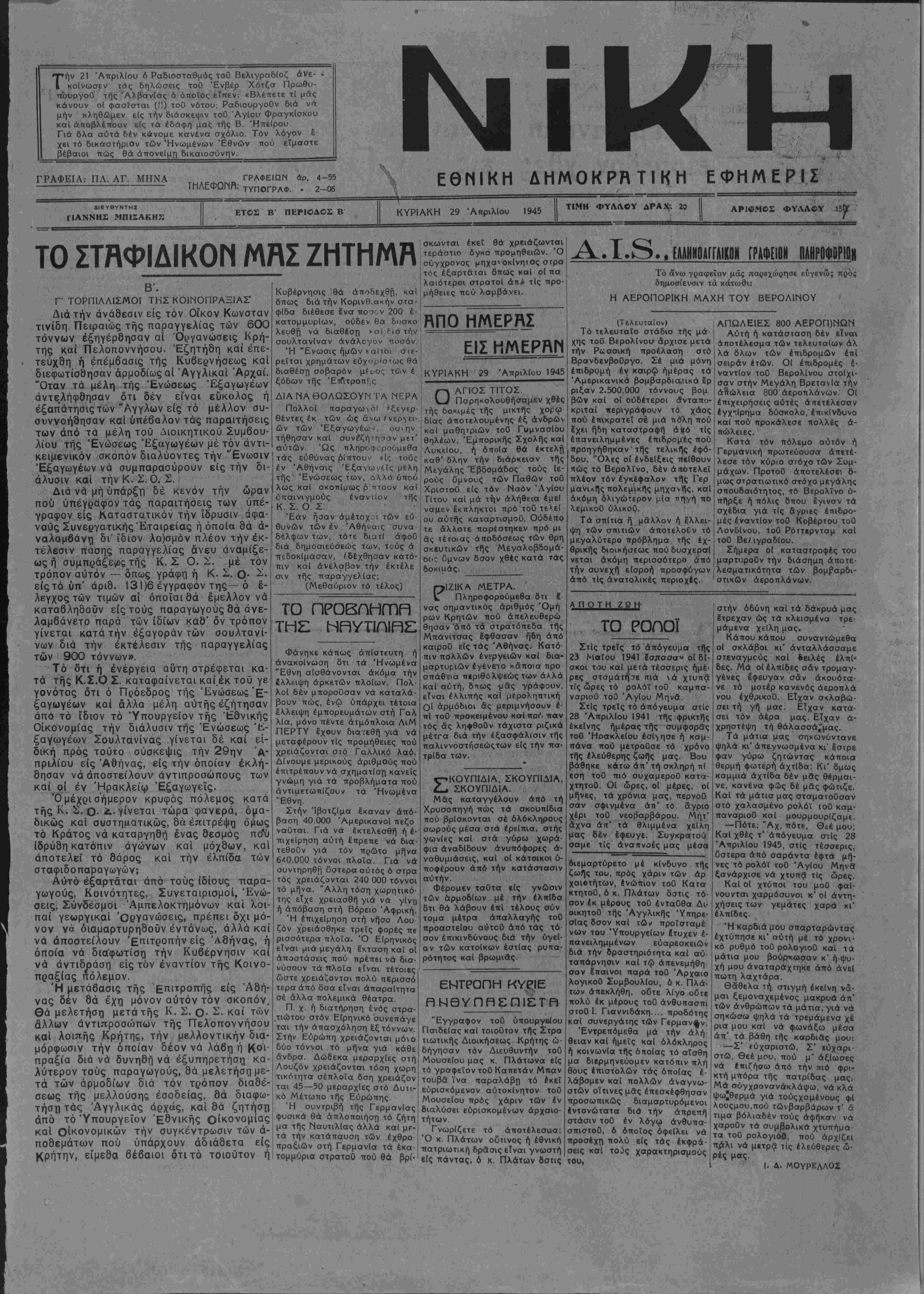 ΚΥΡΙΑΚΗ 29 Απριλίου 1945