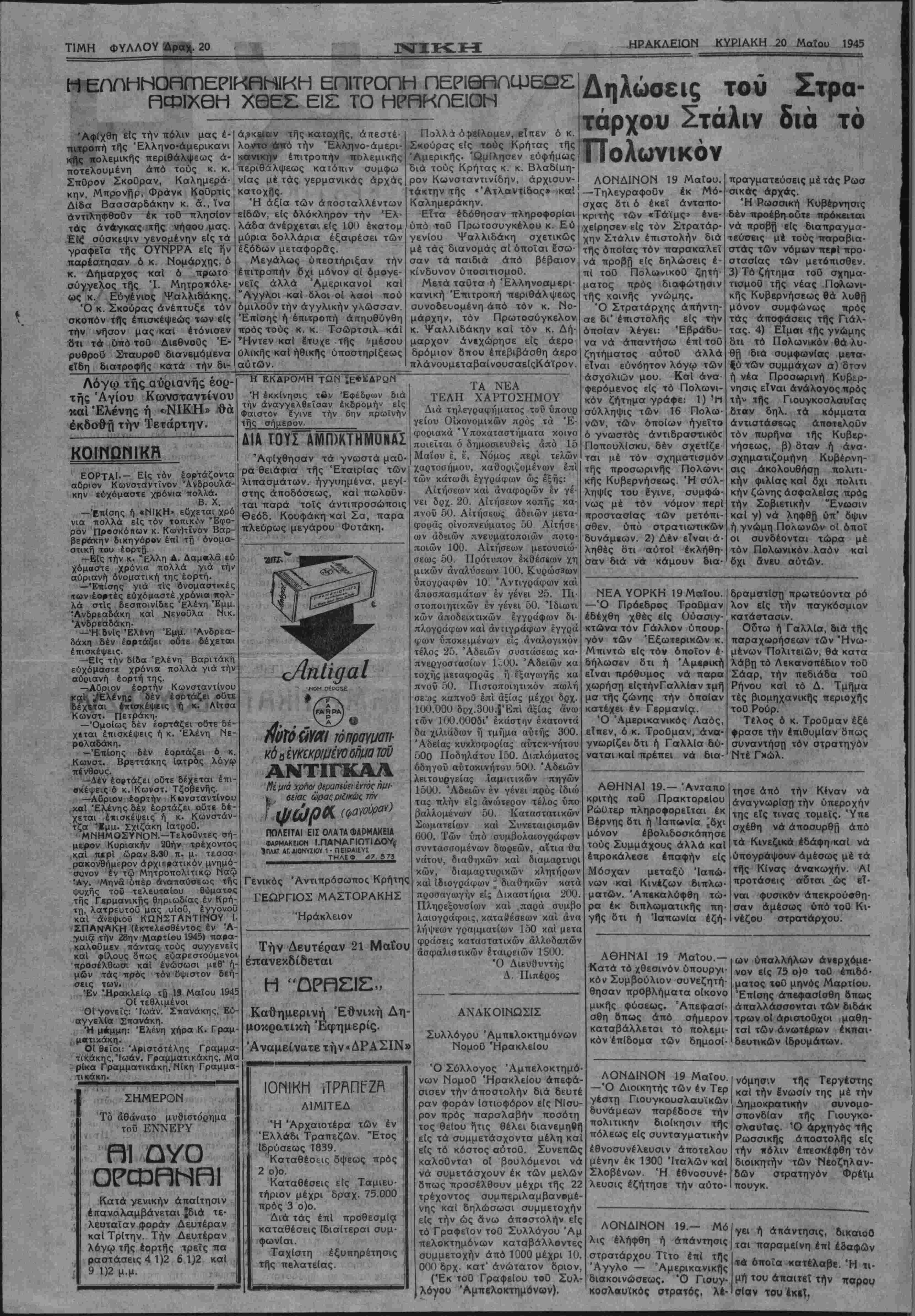 ΚΥΡΙΑΚΗ 20 Μαΐου 1945
