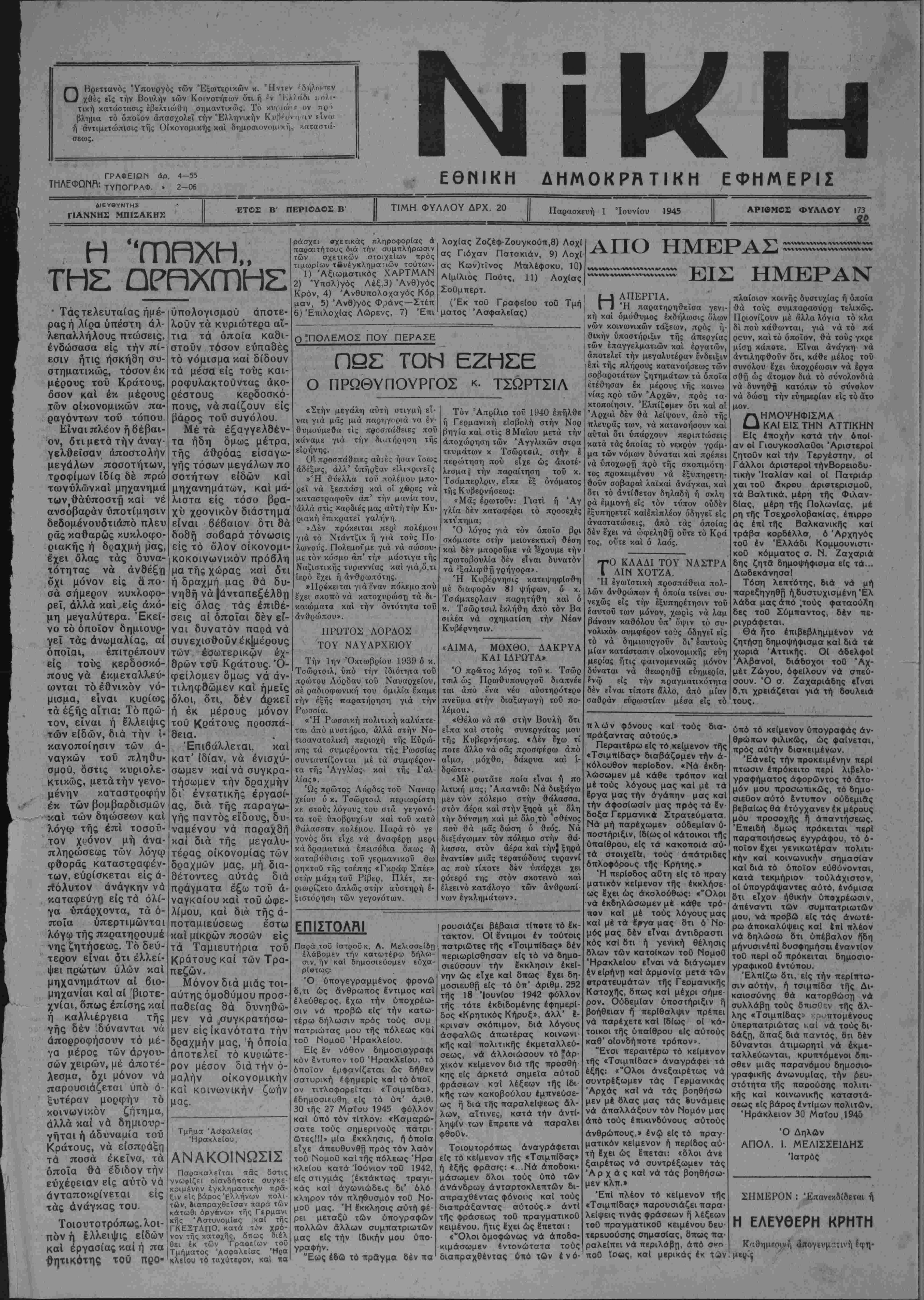 ΤΙΜΗ ΦΥΛΛΟΥ ΔΡΧ. 20